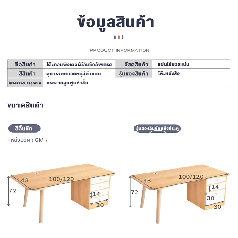 โต๊ะทำงาน พร้อมตู้120/100cm โต๊ะคอมพิวเตอร์ สไตล์เรียบง่าย ประกอบง่าย