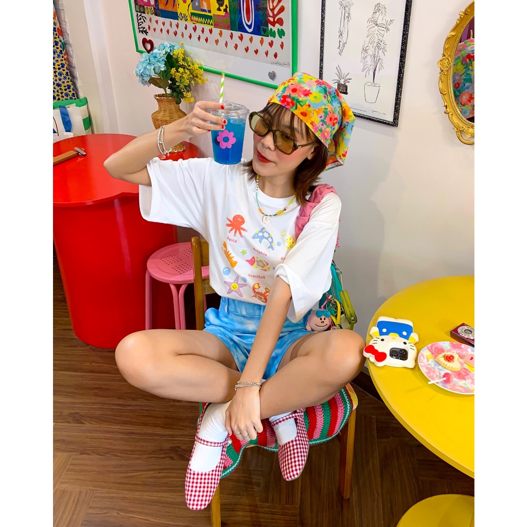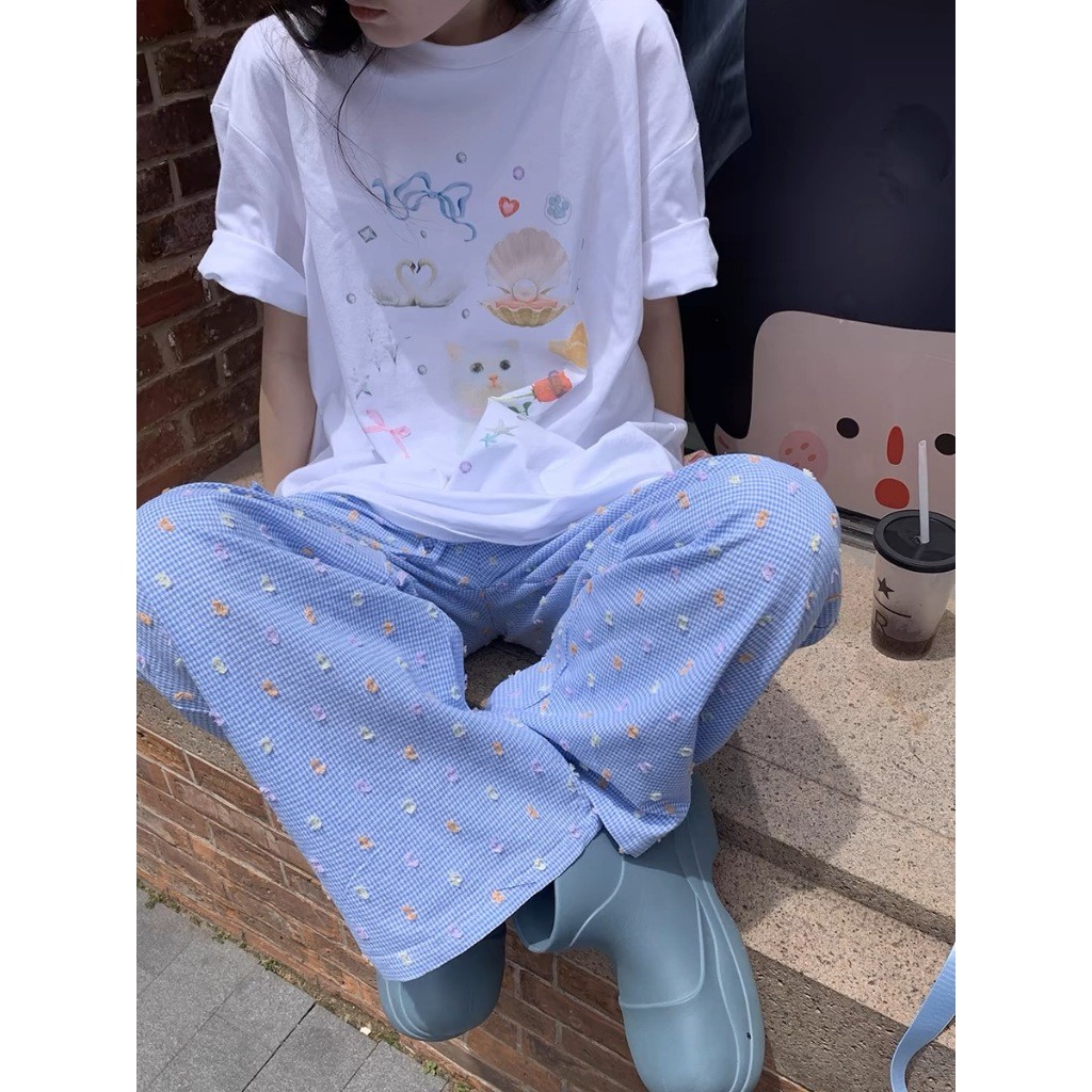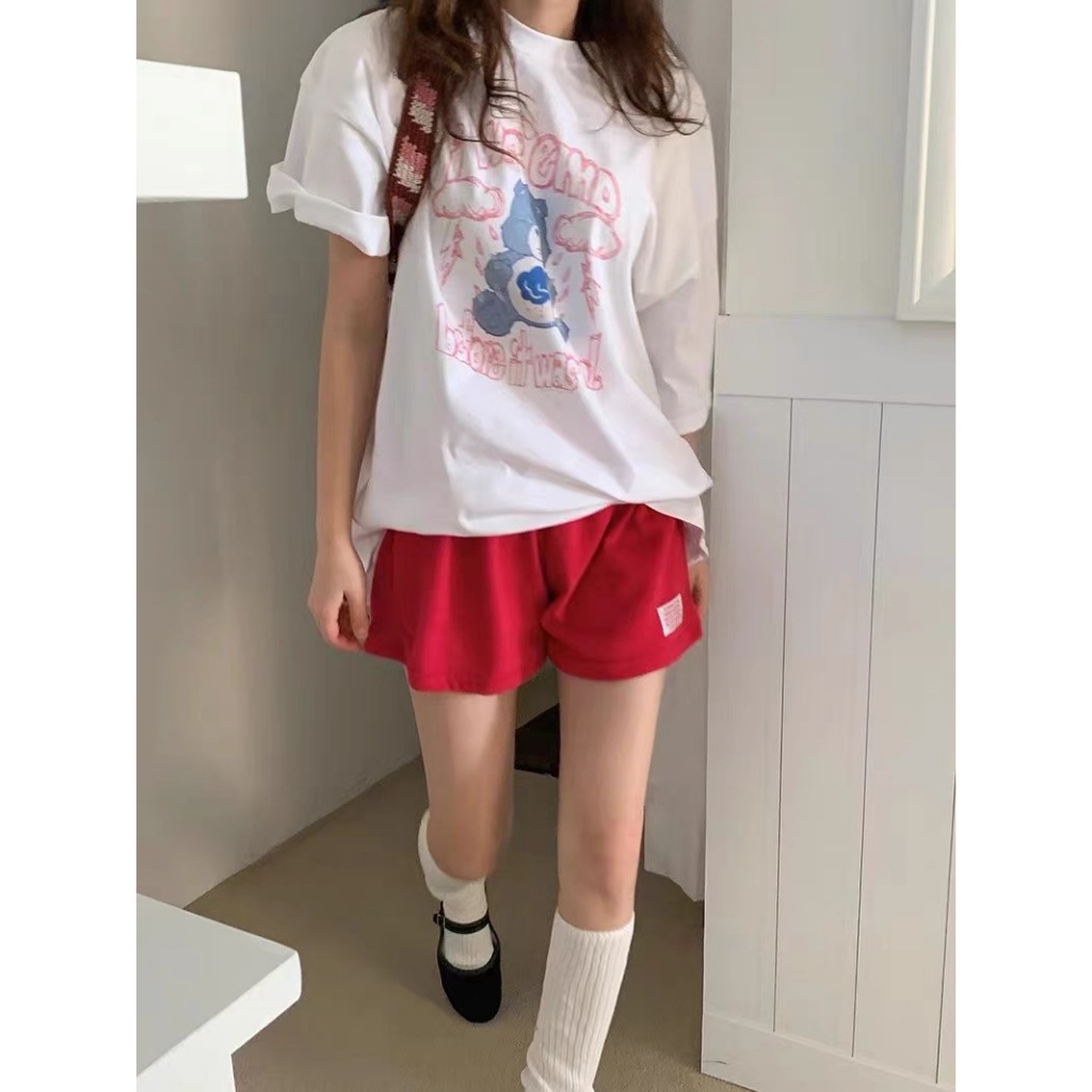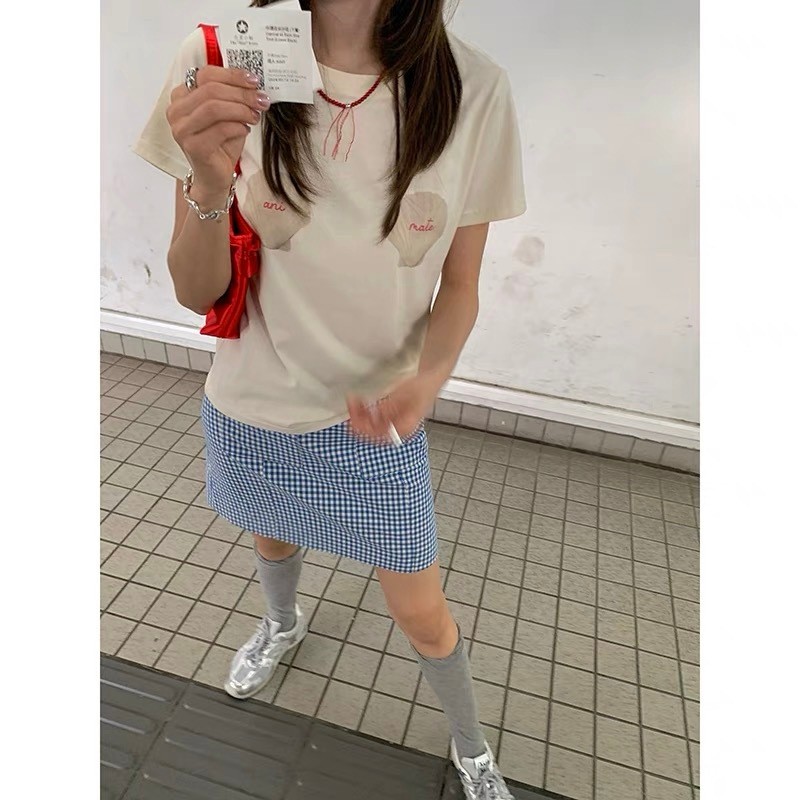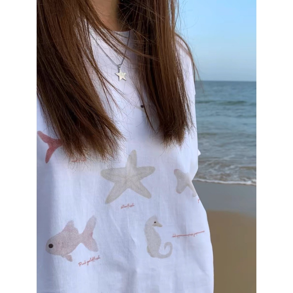 (จัดส่งตลอด 24 ชั่วโมง) เสื้อยืดสตรีทไฮสตรีทสีขาวแขนสั้นผู้หญิงเสื้อคอกลมทรงหลวมสไตล์ฮ่องกงชิคๆแบบใหม่ฤดูร้อน