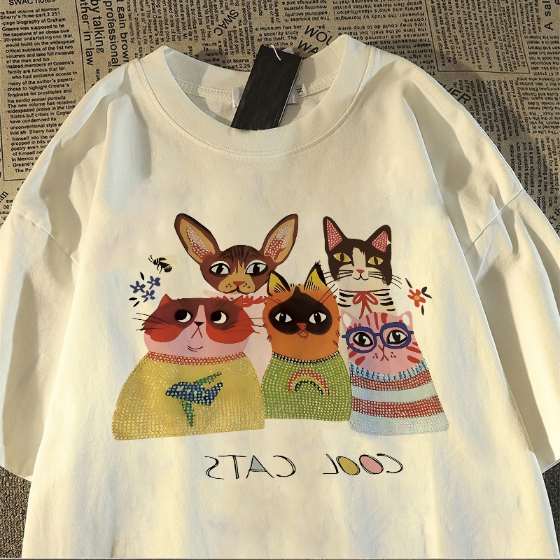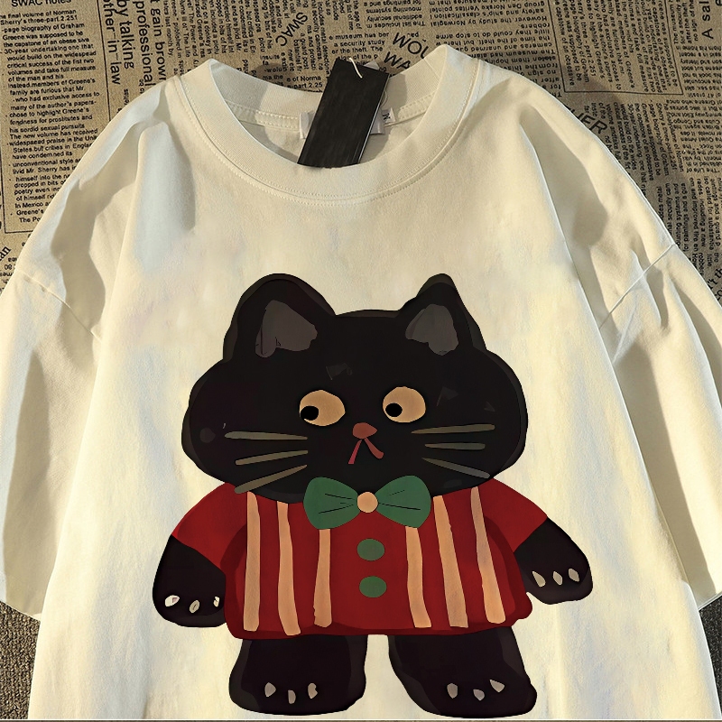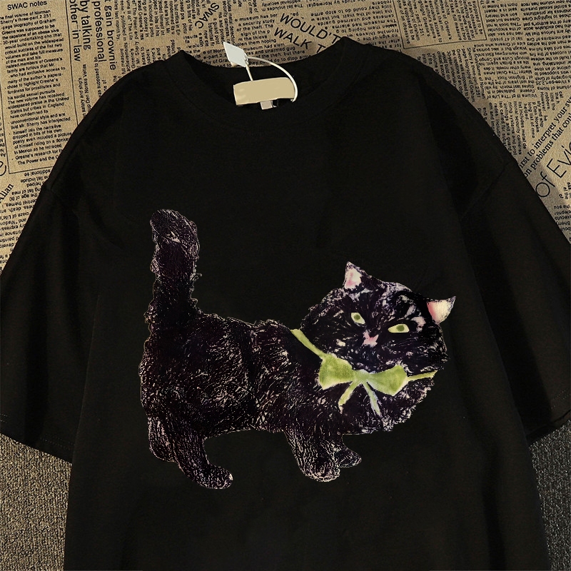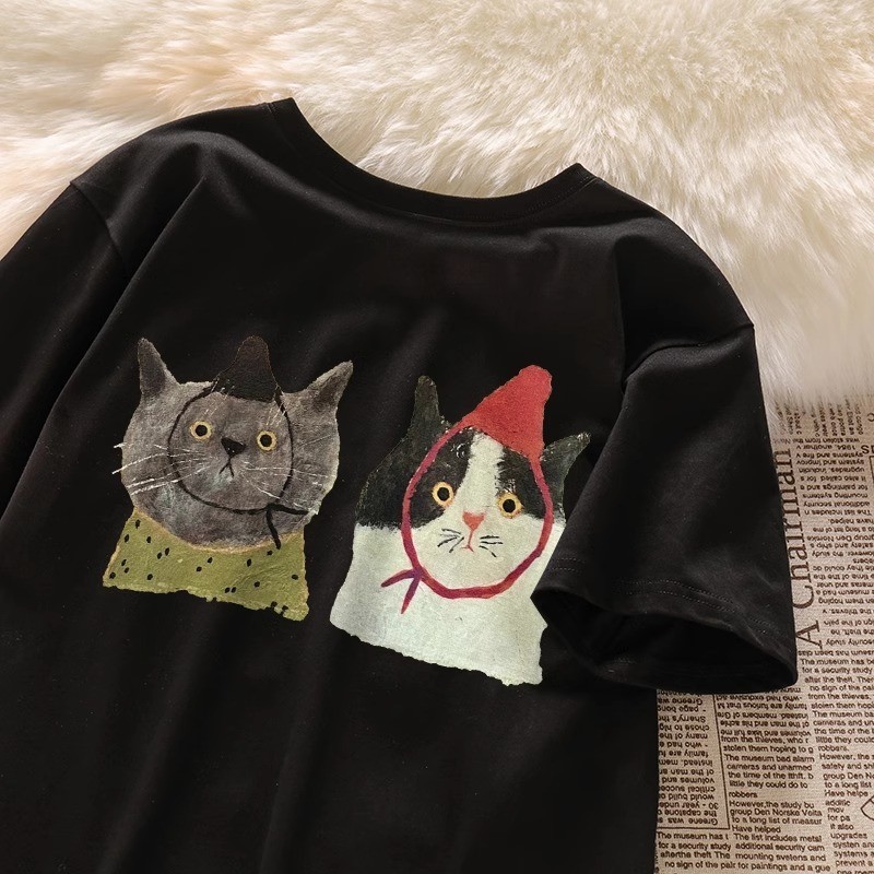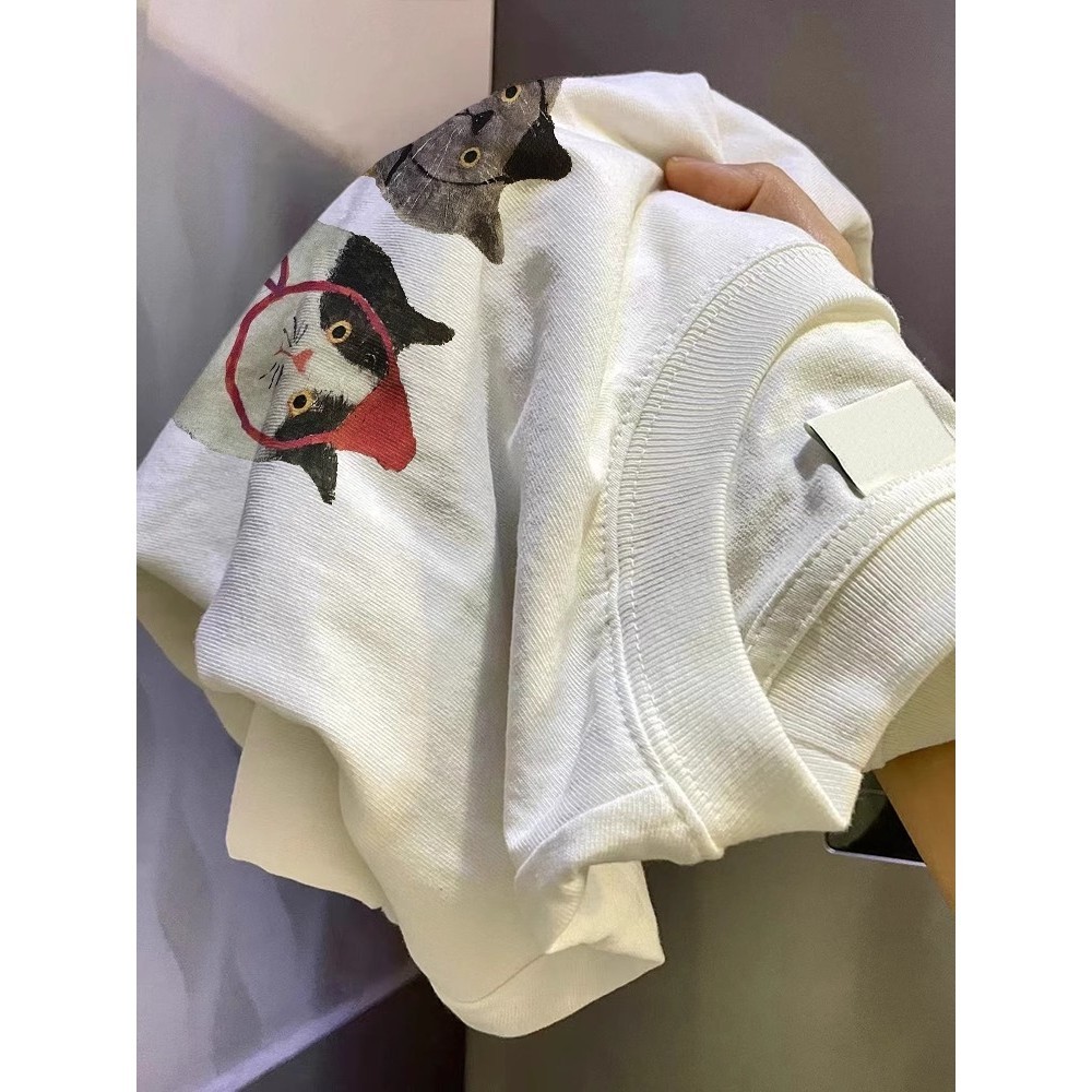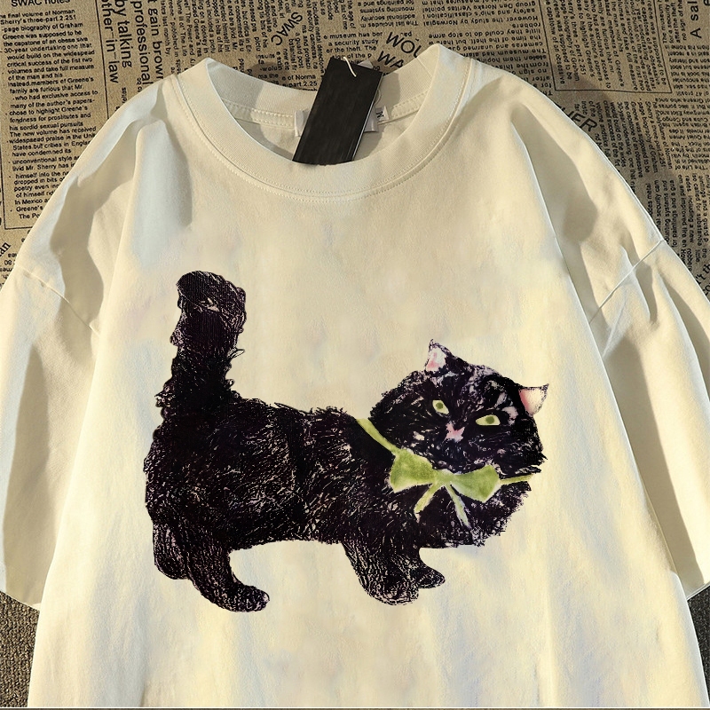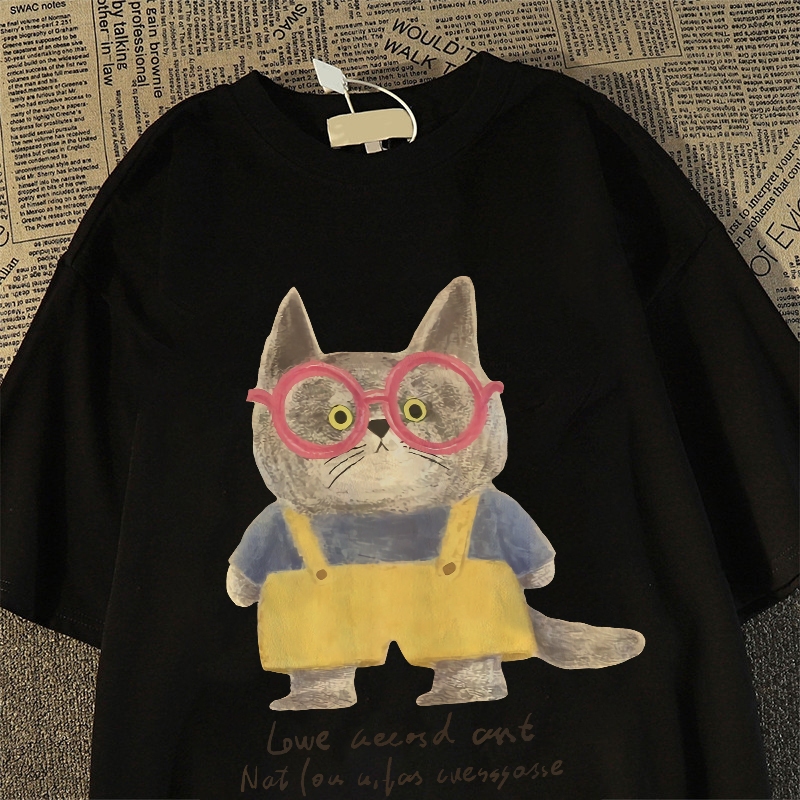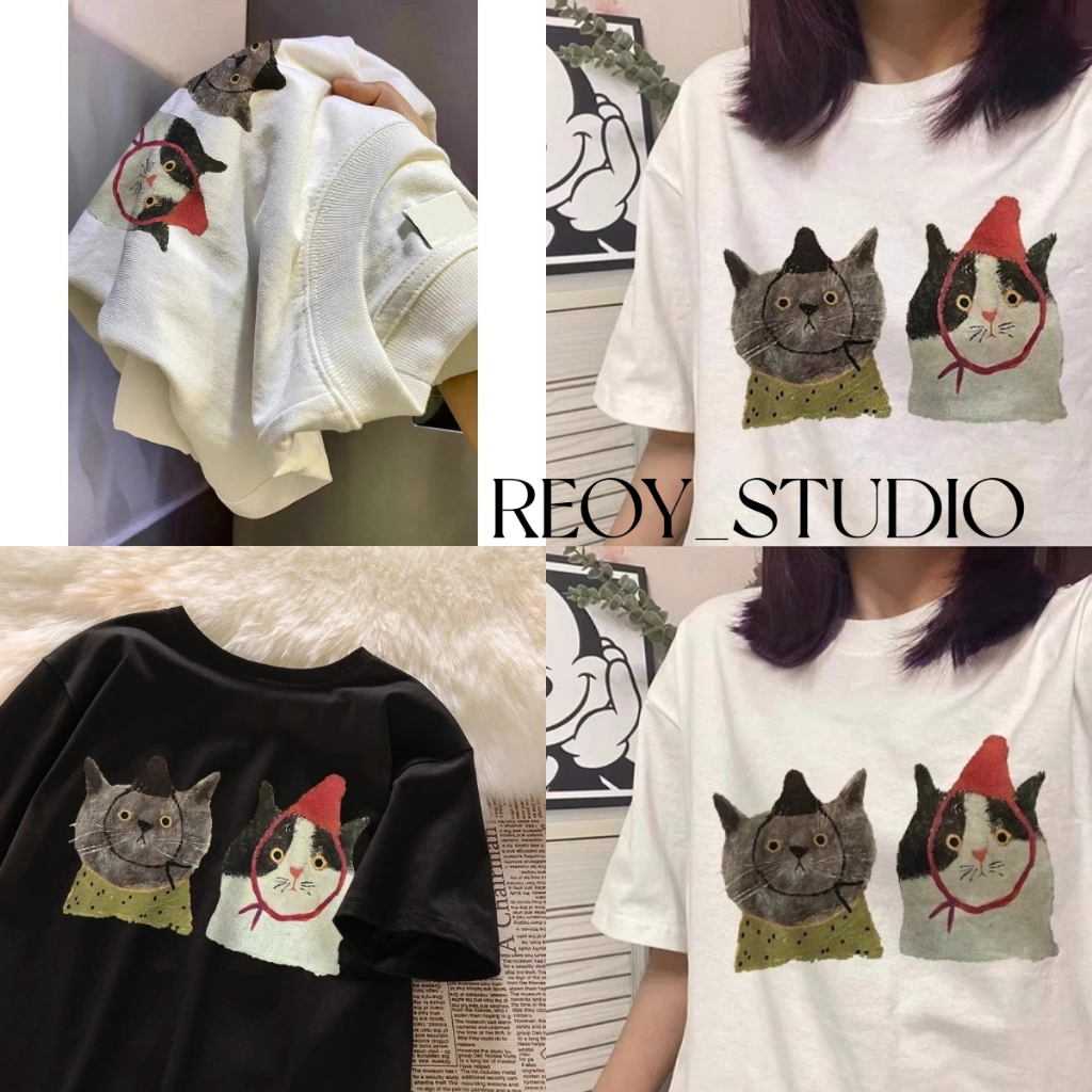 (จัดส่งตลอด 24 ชั่วโมง)Angle Official คณะกรรมการฮัน แขนสั้น เสื้อยืด หลวม มากเกินไป แมว พิมพ์ ด้านบน