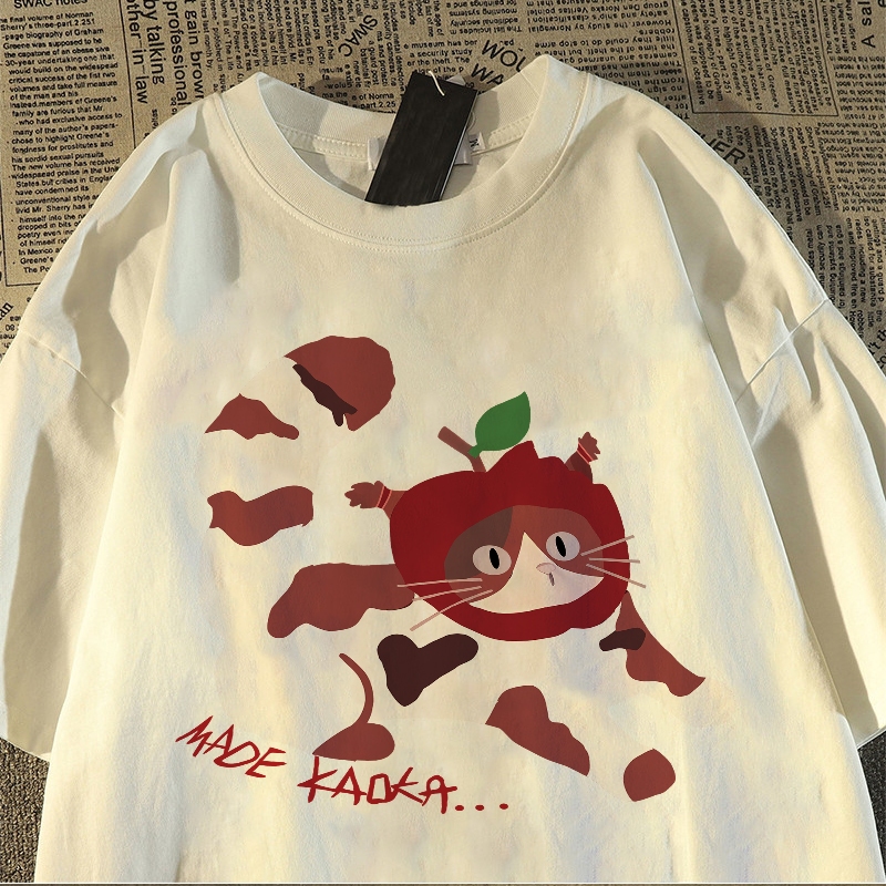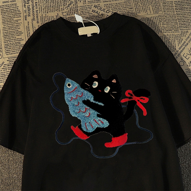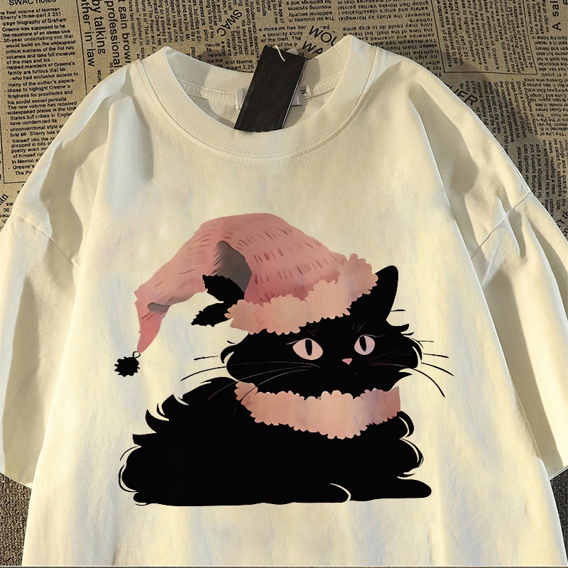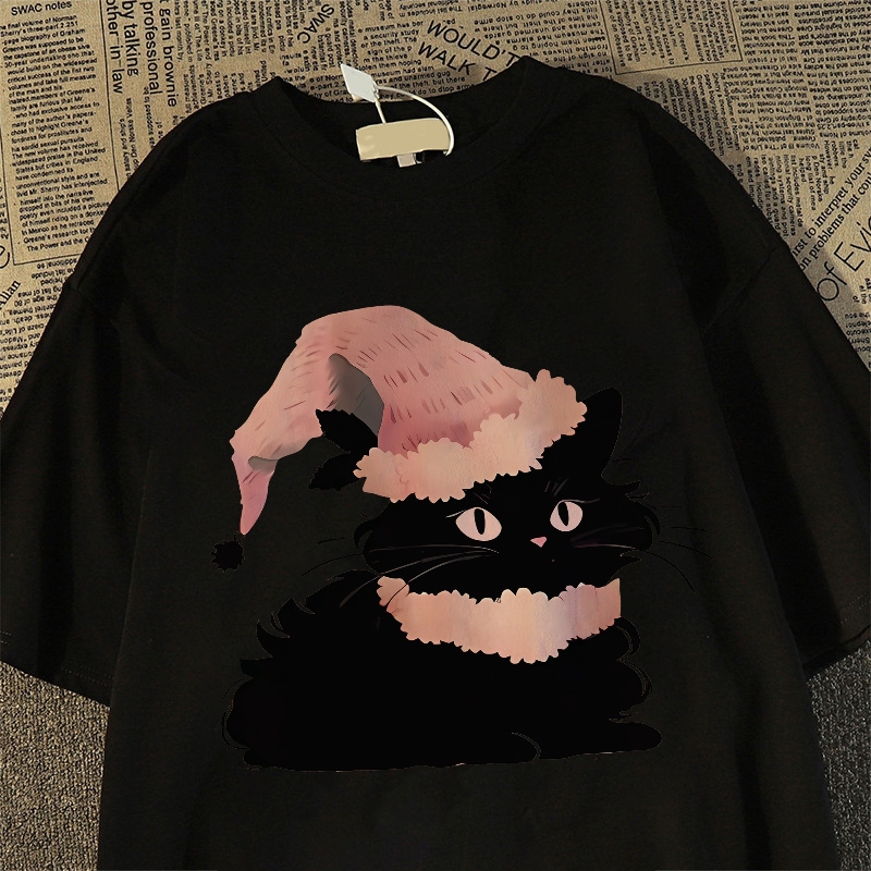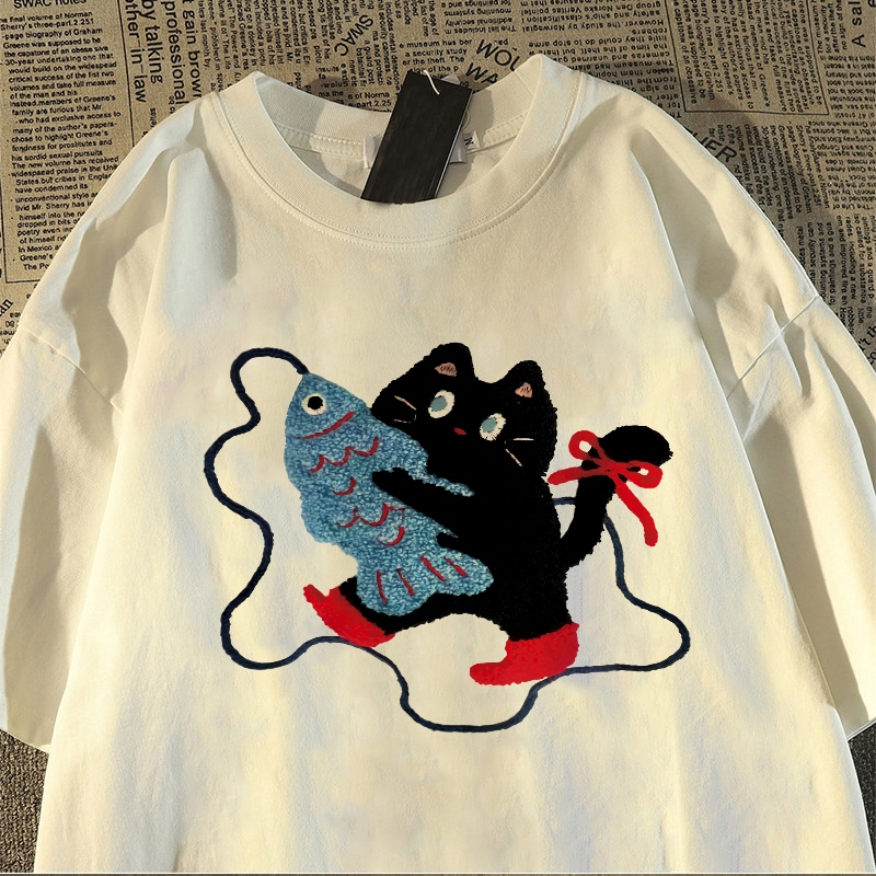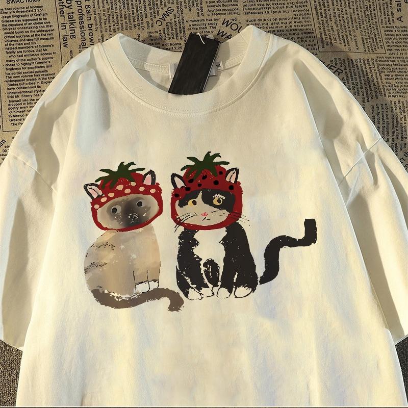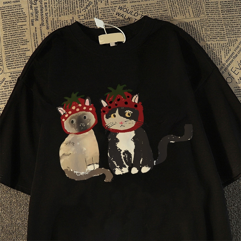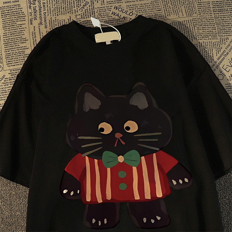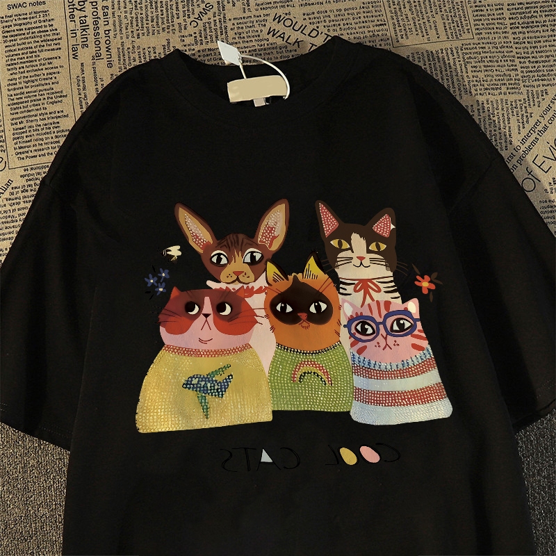 (จัดส่งตลอด 24 ชั่วโมง)Angle Official คณะกรรมการฮัน แขนสั้น เสื้อยืด หลวม มากเกินไป แมว พิมพ์ ด้านบน