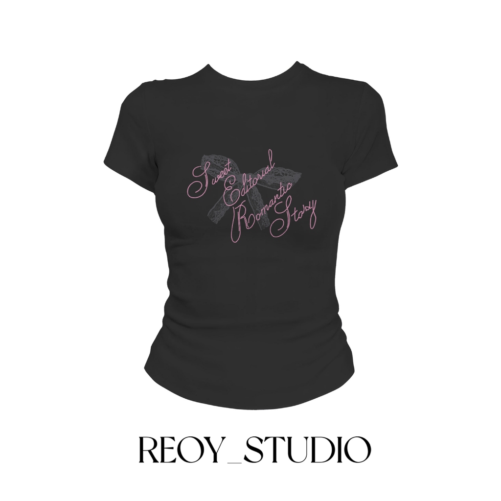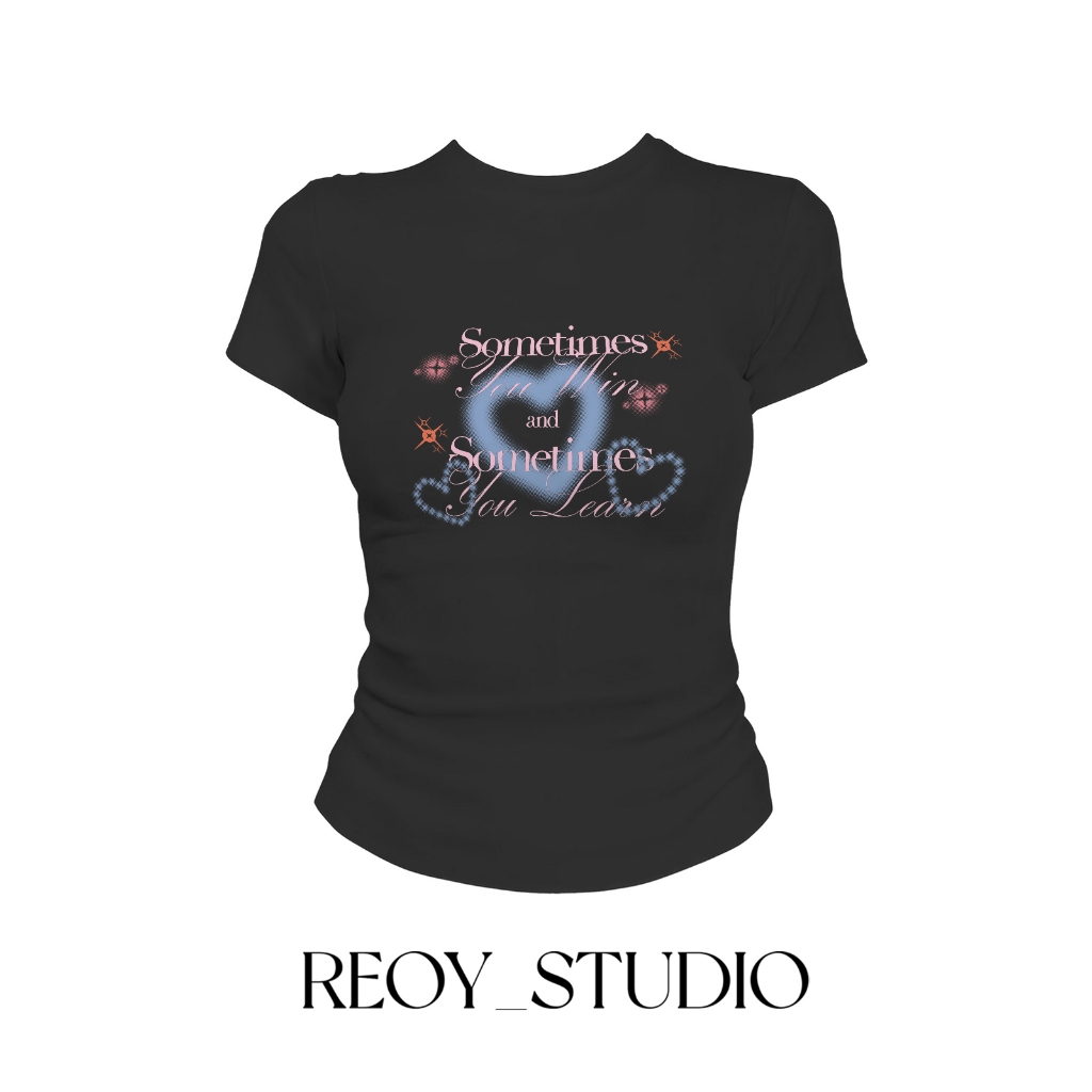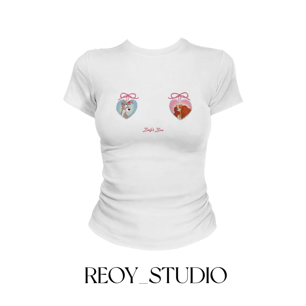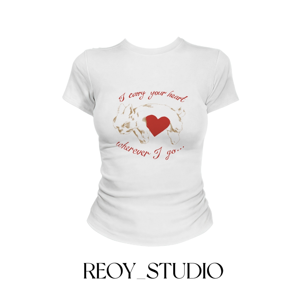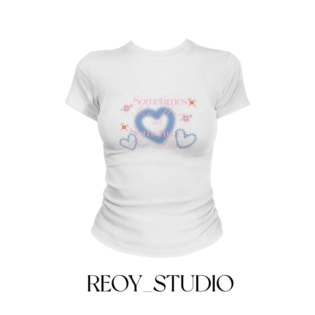 (COD ส่งจากไทย) REOY_STUDIO♥ | Baby Tee เรียบง่ายและมีสไตล์ Heart&Letter เสื้อยืดแขนสั้นลายกราฟฟิก