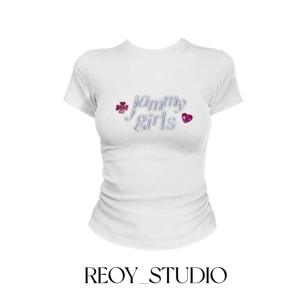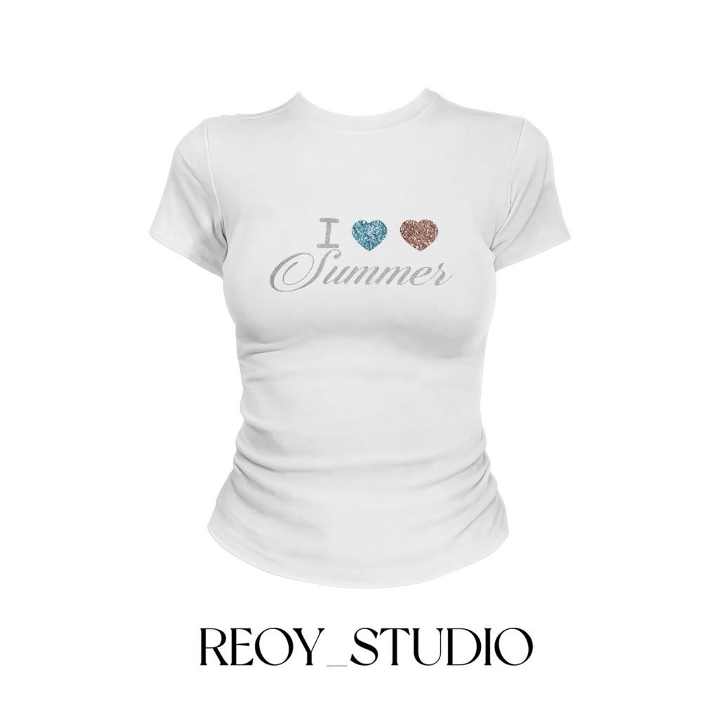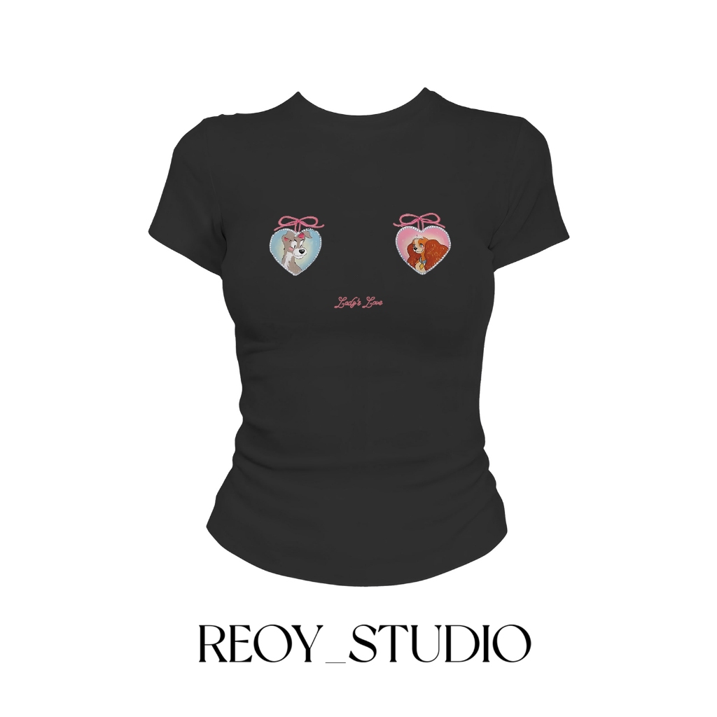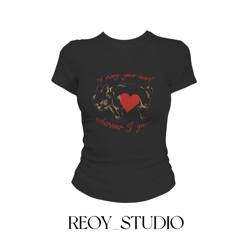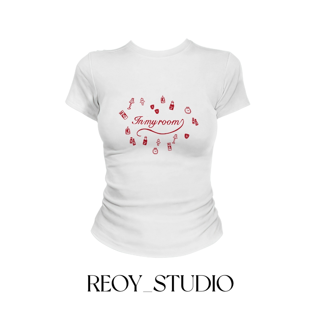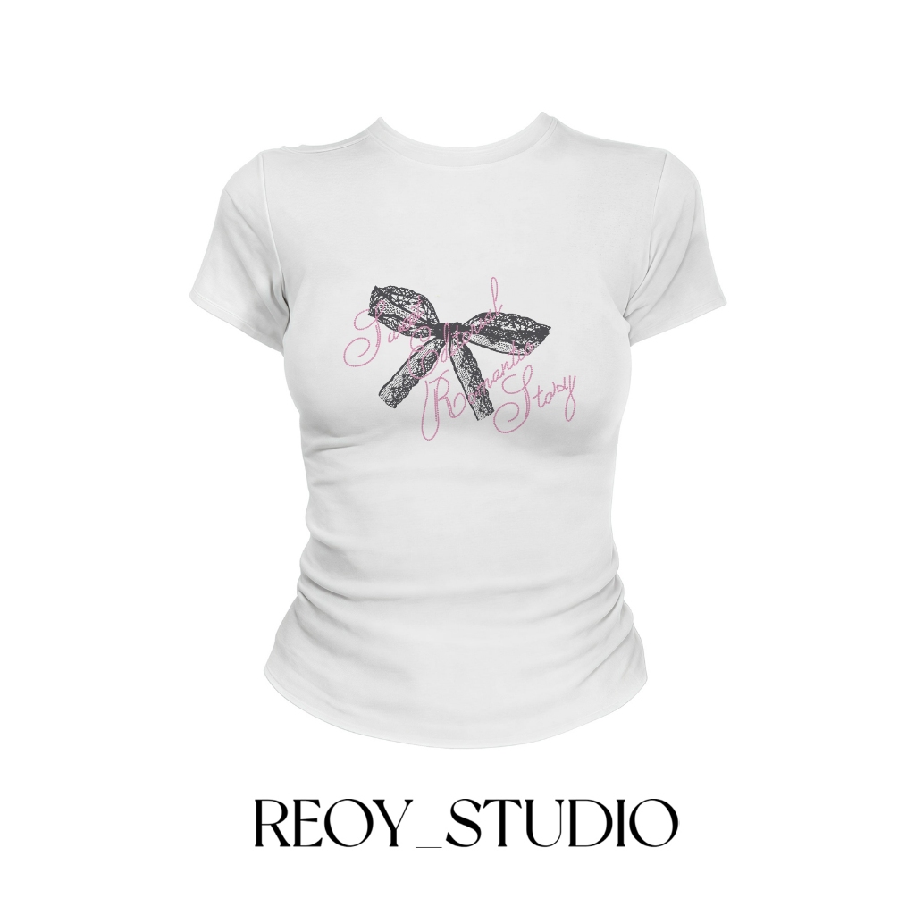 (COD ส่งจากไทย) REOY_STUDIO♥ | Baby Tee เรียบง่ายและมีสไตล์ Heart&Letter เสื้อยืดแขนสั้นลายกราฟฟิก
