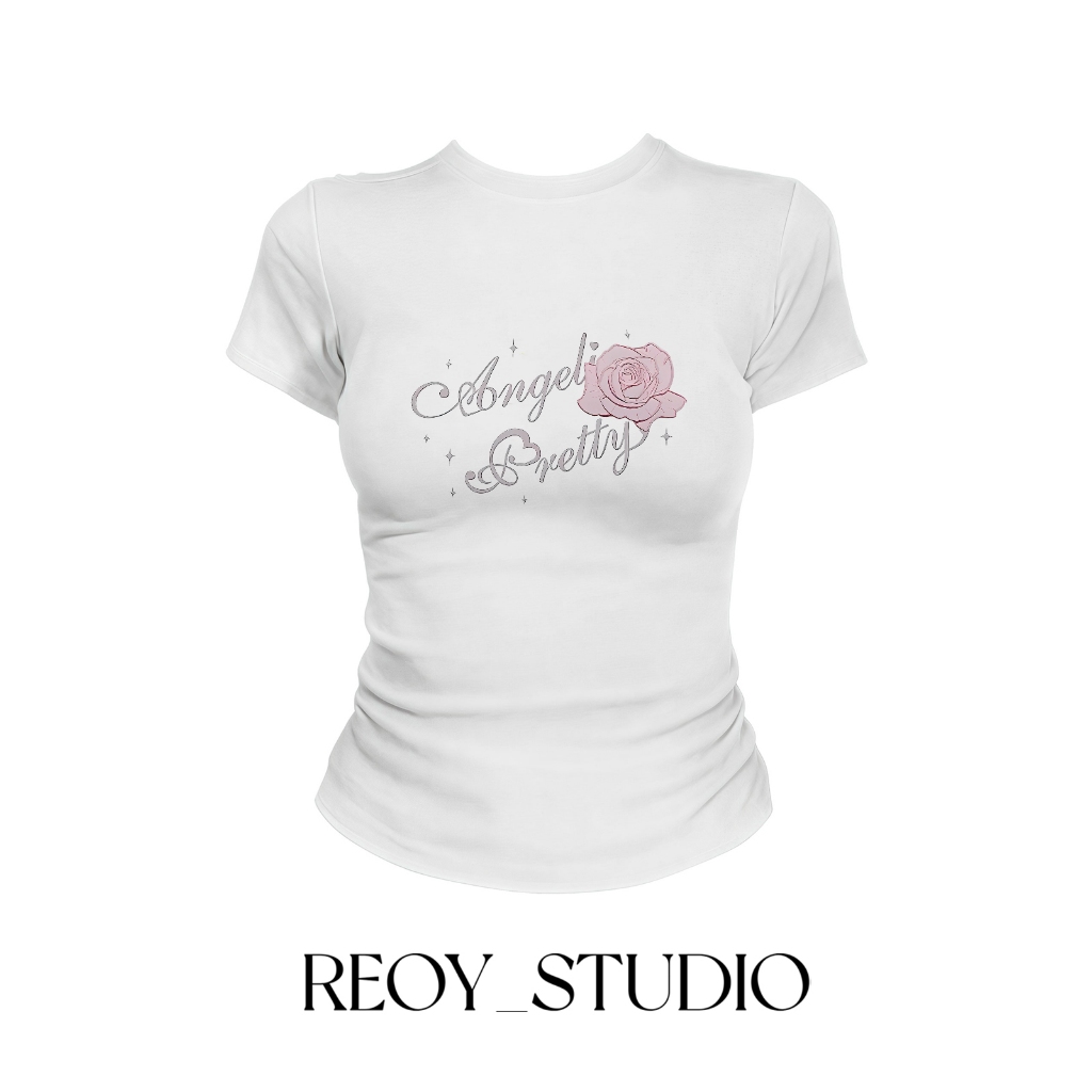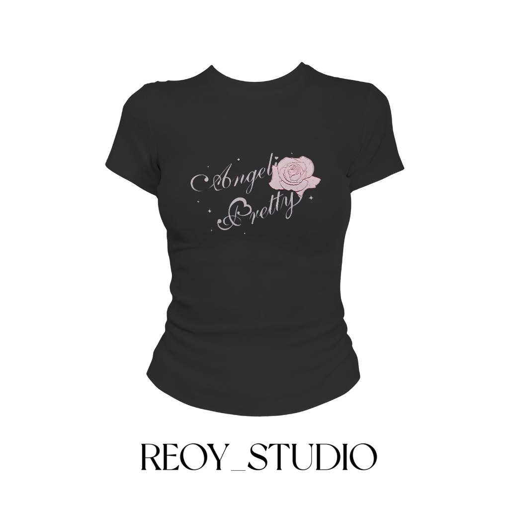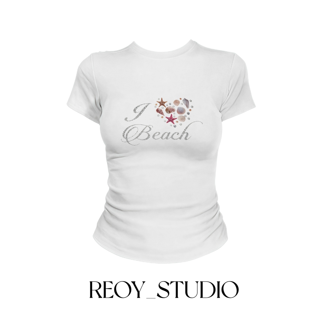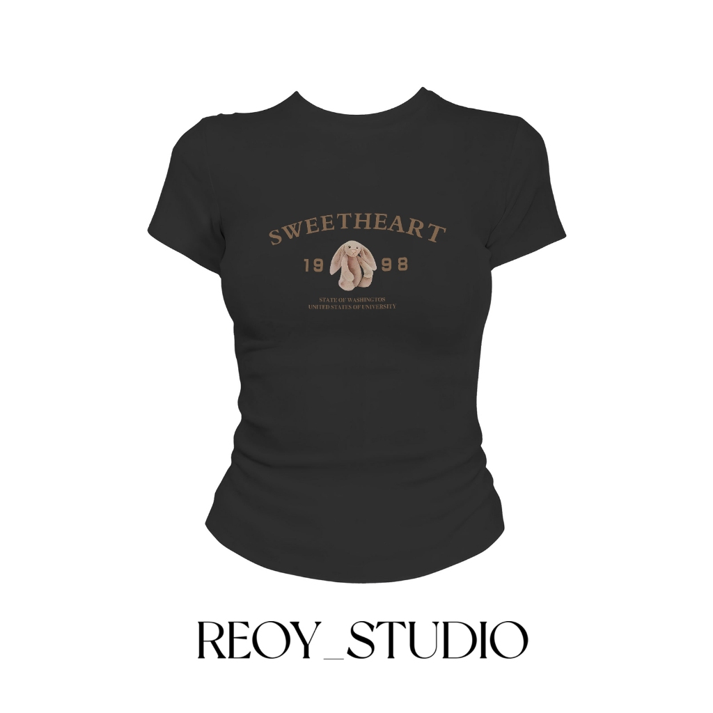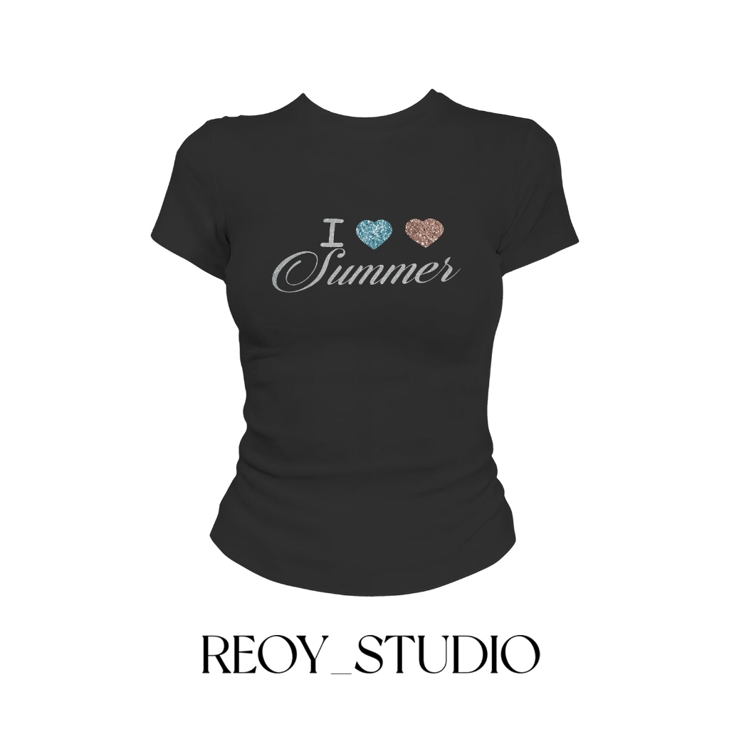 (COD ส่งจากไทย) REOY_STUDIO♥ | Baby Tee เรียบง่ายและมีสไตล์ Heart&Letter เสื้อยืดแขนสั้นลายกราฟฟิก