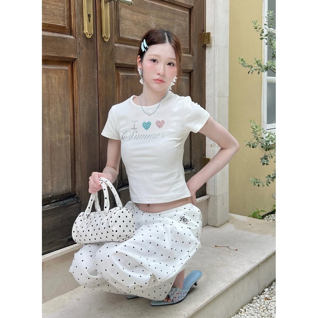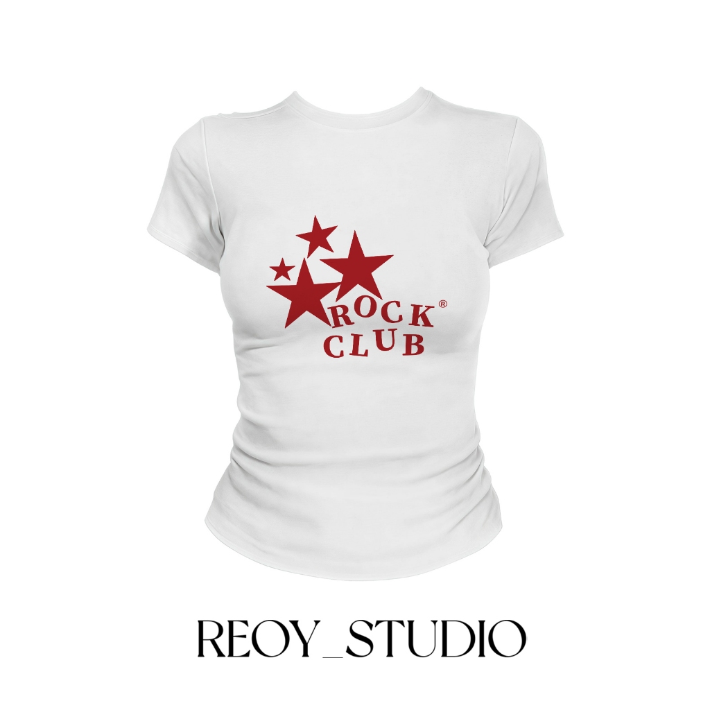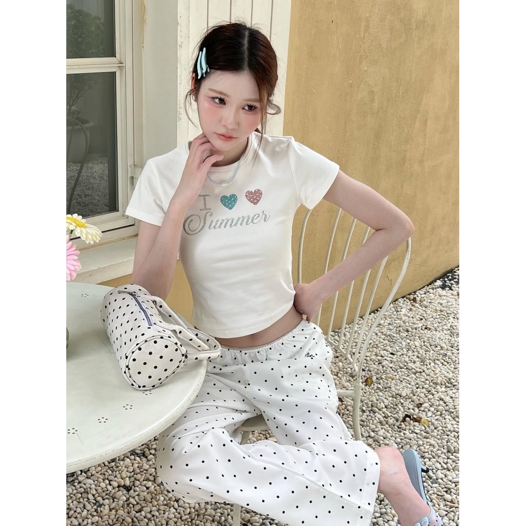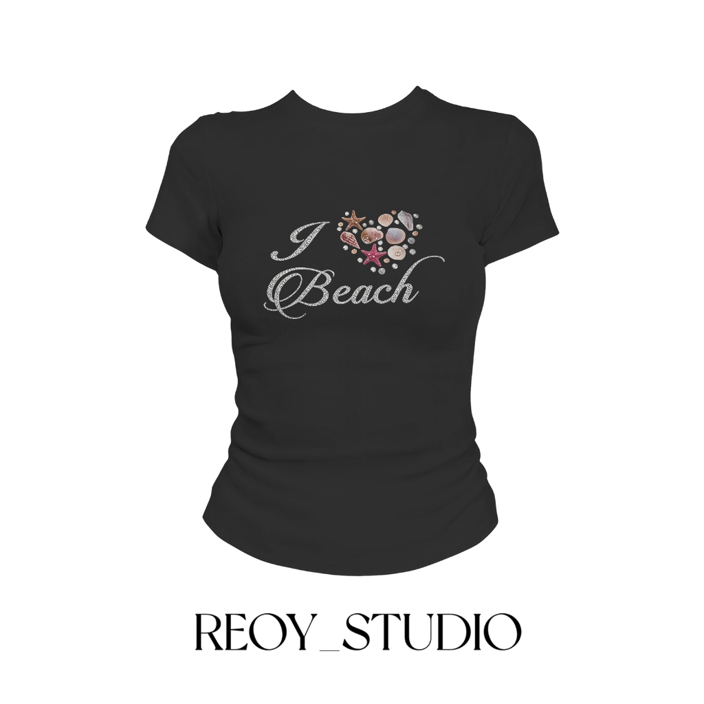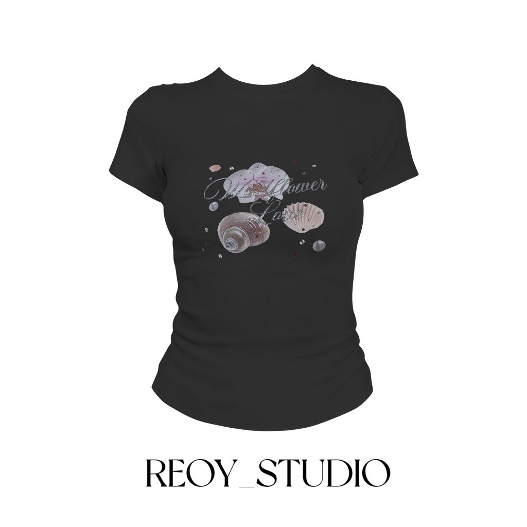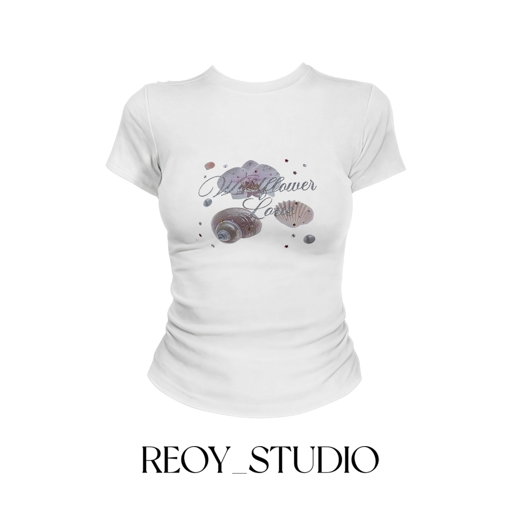 (COD ส่งจากไทย) REOY_STUDIO♥ | Baby Tee เรียบง่ายและมีสไตล์ Heart&Letter เสื้อยืดแขนสั้นลายกราฟฟิก