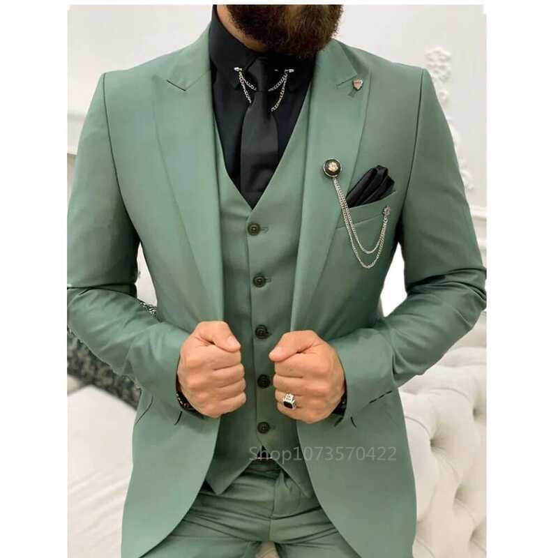 3 ชุดทักซิโด้เจ้าบ่าว ชิ้นสำหรับงานแต่งงาน ชุดสูทผู้ชายสำหรับงานพรอม ชุดเสื้อผ้าแฟชั่น แจ็คเก็ตพร้อม