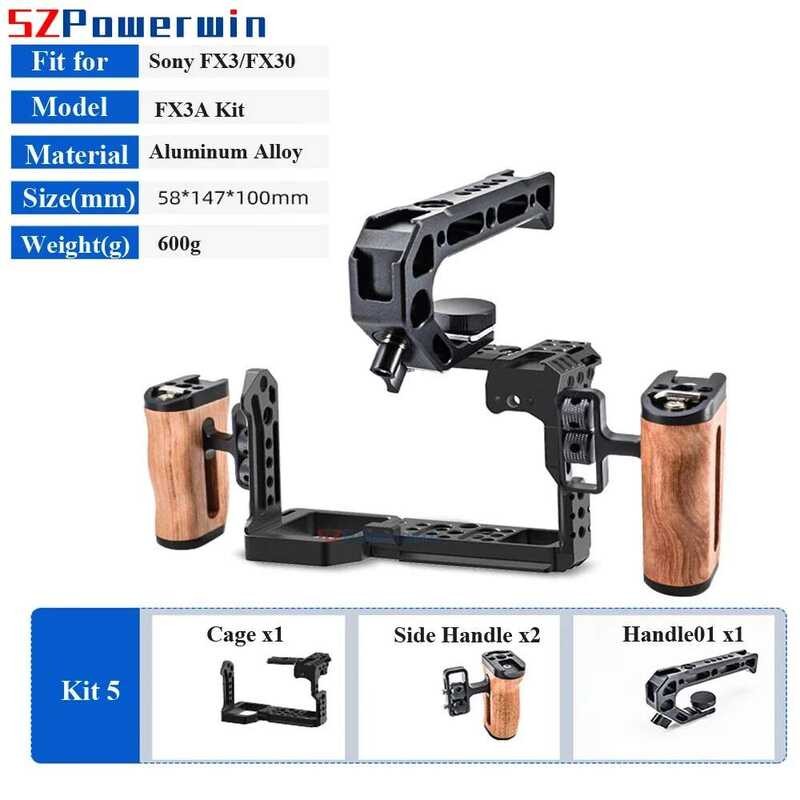 Powerwin โครงกล้อง สำหรับ Sony FX3 FX30 พร้อมชุดมือจับไม้ โครงป้องกัน โครง gimbal อลูมิเนียมอัลลอยด์