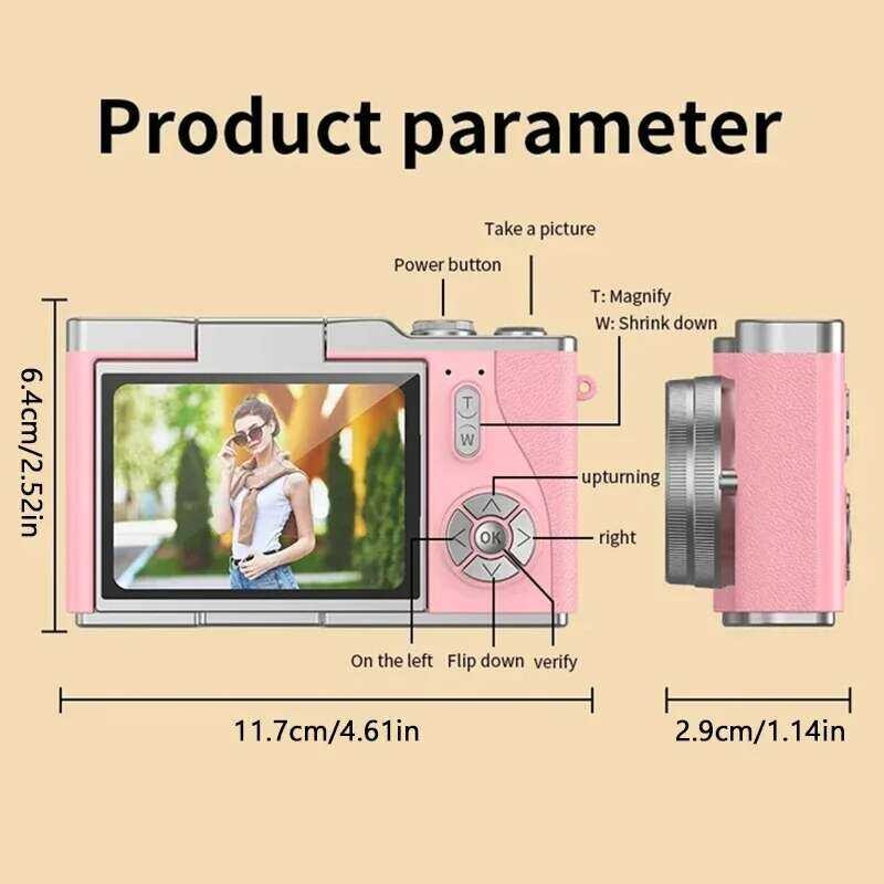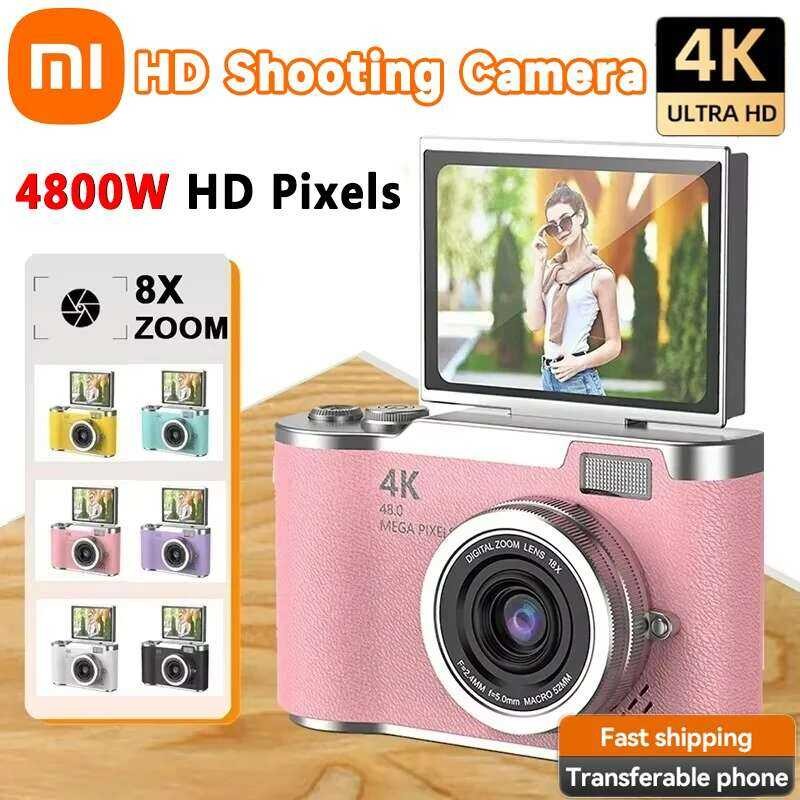 Xiaomi กล้อง 4k CCD ซูม 8 เท่า สำหรับนักเรียน 48MP กล้องดิจิตอลพกพา 180° กล้องเซลฟี่แบบพลิกหน้าจอ 18