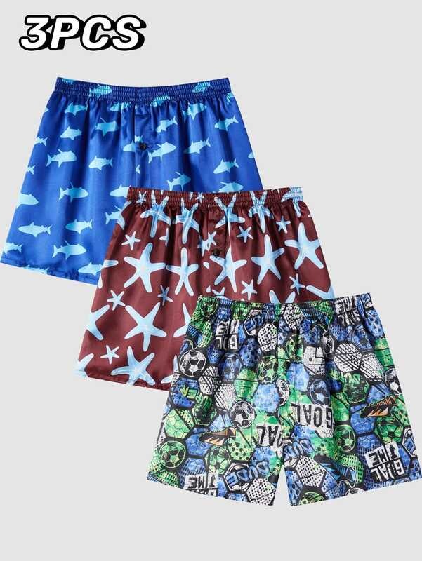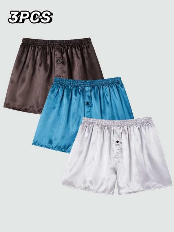 JupiterSecret ชุดชั้นในชาย 3 ชิ้น บ็อกเซอร์ซาตินสบายๆ ให้ความรู้สึกเหมือนผ้าไหม กางเกงนอนเอวยางยืดแล