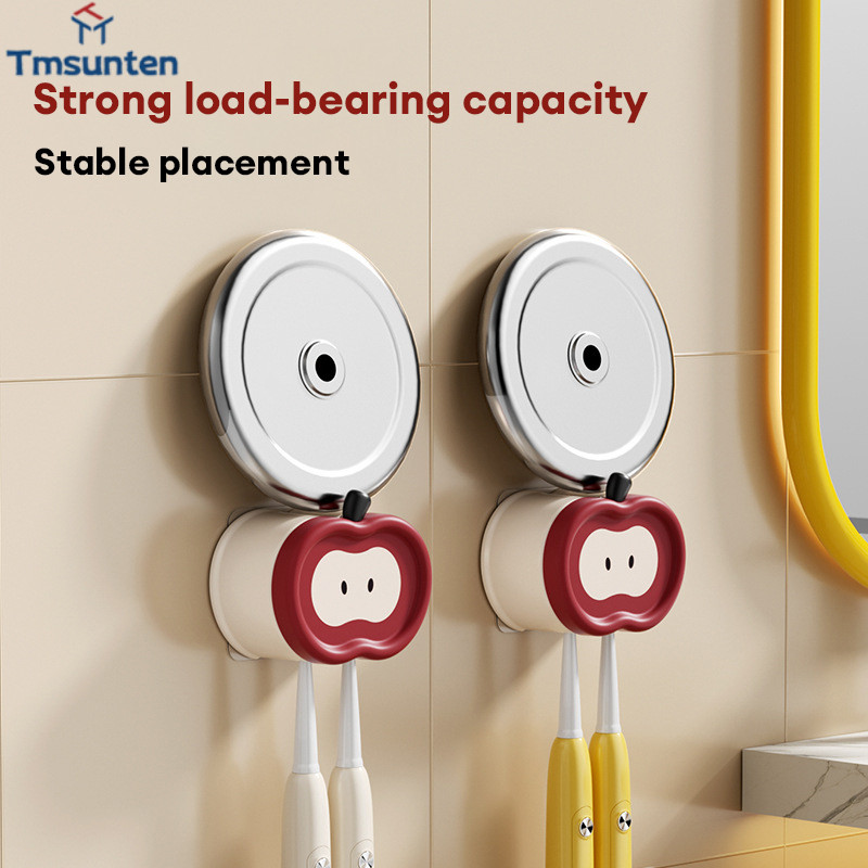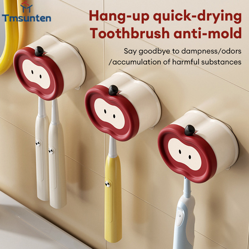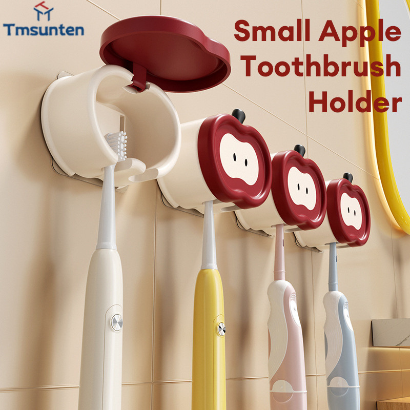 Tm ที่วางแปรงสีฟันรูปแอปเปิ้ลคู่แปรงสีฟันไฟฟ้าชั้นวางซัพพลายห้องน้ําสําหรับครอบครัว