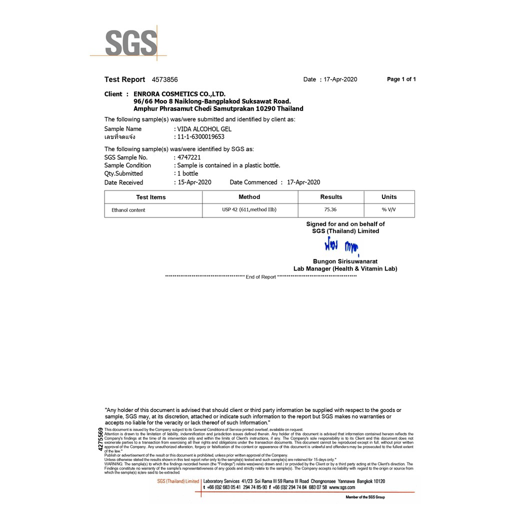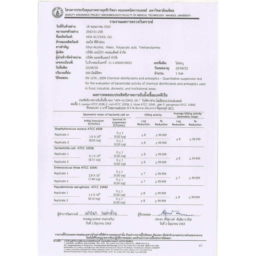 Vida Alcohol Gel 500 Ml.(วีด้า เจล) 1 ขวด