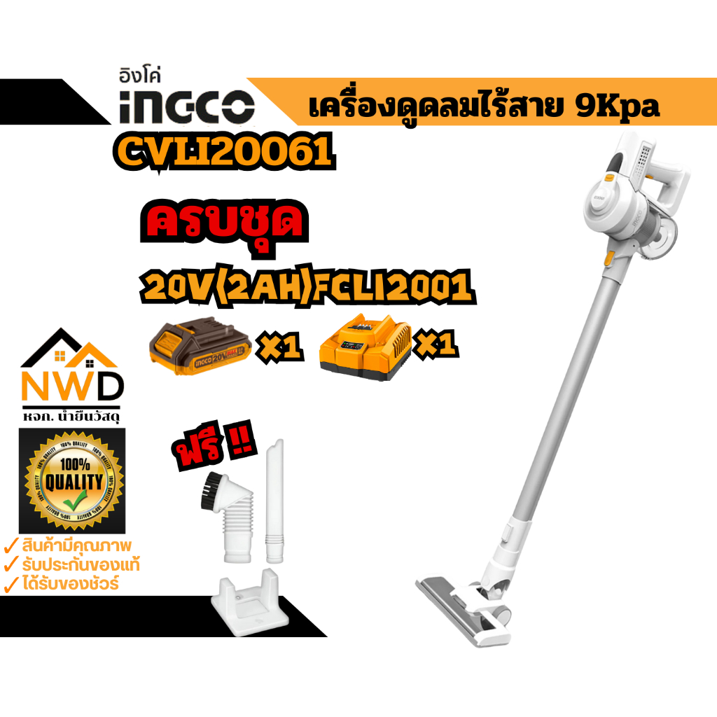 เครื่องดูดฝุ่นไร้สายพร้อม HEPA FILLTER INGCO#CVLI20061