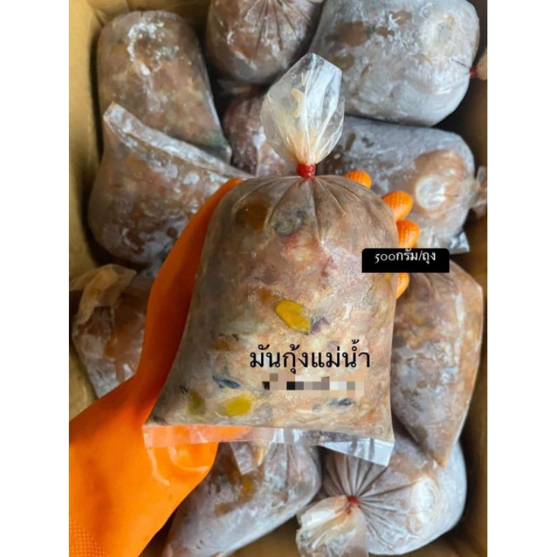 มันกุ้งแม่น้ำแท้ๆ มันกุ้งล้วนๆไม่ผสมมันกุ้งขาว ถุงละ450-500กรัม แกะจากกุ้งสดแล้วนำไปแช่แข็ง