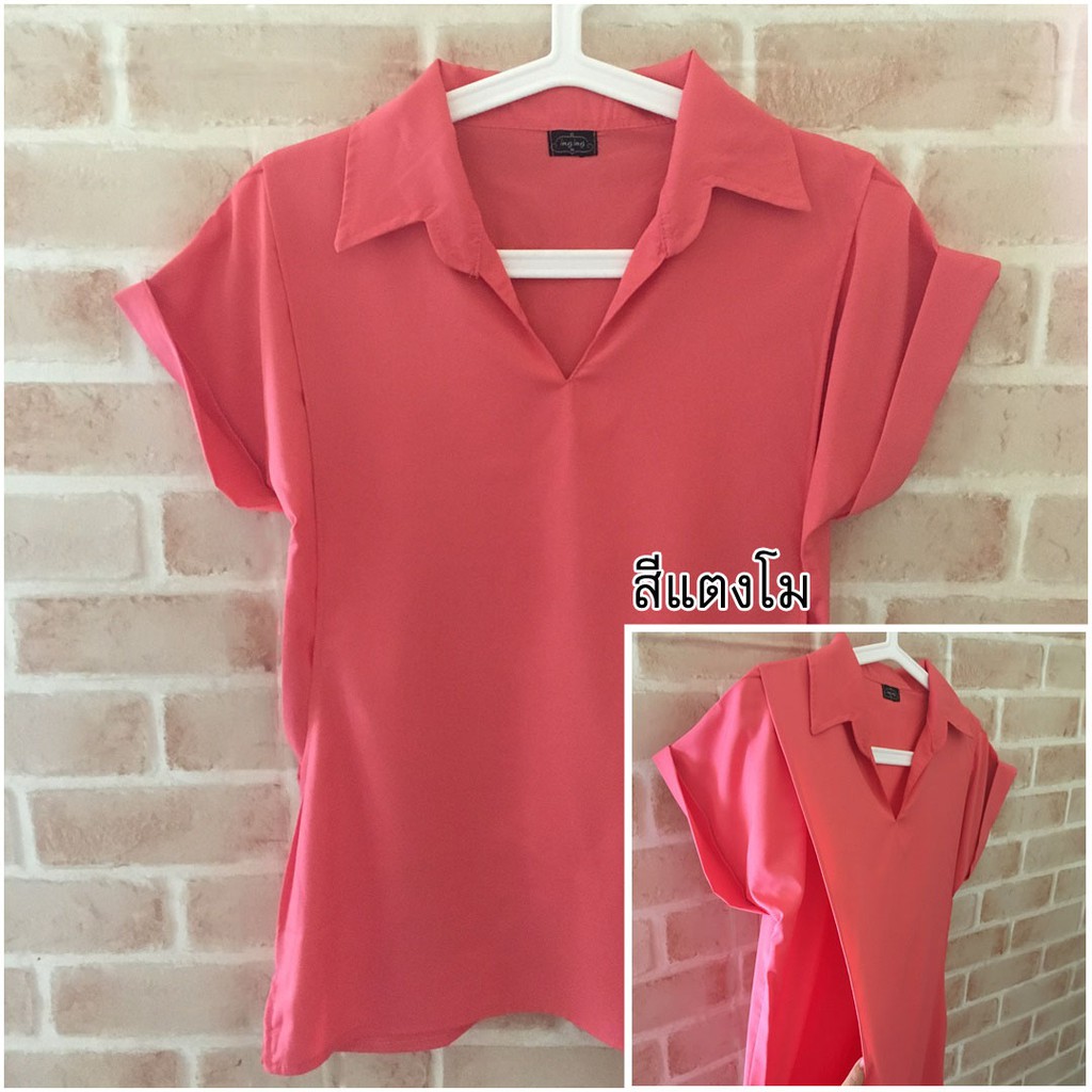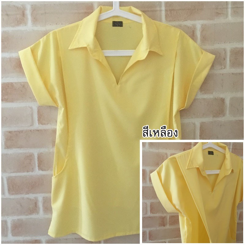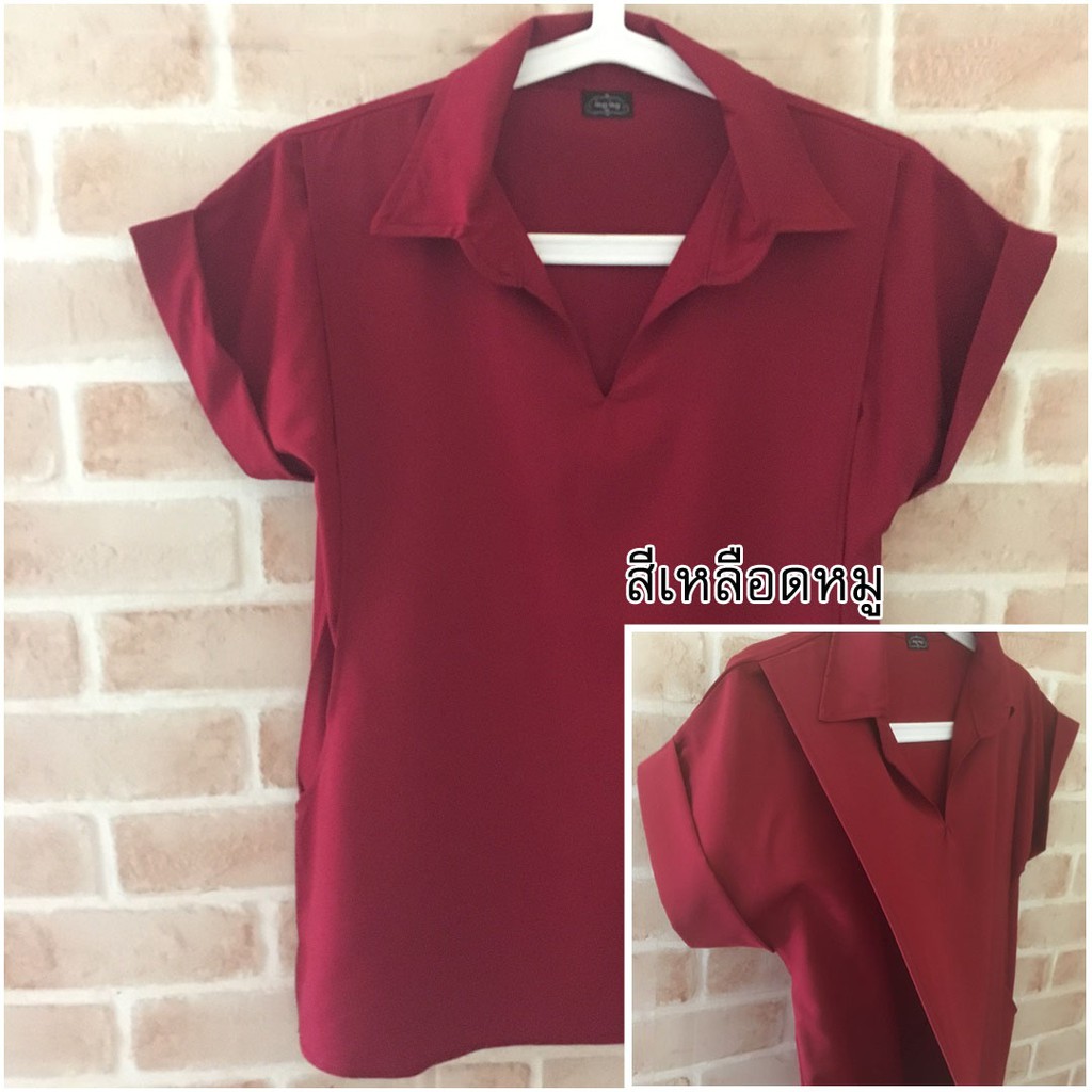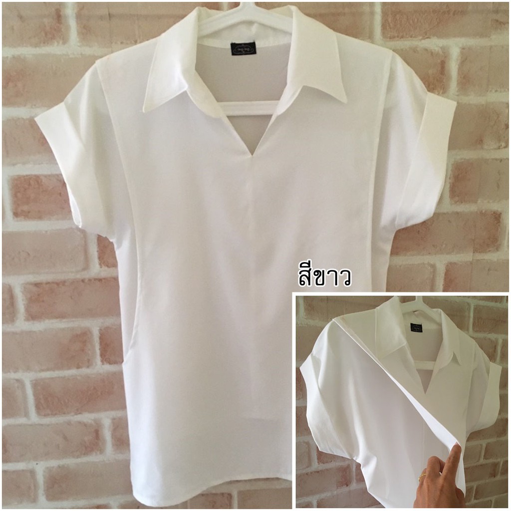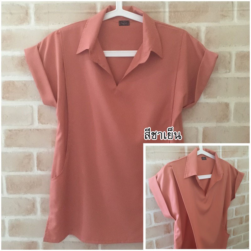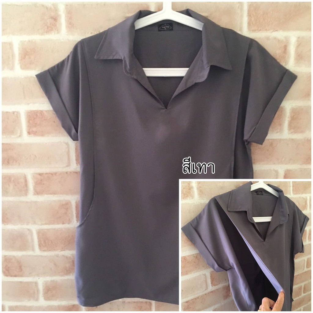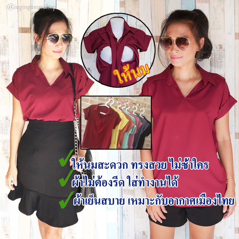 เสื้อให้นมแหวกข้างคอปกใส่เที่ยว ใส่ทำงานได้ ผ้าไม่ต้องรีดสบัดใส่ได้เลยประหยัดเวลาเร่งด่วนของคุณแม่