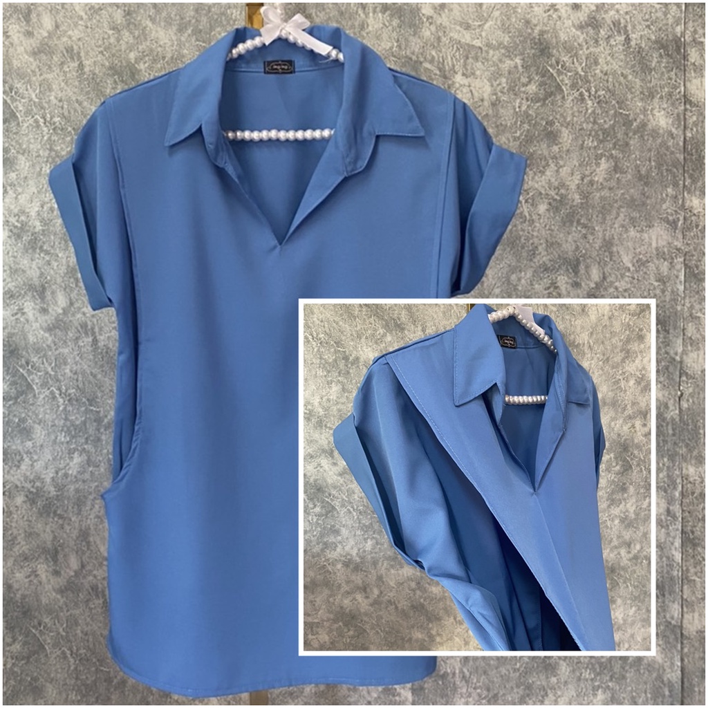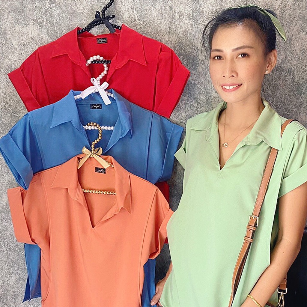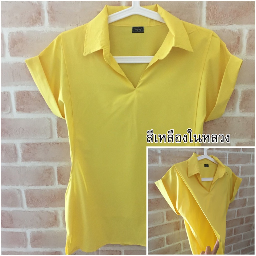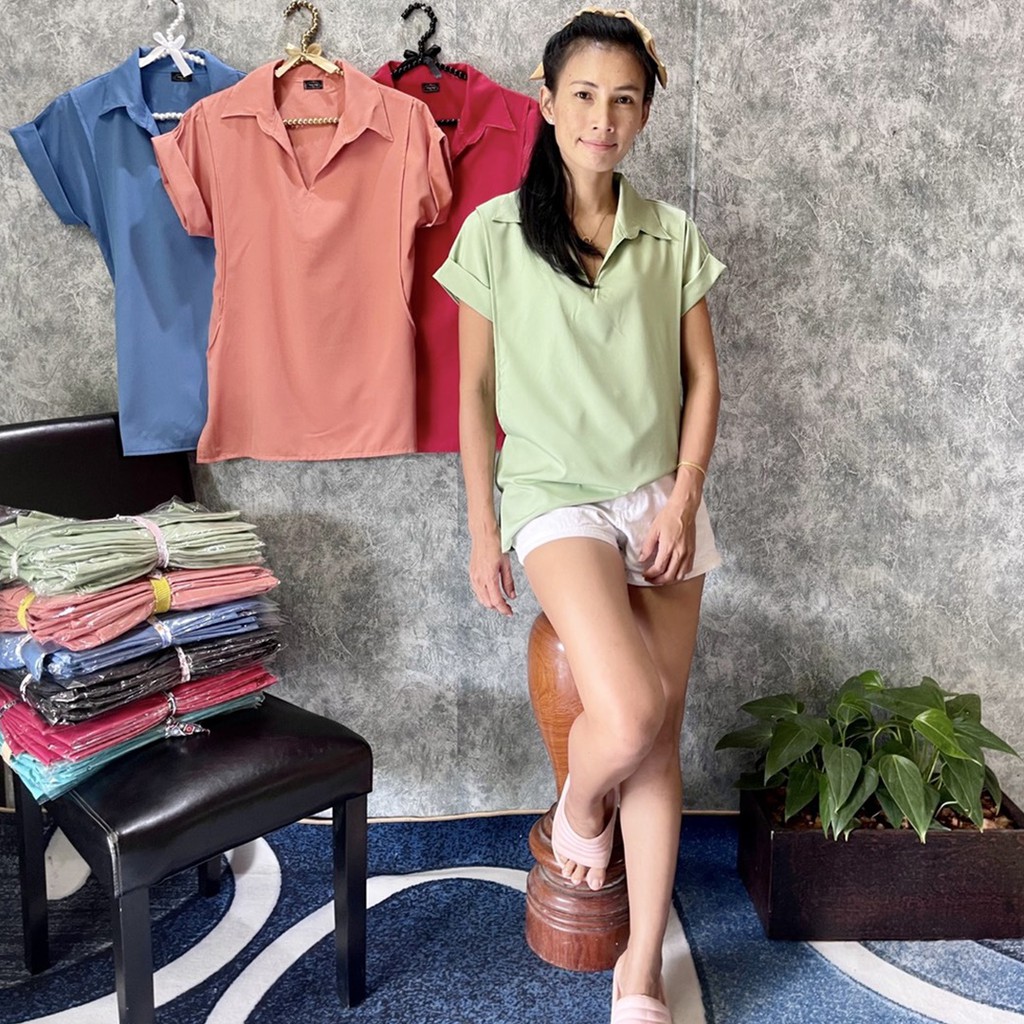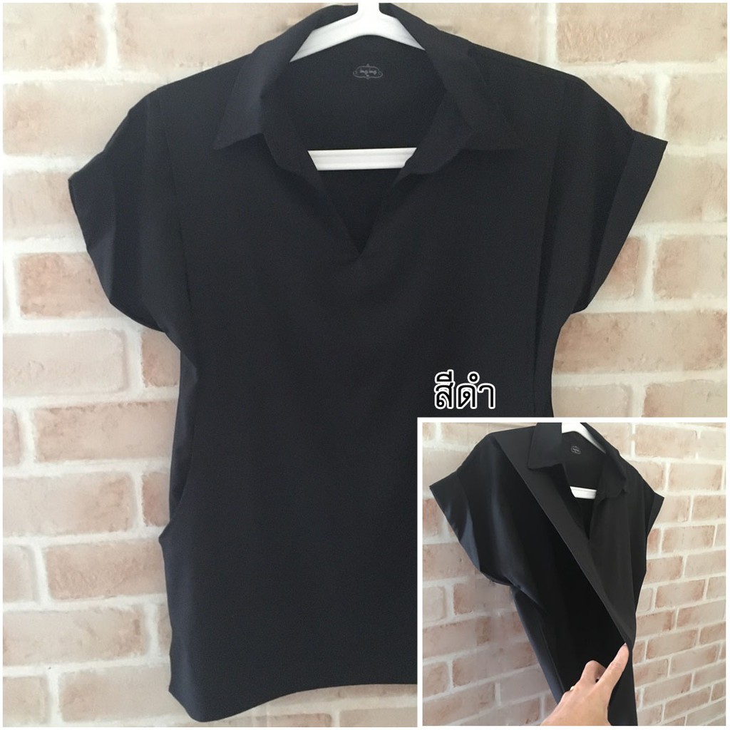 เสื้อให้นมแหวกข้างคอปกใส่เที่ยว ใส่ทำงานได้ ผ้าไม่ต้องรีดสบัดใส่ได้เลยประหยัดเวลาเร่งด่วนของคุณแม่