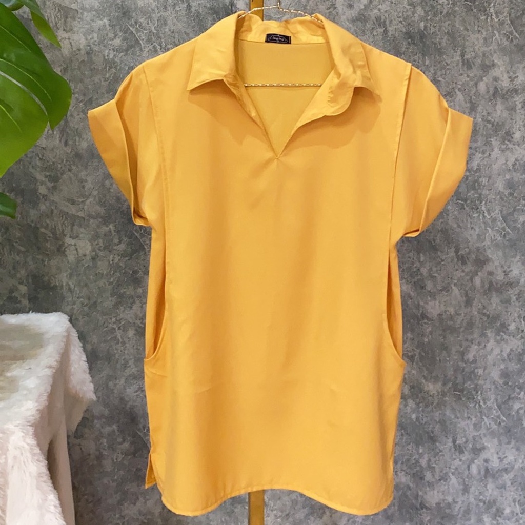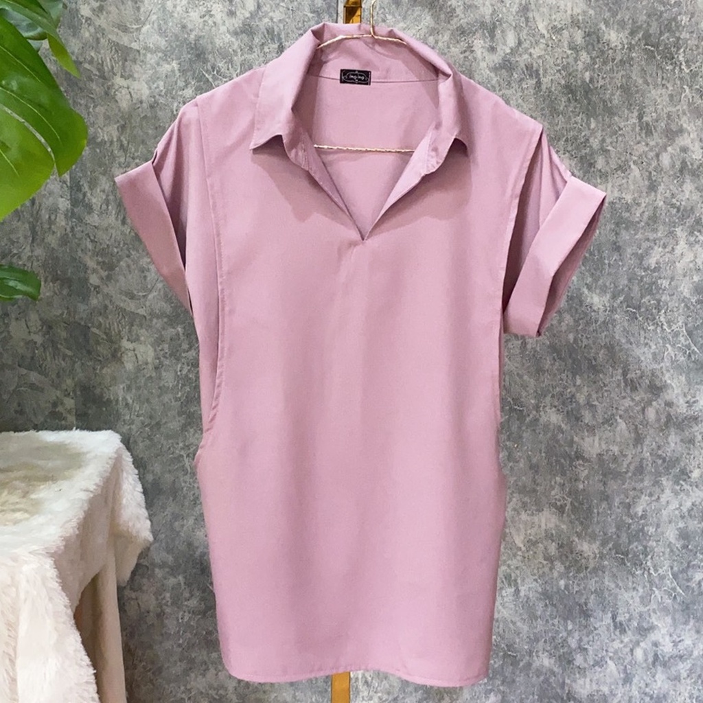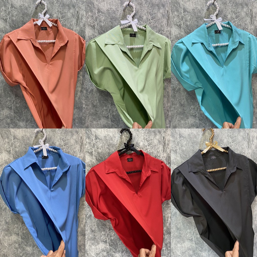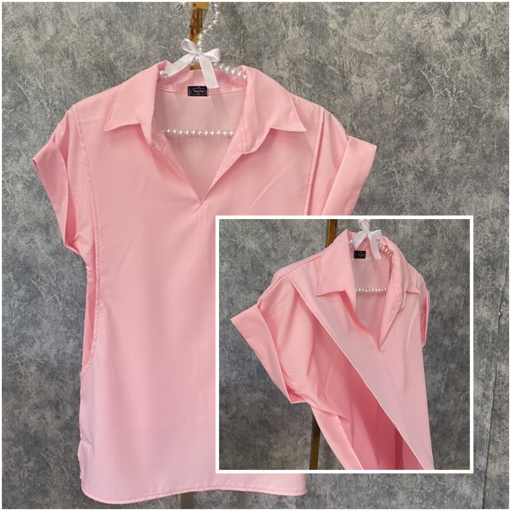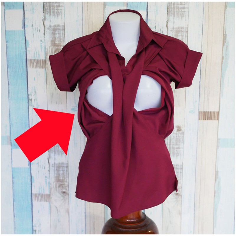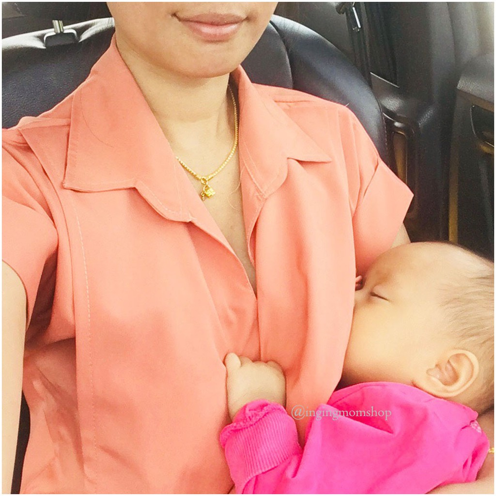 เสื้อให้นมแหวกข้างคอปกใส่เที่ยว ใส่ทำงานได้ ผ้าไม่ต้องรีดสบัดใส่ได้เลยประหยัดเวลาเร่งด่วนของคุณแม่