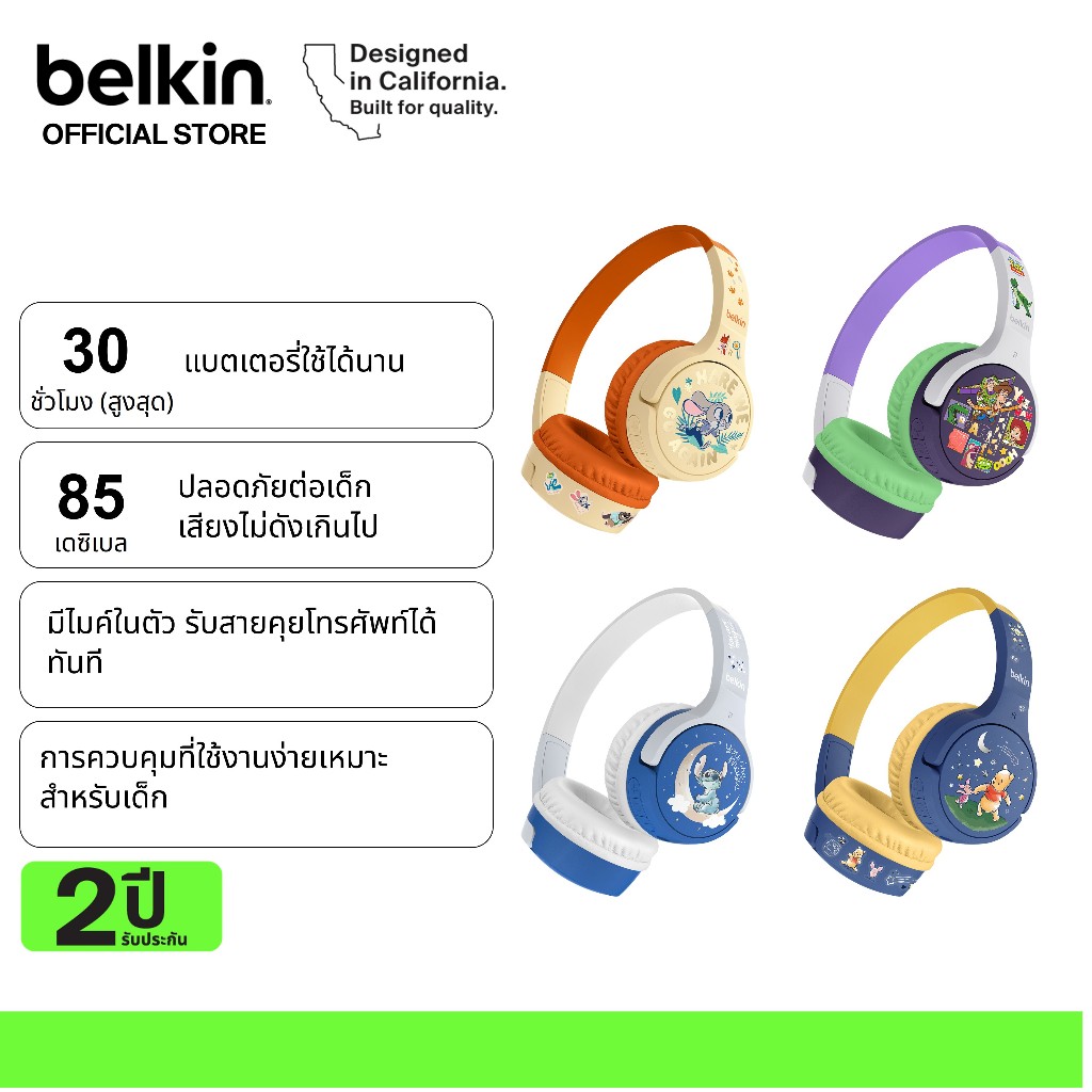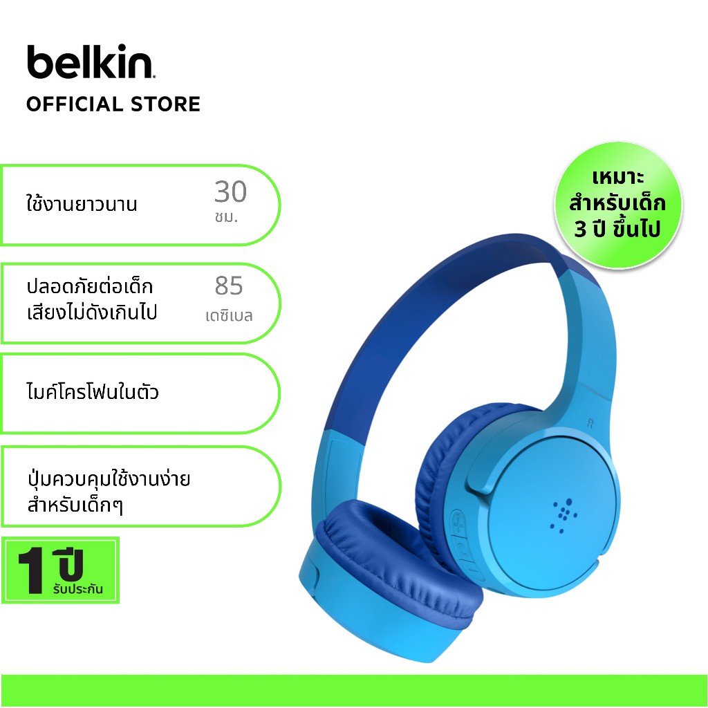Belkin AUD002 หูฟังไร้สายสำหรับเด็กความดังไม่เกิน 85 เดซิเบล มีไมค์ คุยโทรศัพท์ได้ Bluetooth 5.0