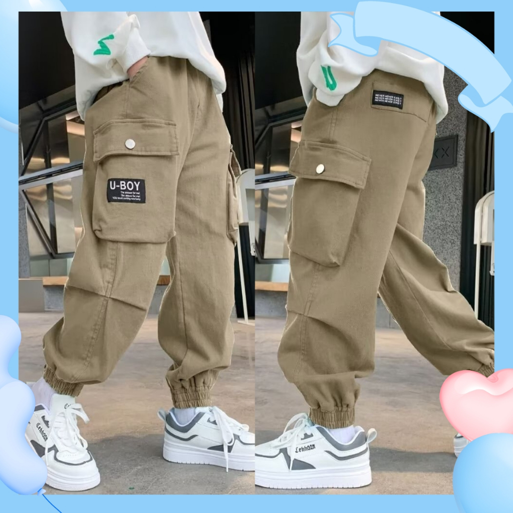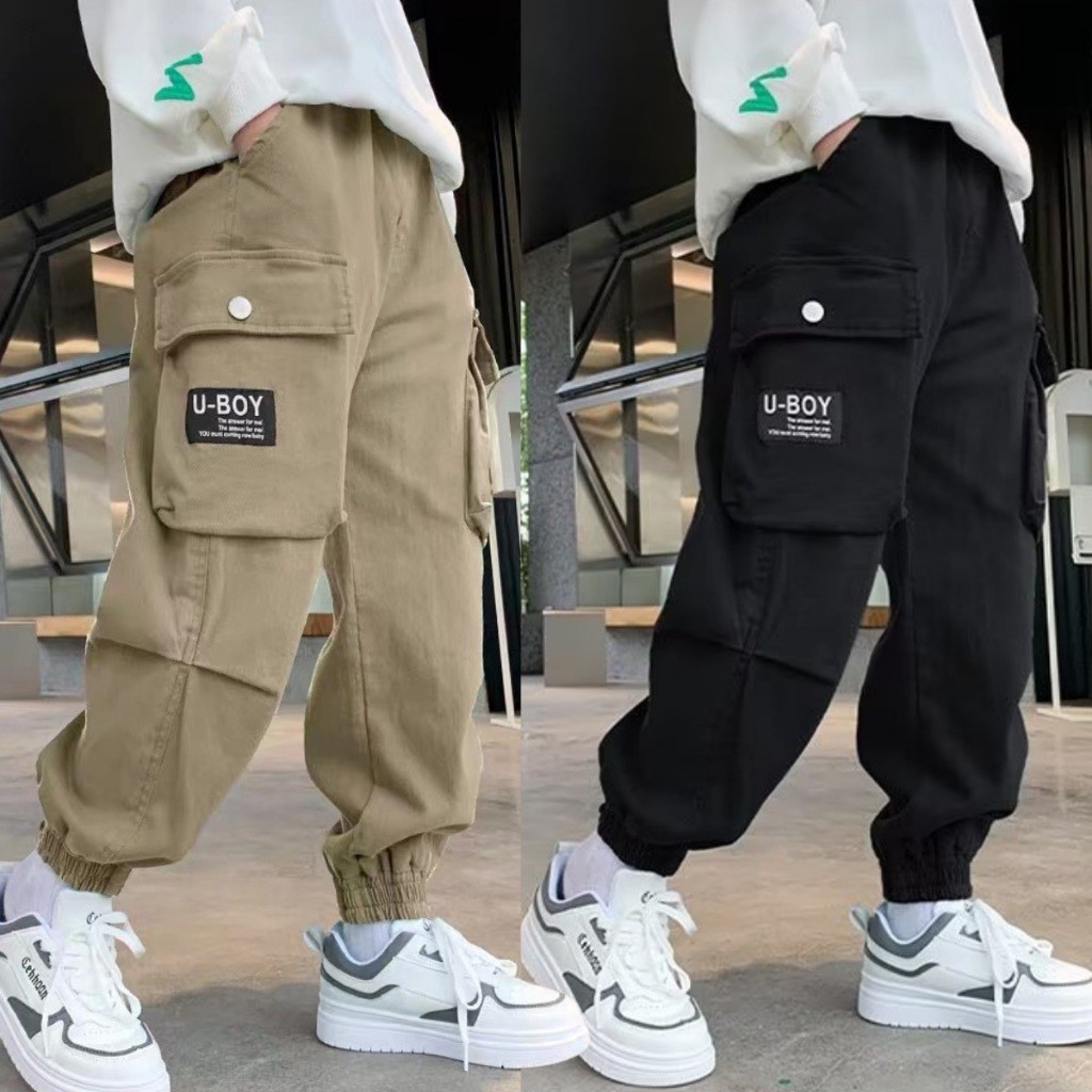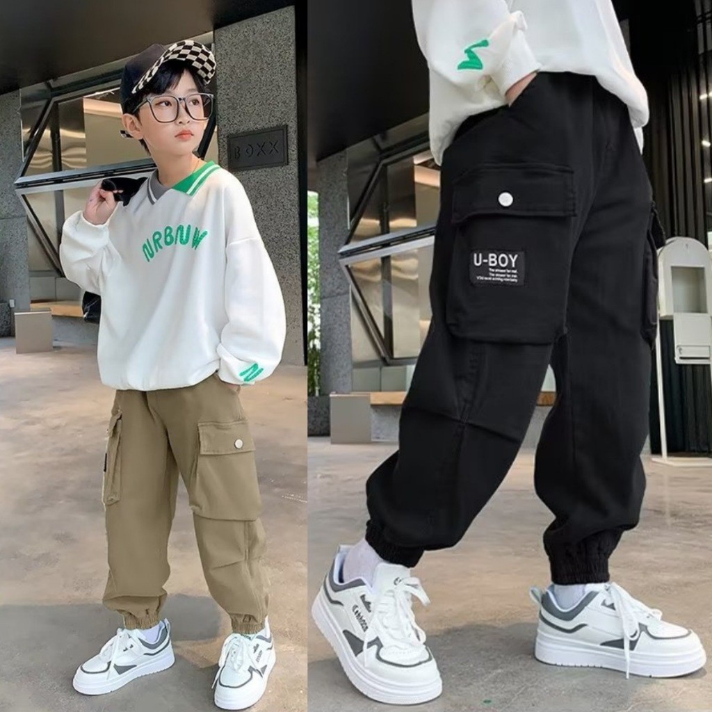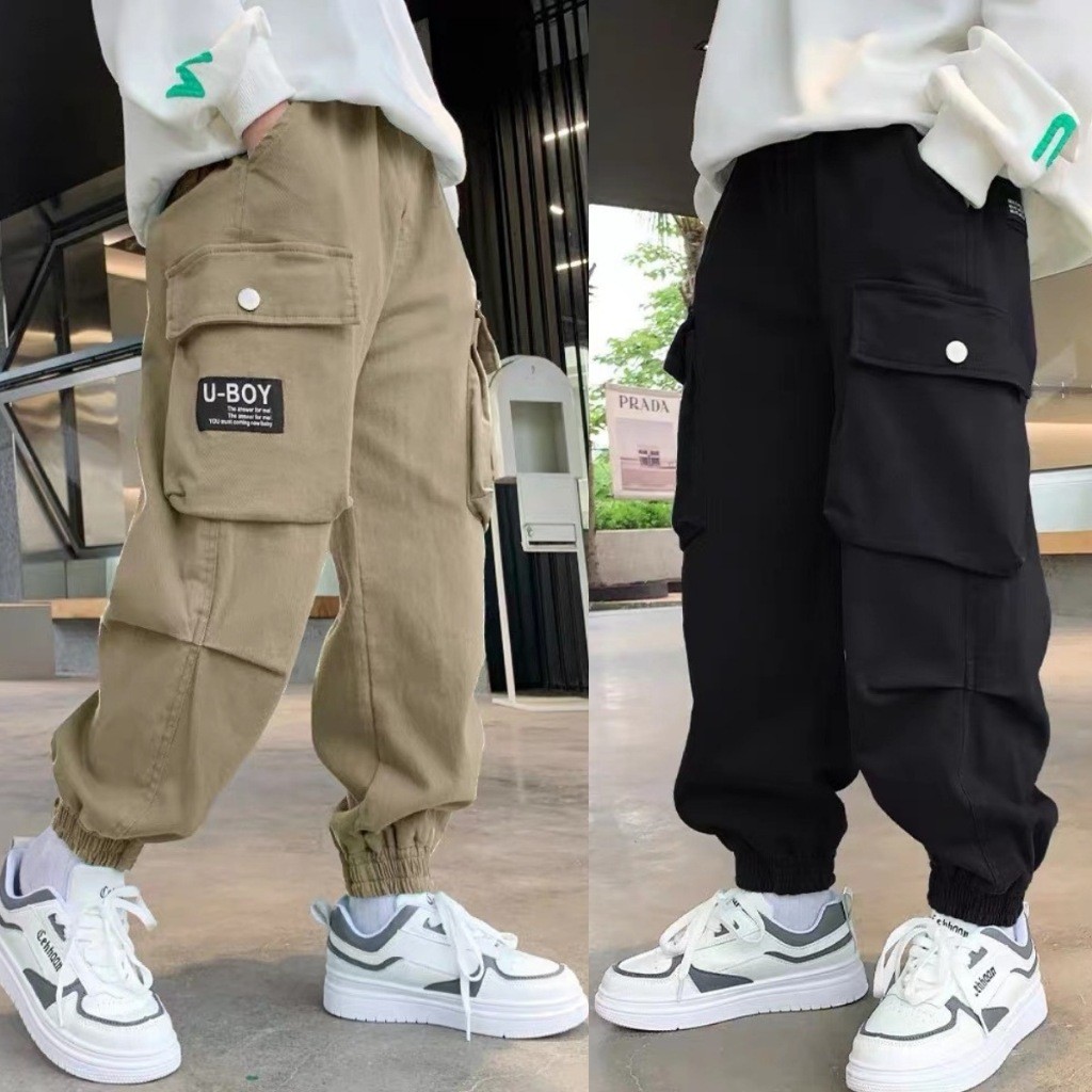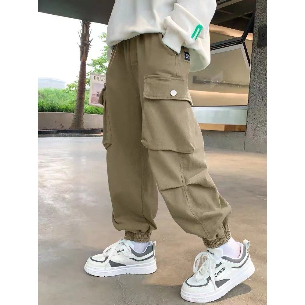 【จัดส่งจากประเทศไทย】กางเกงคาร์โก้สำหรับเด็กผู้ชายรุ่นใหม่ สไตล์เกาหลี หลายกระเป๋า อินเทรนด์ เหมาะสำหรับเด็กใส่