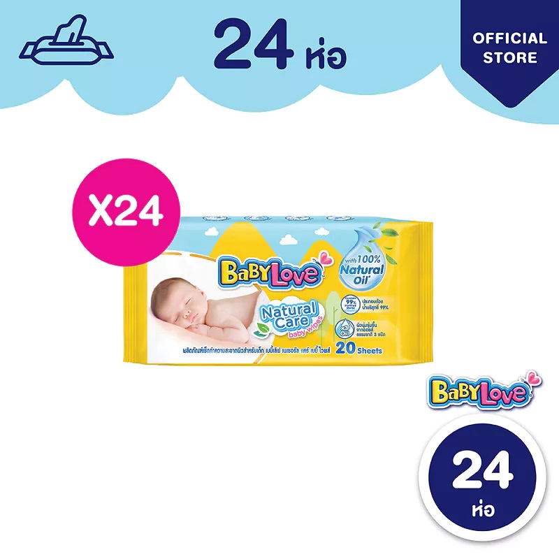 [ขายยกลัง ลด50%] เบบี้เลิฟเนเชอรัลไวพส์ 20 แผ่น (24 ห่อ)
