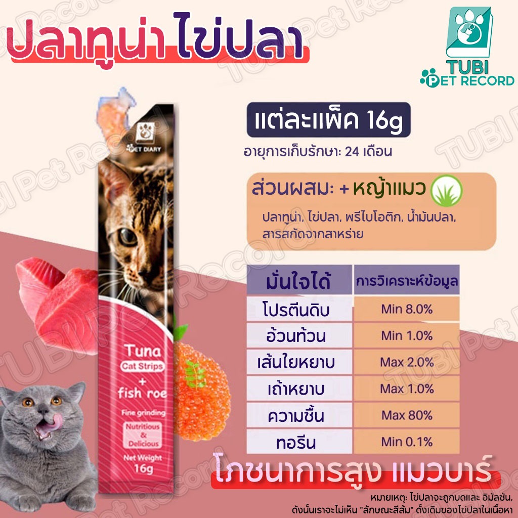 TUBI แมวบาร์ ลดอาการขนร่วง อาหารแมวแบบเปียกแบบเร่งด่วน 16g เพิ่มปริมาณน้ำ น้ำมันปลาCat Food