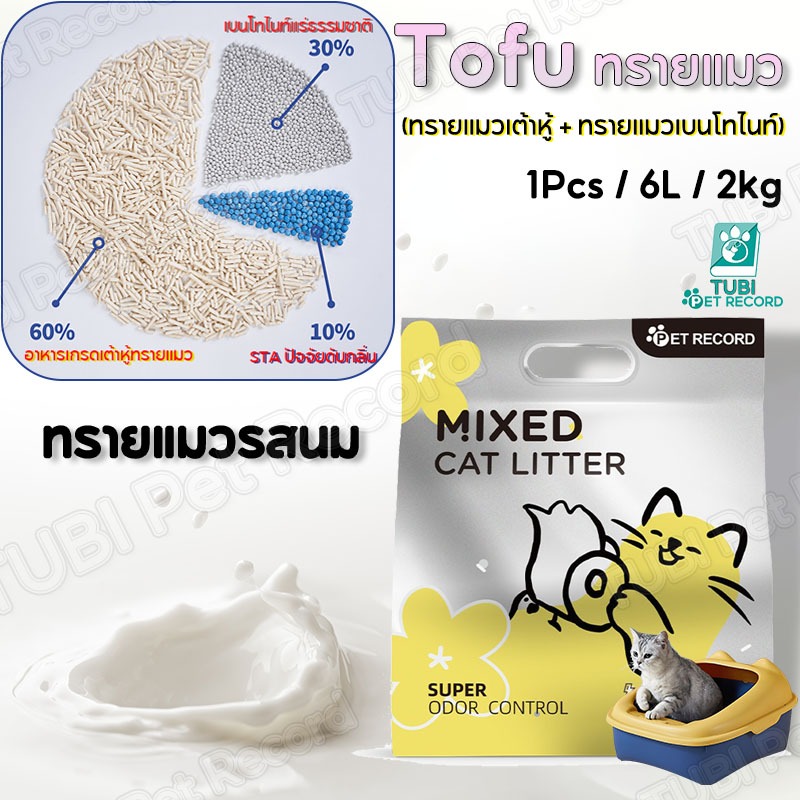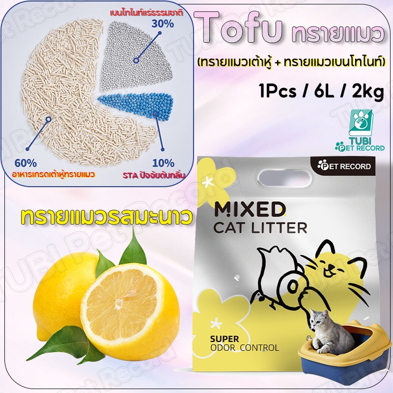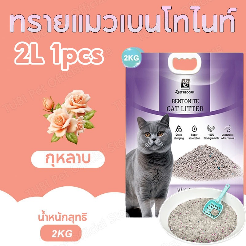 TUBI ครอกแมวเบนโทไนท์ ความจุขนาดใหญ่ ฟังก์ชั่นการดูดซึมน้ำที่มีประสิทธิภาพสูง ทางเลือกที่ดีที่สุด 2L