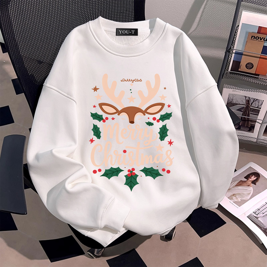 Sea.Tee [COD]🎅🎄 สเวตเตอร์ แขนยาว ทรงหลวม แบบลำลองเกาหลี Printed 'Merry Christmas05' [การจัดส่งในท้อถิ่น]