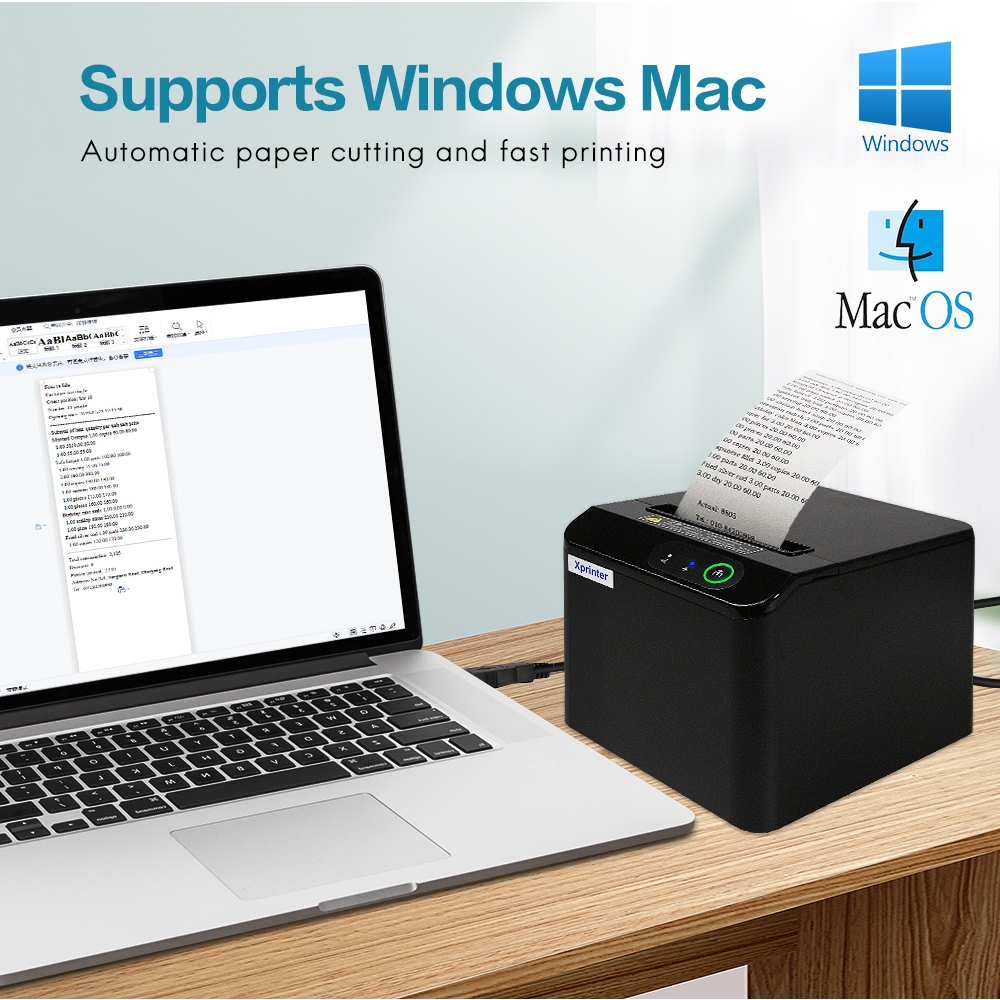 เครื่องพิมพ์ใบเสร็จ 80 มม. เครื่องพิมพ์มือ T80Q USB/USB+Lan port เครื่องพิมพ์เครื่องตัดอัตโนมัติ POS เครื่องพิมพ์ห้องครัว