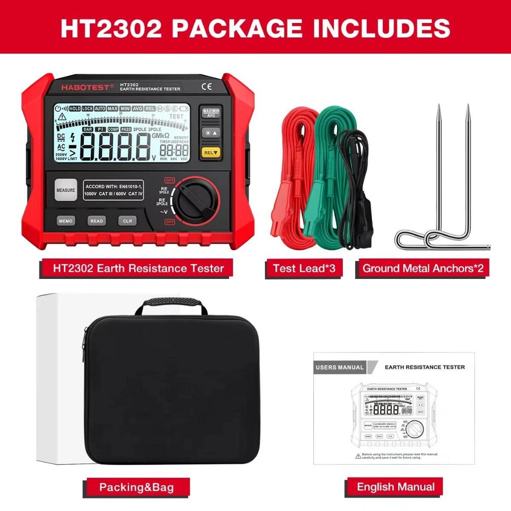 HABOTEST HT2302 เครื่องทดสอบความต้านทานสายดิน