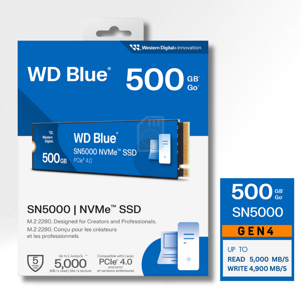 WD Blue SN5000 SSD 2TB ,1TB M.2 2280 NVMe Gen4 Speed Up to 5,150MB/s ,5Y WDS100T4B0E , WDS200T4B0E