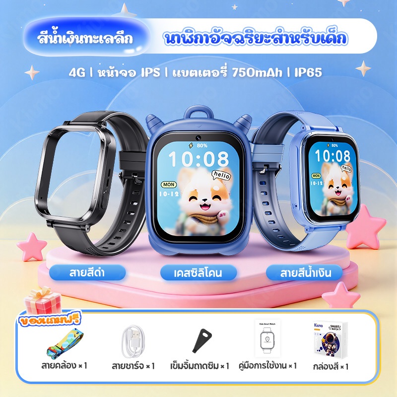 【ประกัน2ปี】Kiumo Smart watch นาฬิกาเด็ก นาฬิกาโทรศัพท์เด็ก พร้อมเคสป้องกัน GPS ติดตามตำแหน่ง 4G SIM SOS การโทรผ่านกล้อง HD การติดตามแบบเรียลไทม์ ของขวัญสำหรับเด็ก