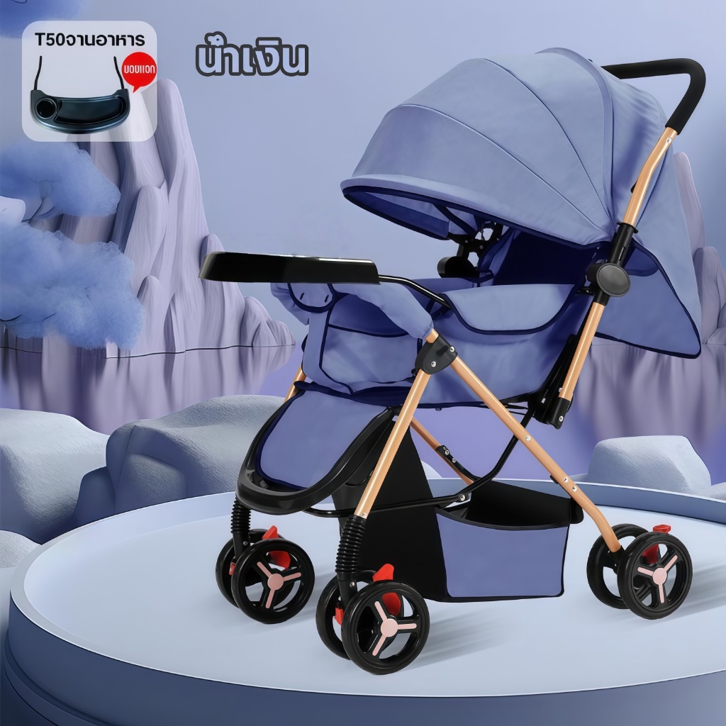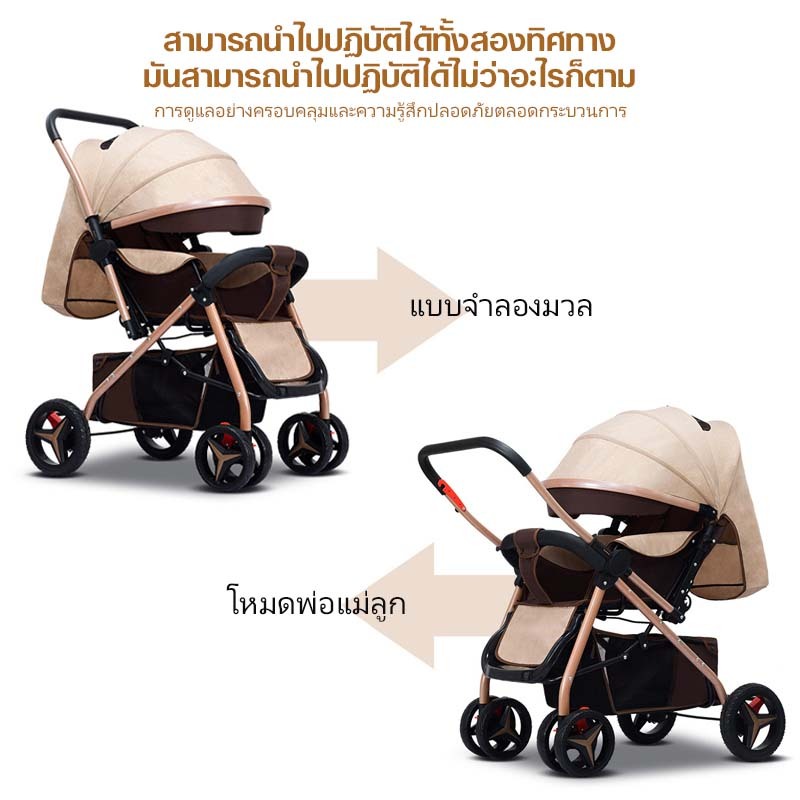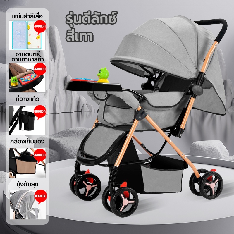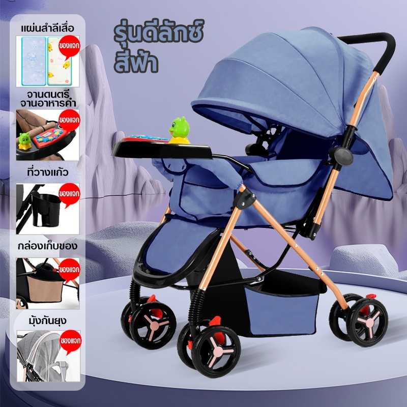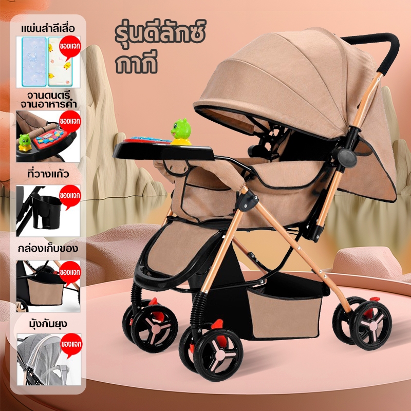 รถเข็นเด็ก รถเข็นเด็กพับได้ โช๊คอัพ ล้อมีเบรค พกพาสะดวก สายรัดแบบ 5 จุด เข็นหน้า-หลังได้ รถเข็นเด็กเอนกประสงค