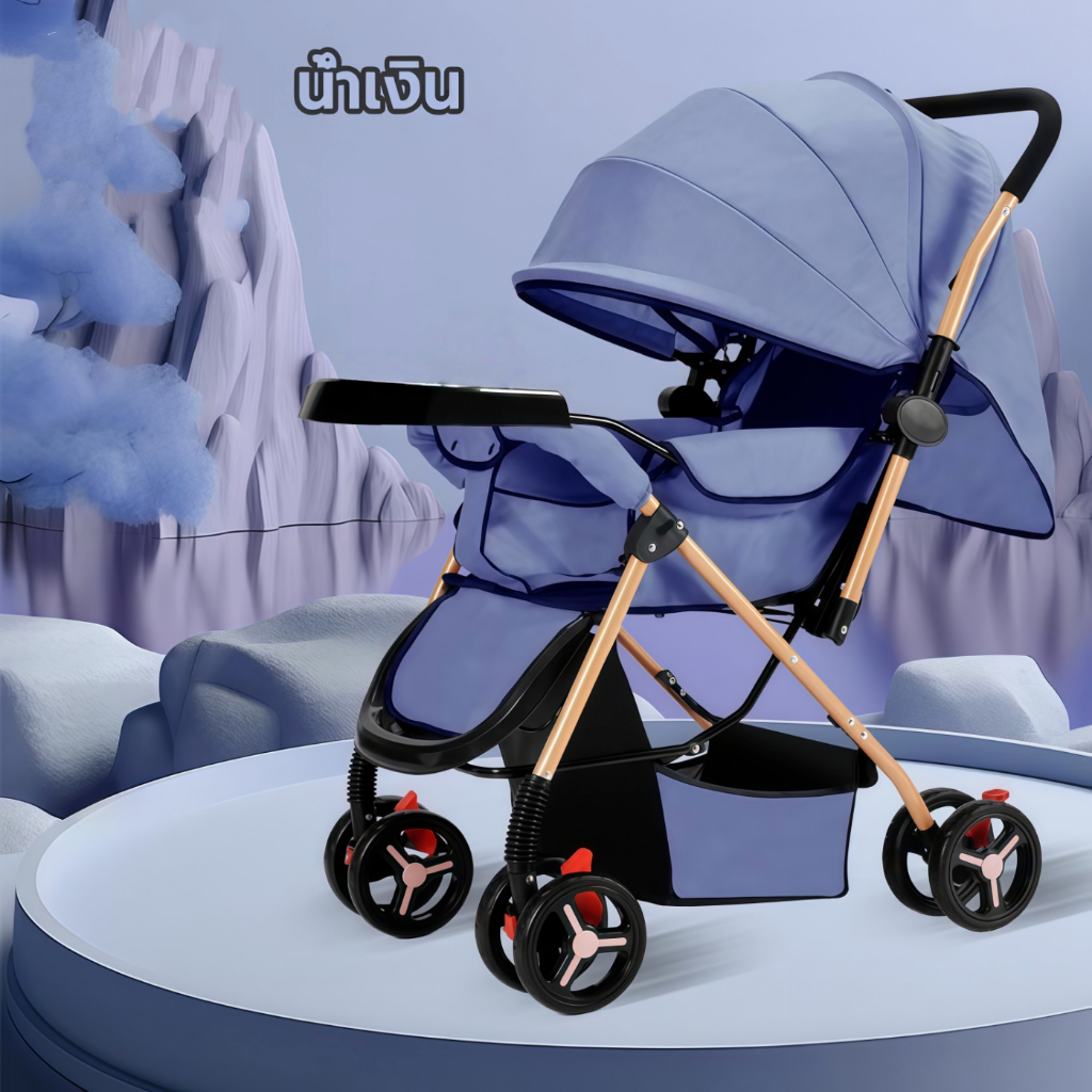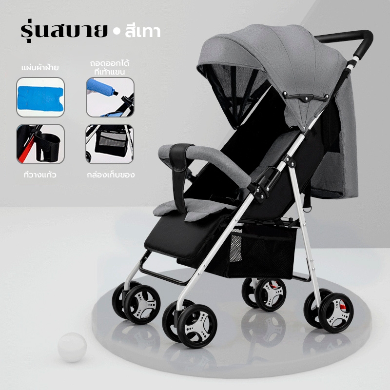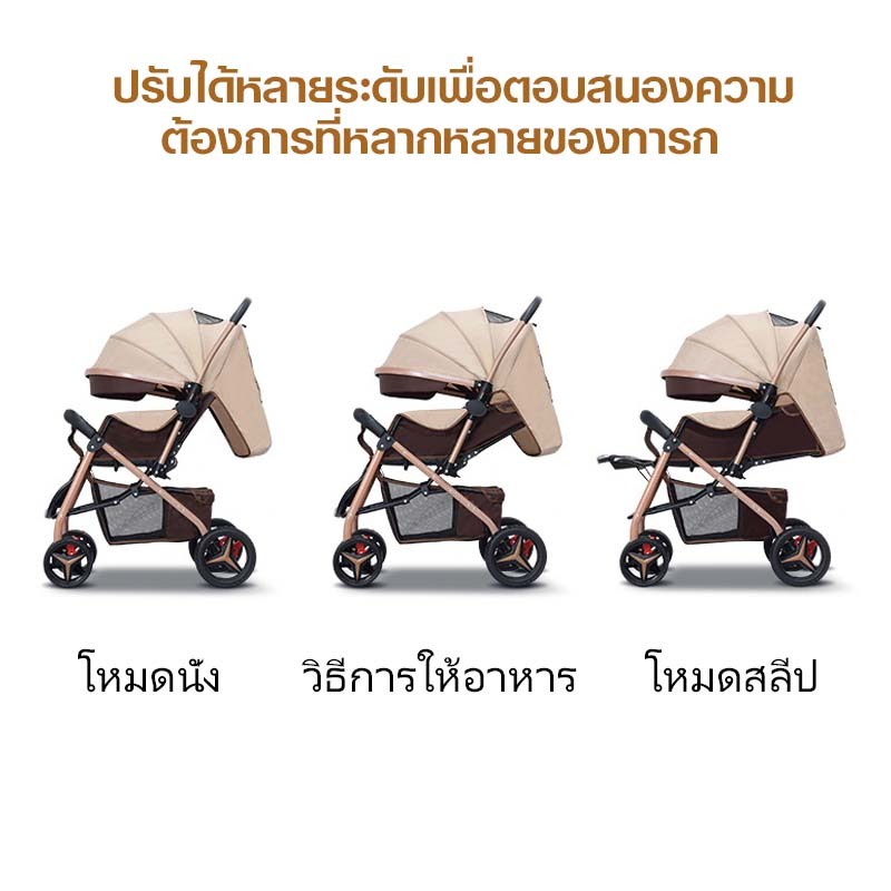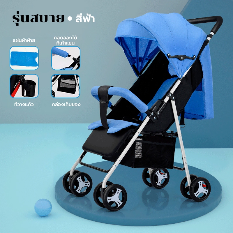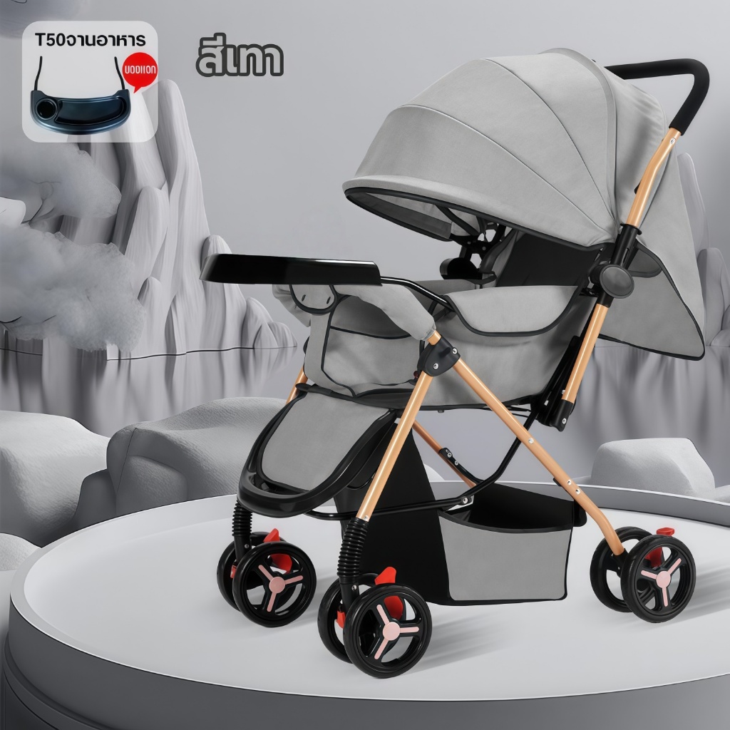รถเข็นเด็ก รถเข็นเด็กพับได้ โช๊คอัพ ล้อมีเบรค พกพาสะดวก สายรัดแบบ 5 จุด เข็นหน้า-หลังได้ รถเข็นเด็กเอนกประสงค