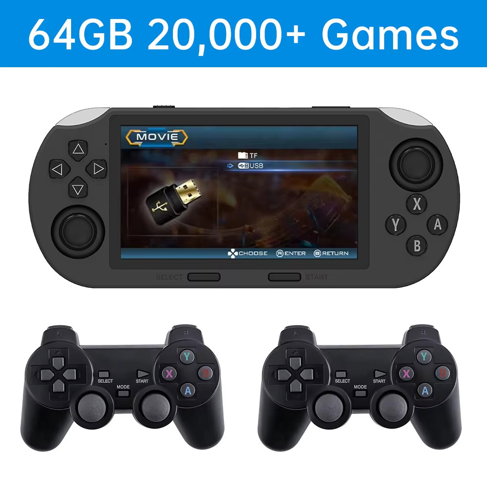 Sf3000 แบบพกพาคอนโซลเกมมือถือ 4.5 นิ้วหน้าจอ IPS Retro เครื่องเล่นวิดีโอ 64G ในตัว 20000 + เกมสําหรับ PS1/GBA/SFC