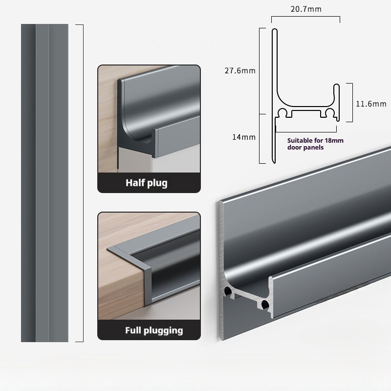 ที่ทันสมัยเรียบง่ายยาวคณะรัฐมนตรีจับรูปตัว L ตู้เสื้อผ้าลิ้นชักจับอลูมิเนียมคณะรัฐมนตรีมือจับประตู
