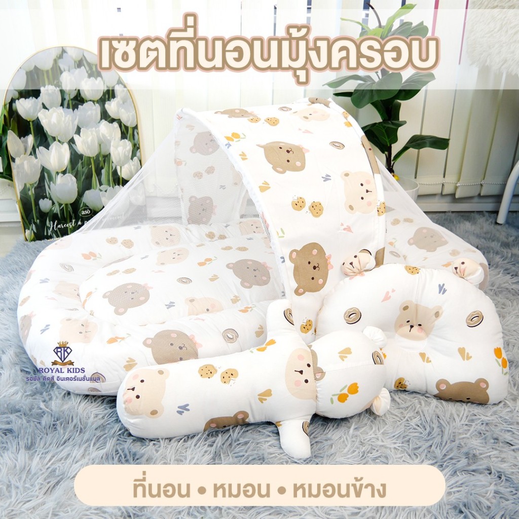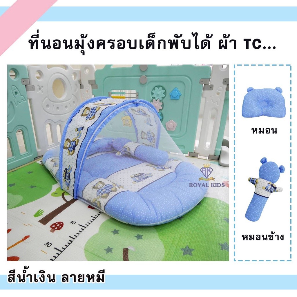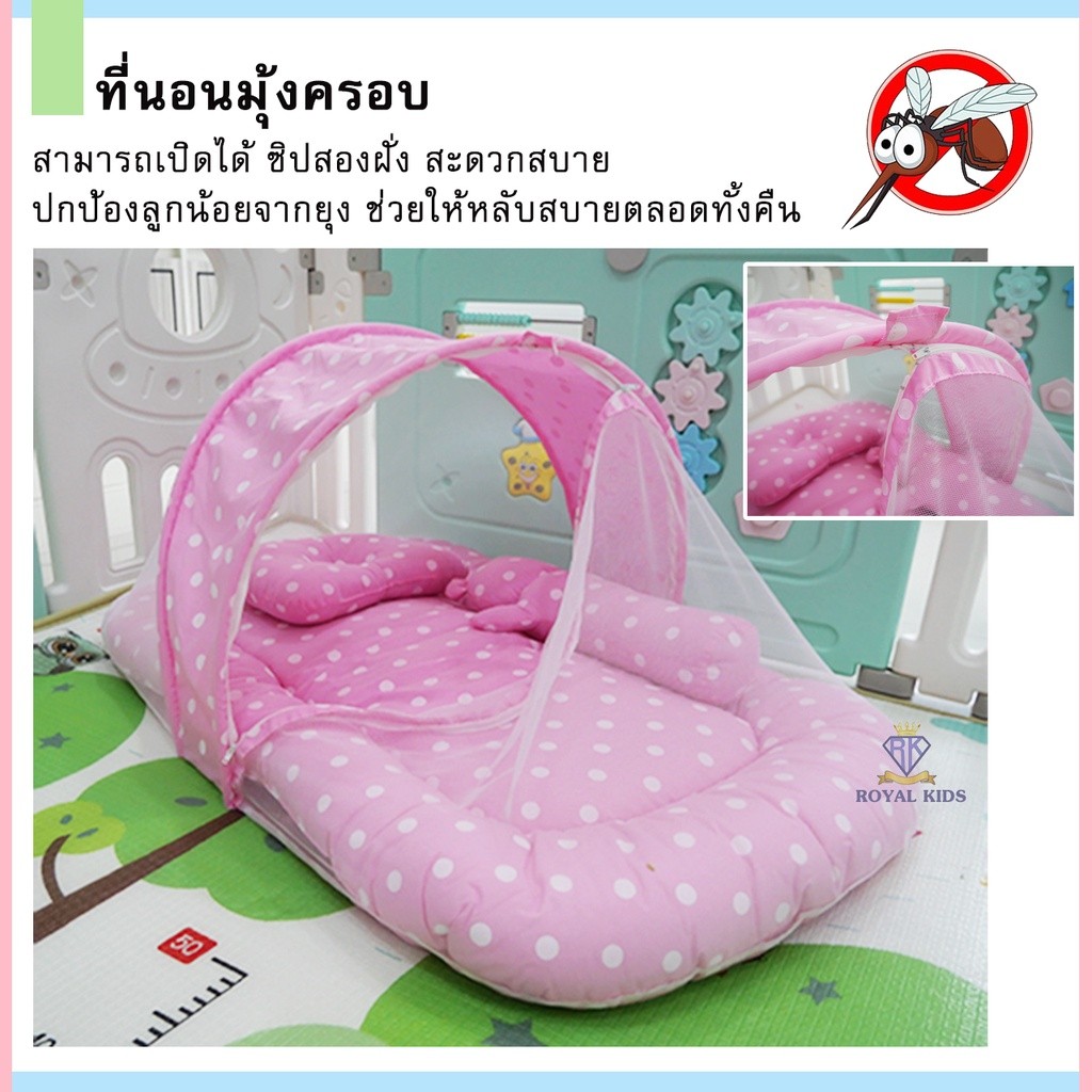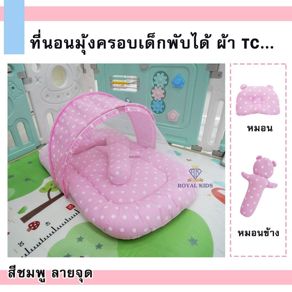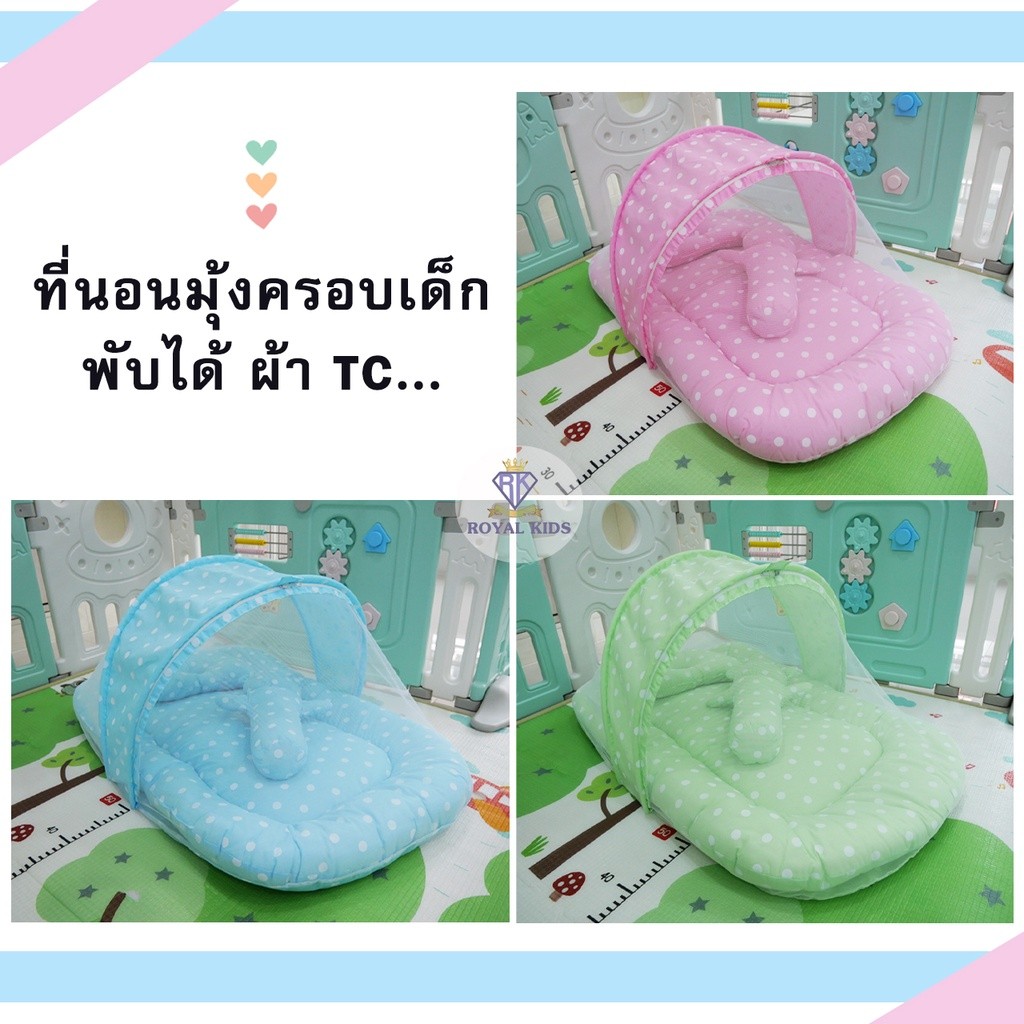 มุ้งครอบที่นอน เด็กอ่อน เด็กแรกเกิด ถอดแยกชิ้นได้ เบาะนอนพิมพ์ลาย 2 ด้าน