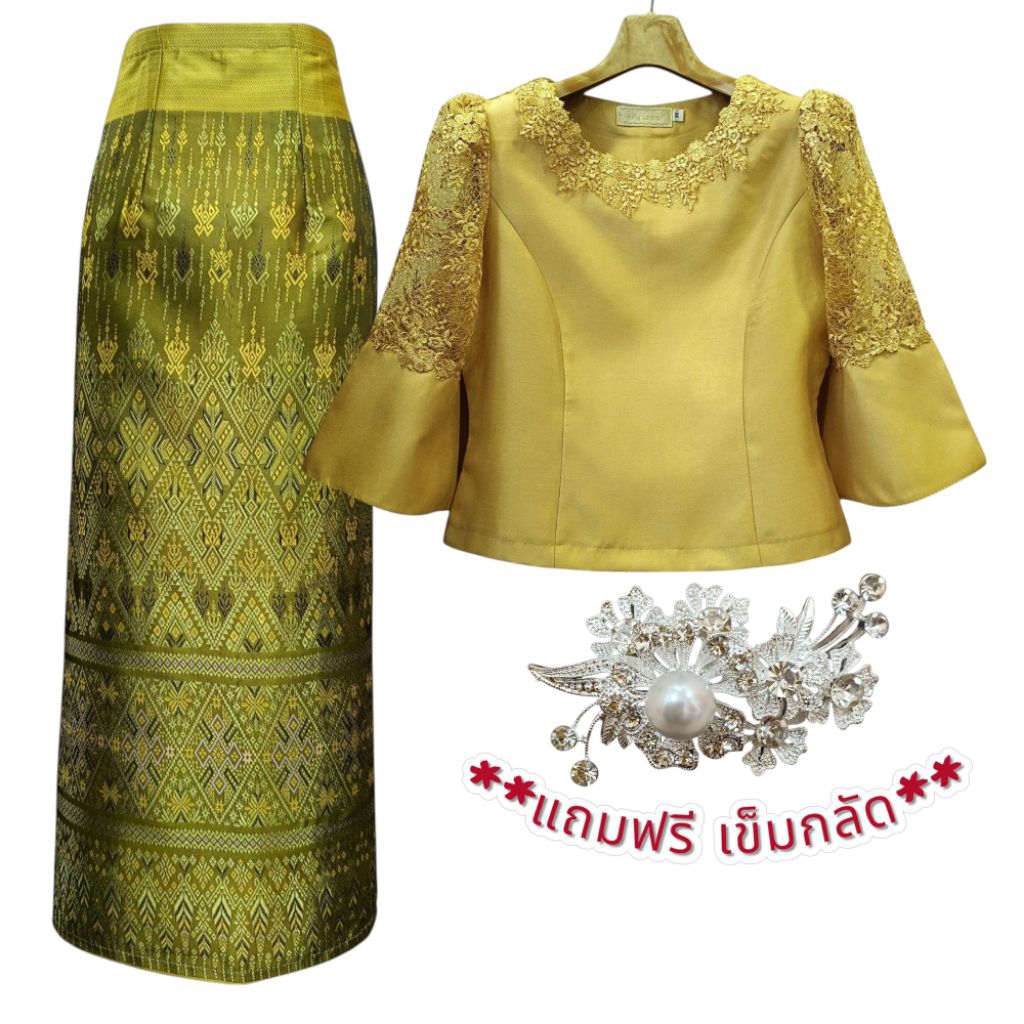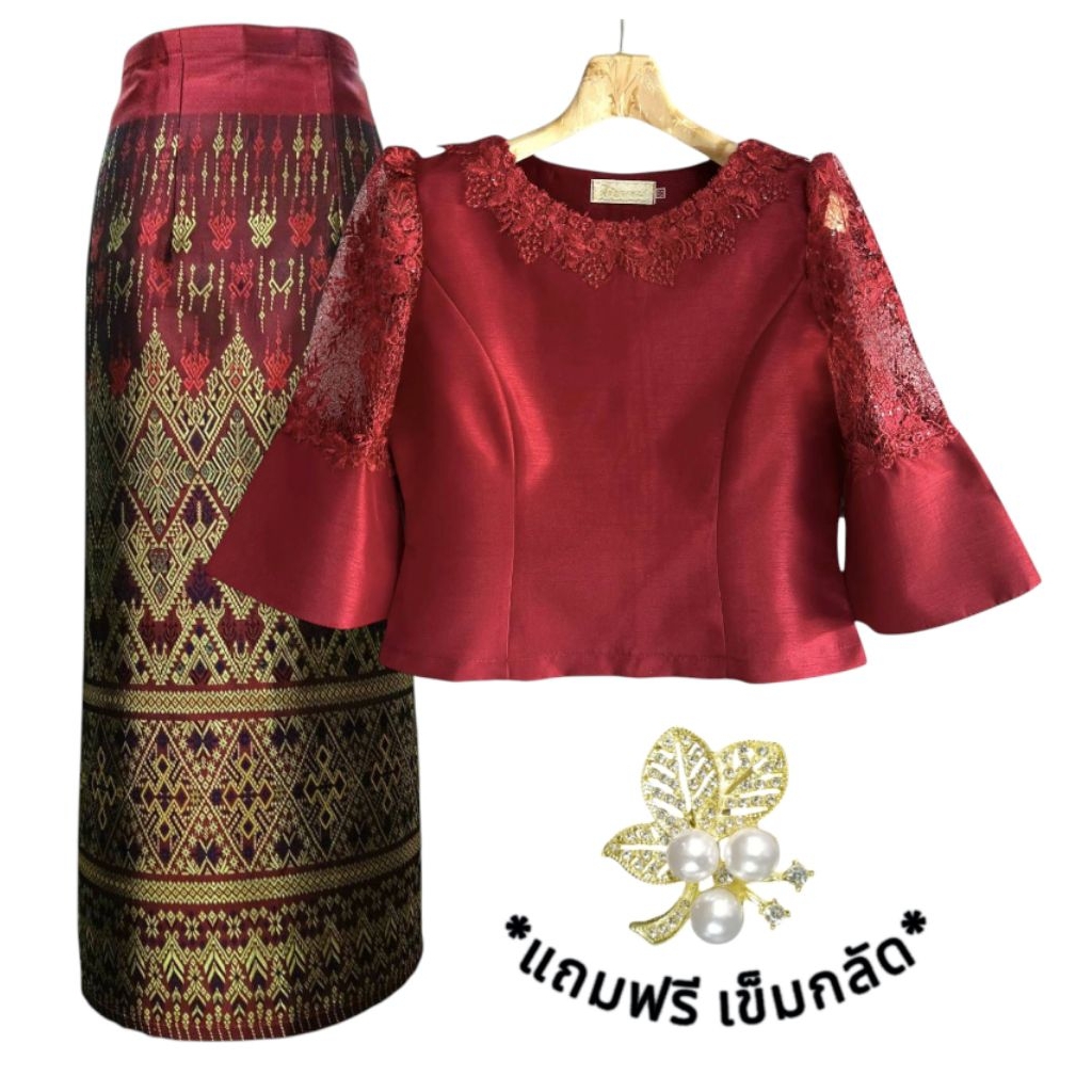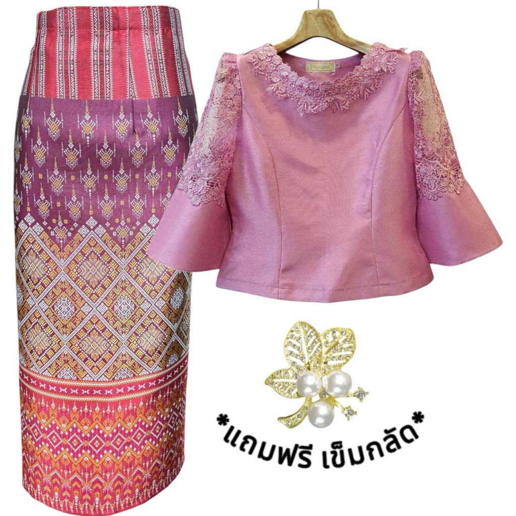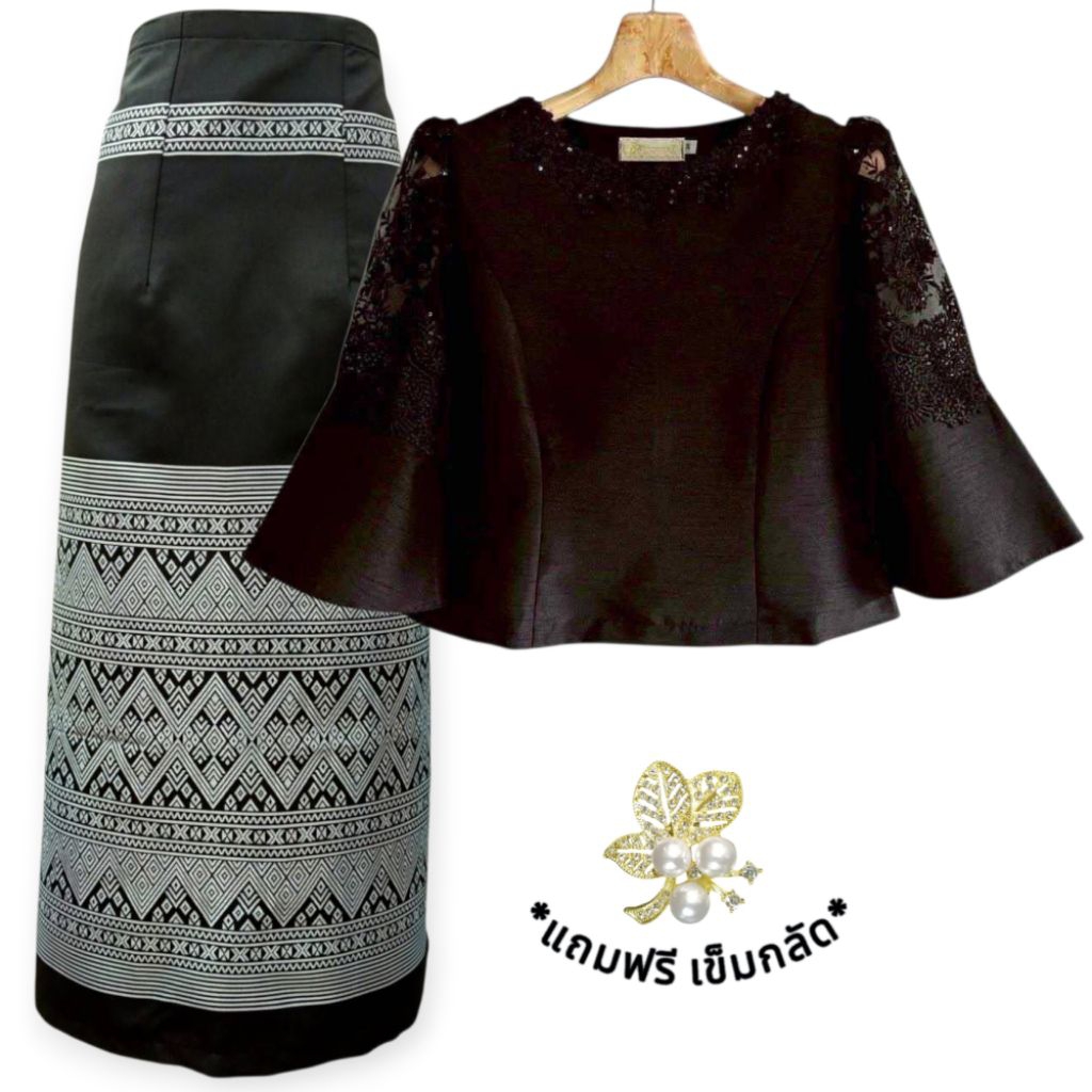 ชุดเซ็ท เสื้อผ้าไหมแขนบาน อัดกาว+ผ้าป้ายฟรีไซส์ อัดกาว