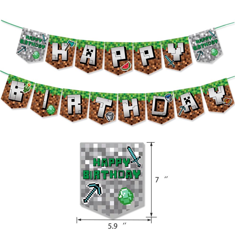 Minecraft ตกแต่งงานเลี้ยงวันเกิด Baby Shower Celebration Decor บอลลูนแบนเนอร์เค้ก Topper