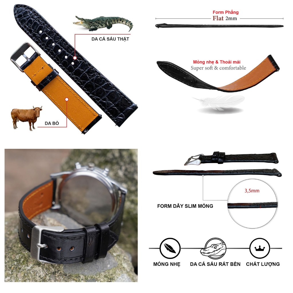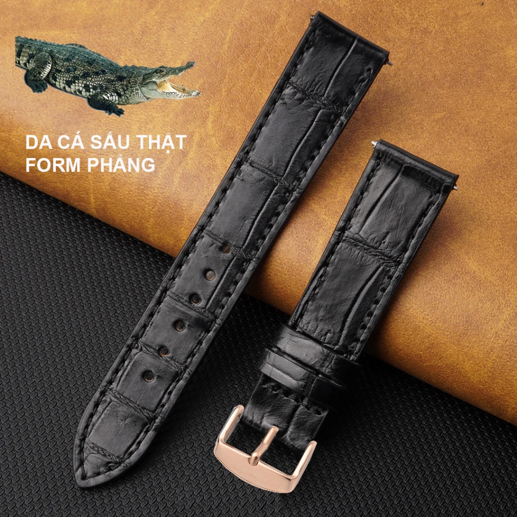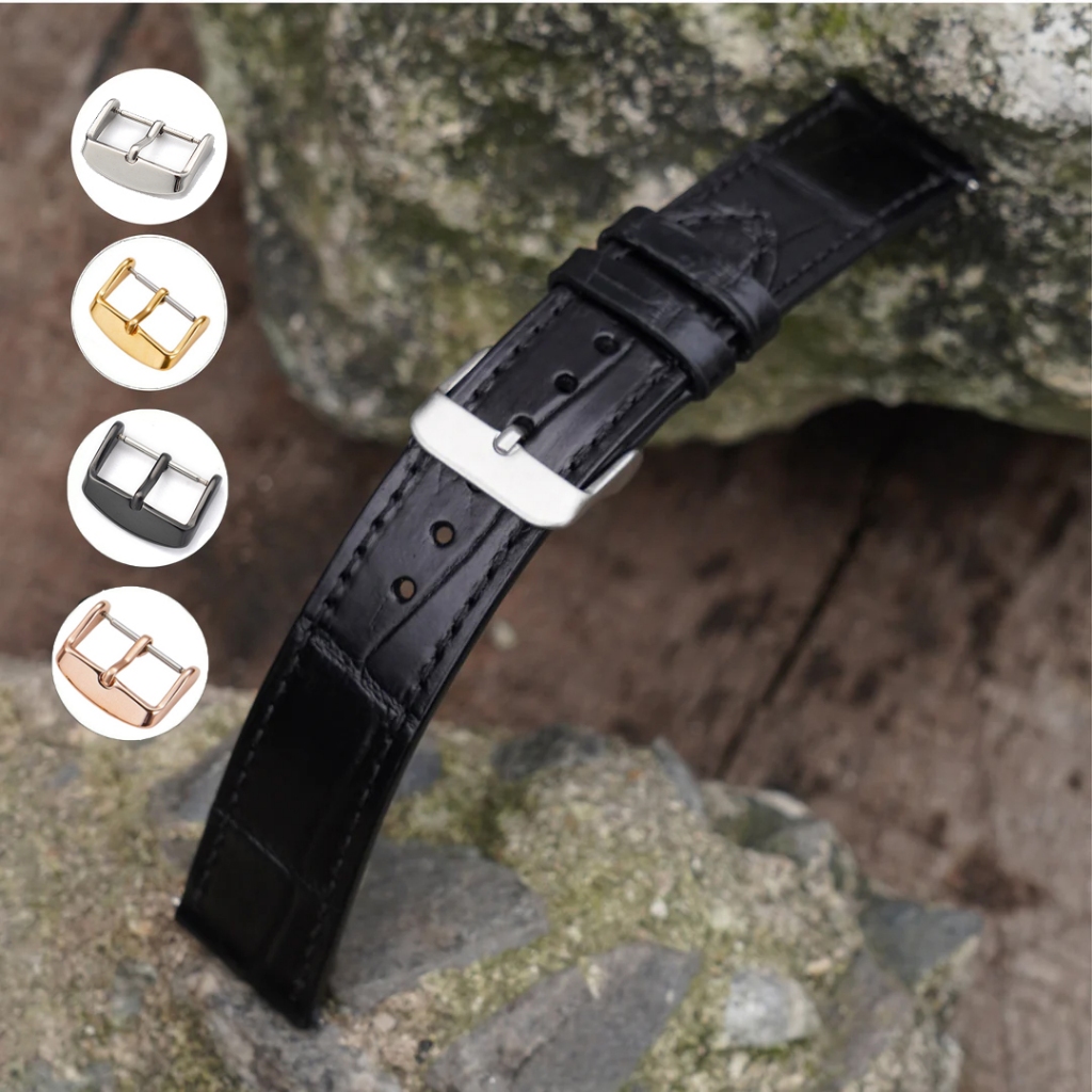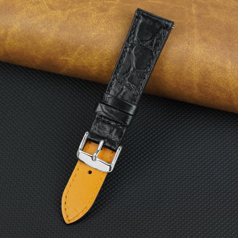 (สีดํา-บาง รูปแบบ) คุณภาพสูง จริง จระเข้ สายนาฬิกาหนังพร้อมตะขอหลายขนาด 10 12 13 14 15 16 17 18 19 20 21 22 24มม