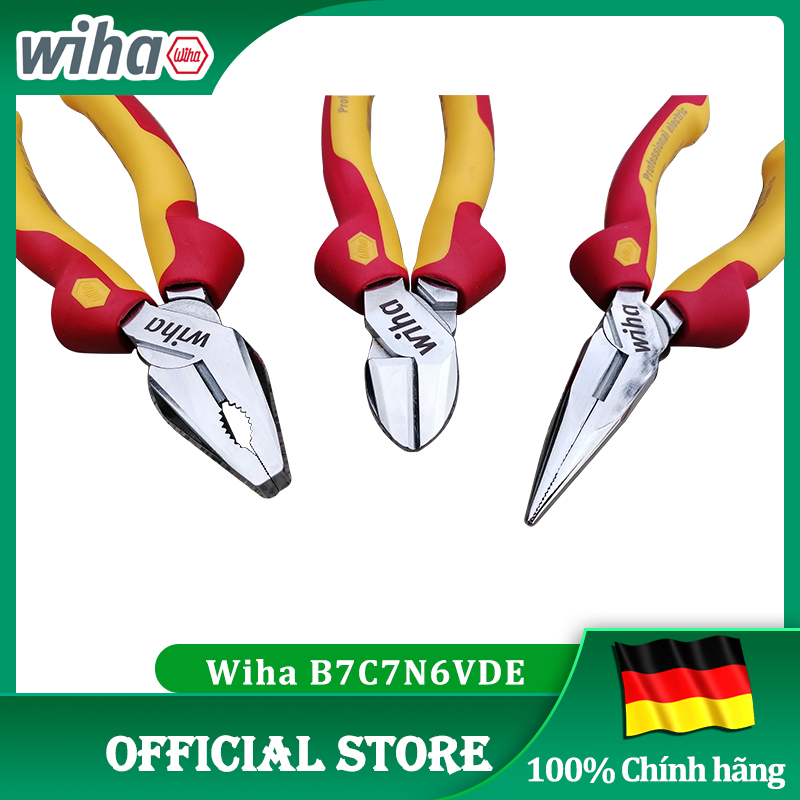Combo 3 คีม/ชุดคีม 3 ชิ้น พร้อมคีมตัดแหลมหุ้มฉนวน 1000 โวลต์ Wiha B7C7N6VDE [เยอรมันแท้/เยอรมนี]