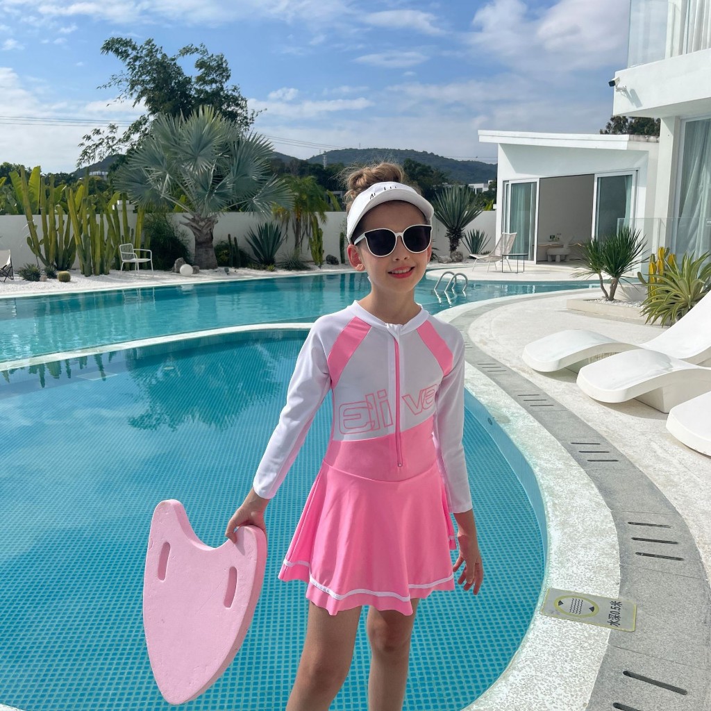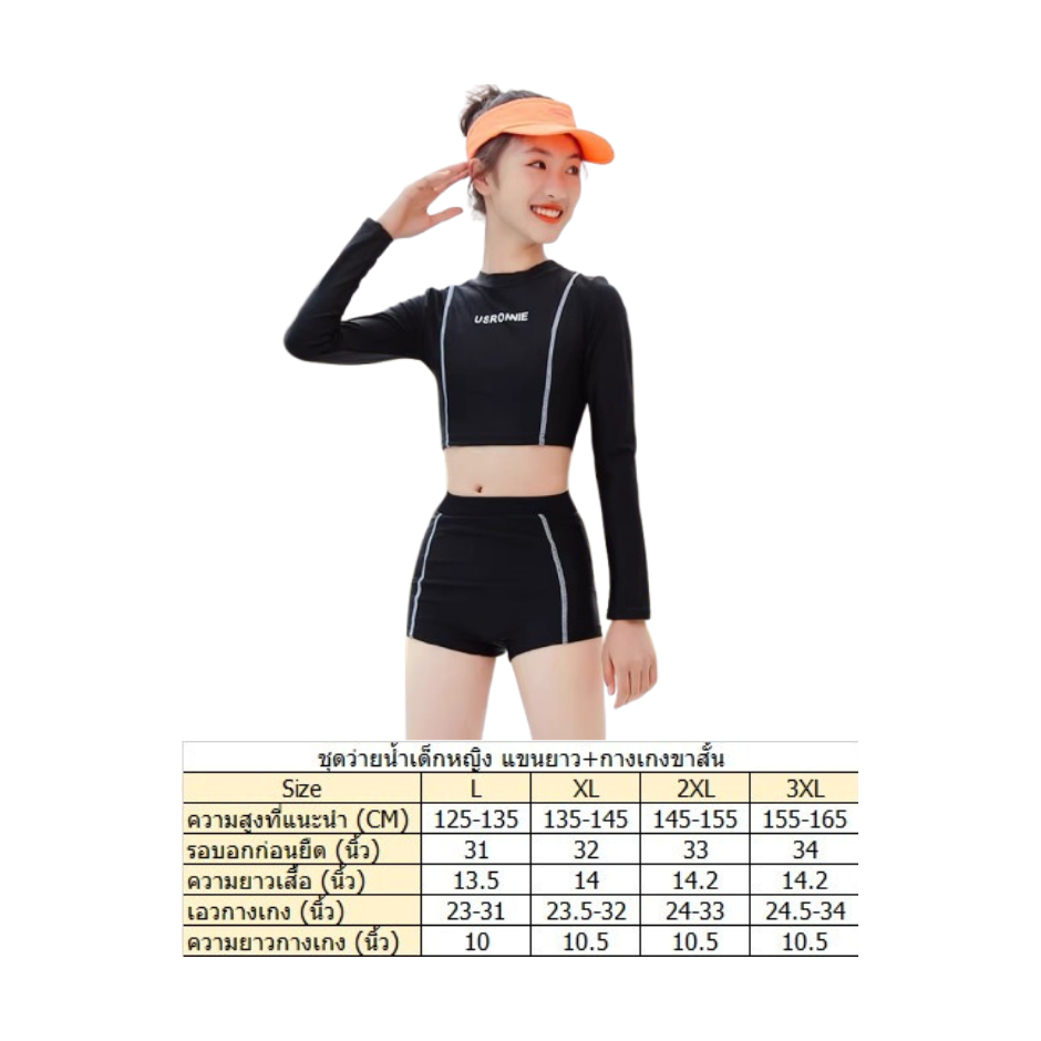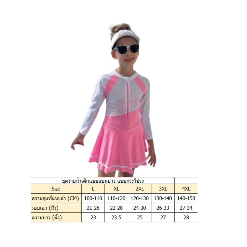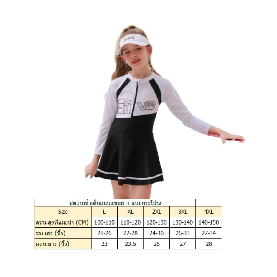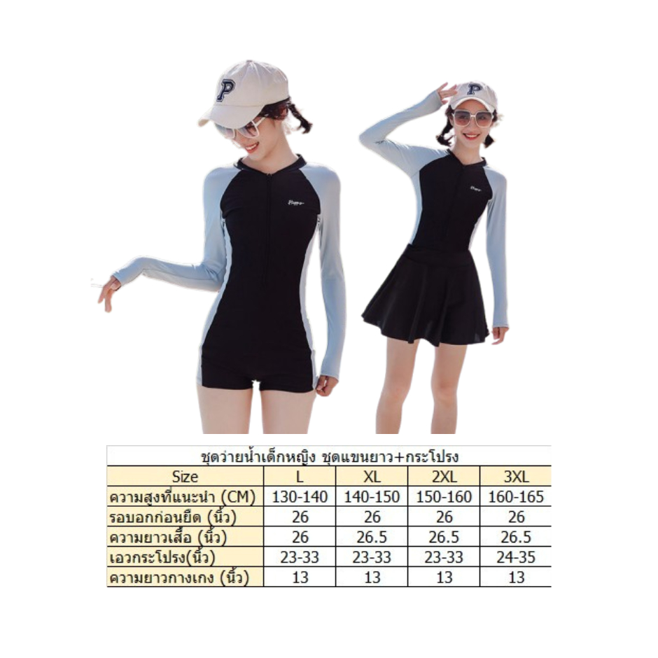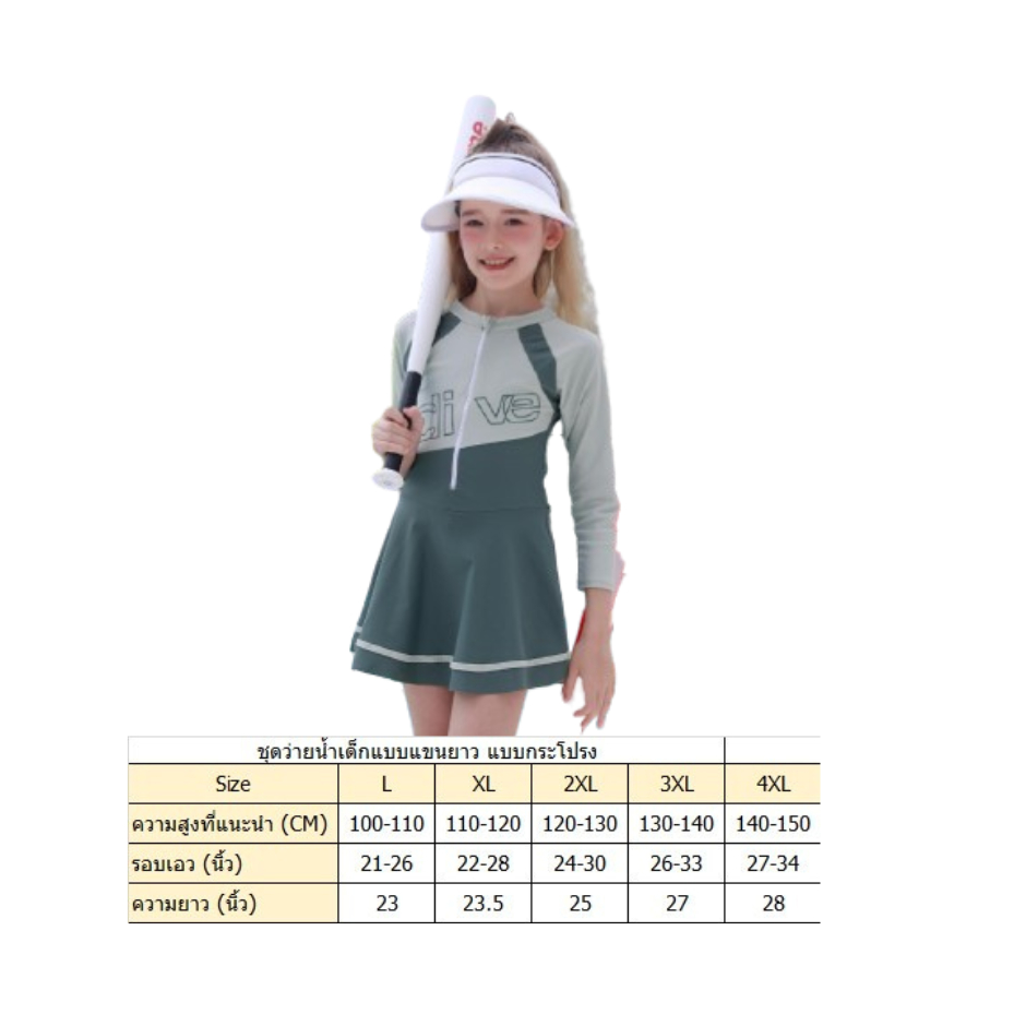 พร้อมส่งจากไทย ชุดว่ายน้ำเด็กแบบแขนยาว ป้องกันแสงแดด แบบกระโปรงและแบบกางเกง สำหรับเด็กโต