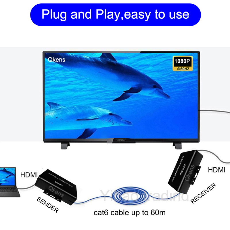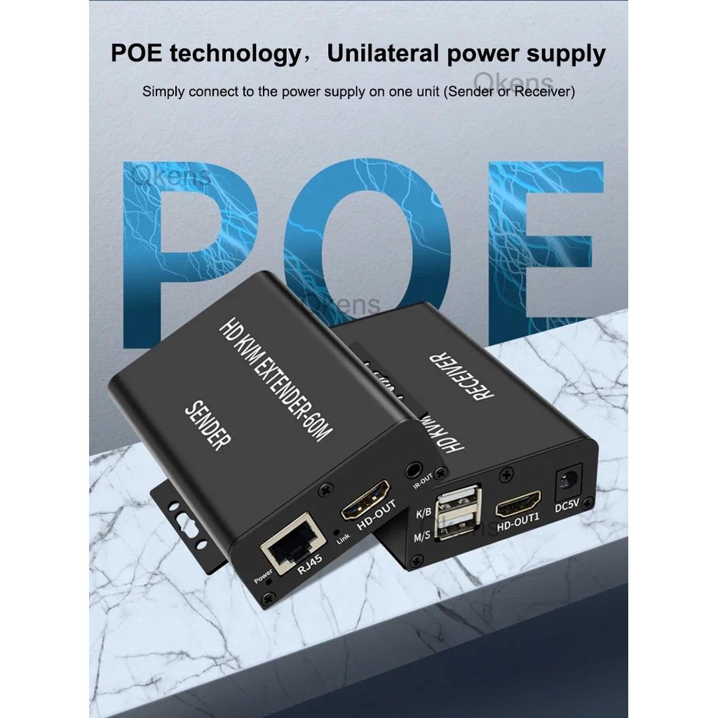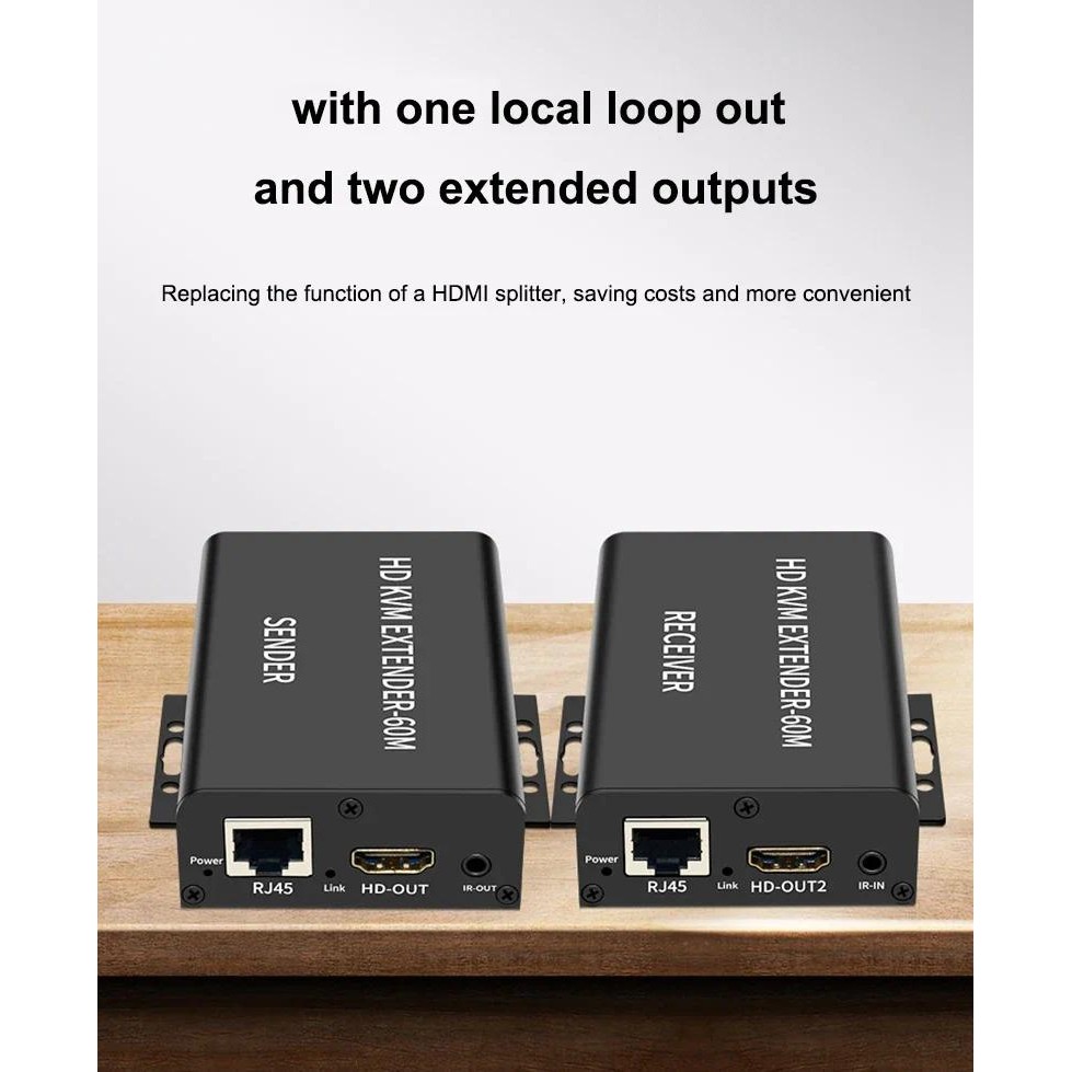 Hdmi KVM Extender Over Rj45 Cat6 สาย 60M เครื่องส่งสัญญาณวิดีโอและตัวรับสัญญาณสําหรับคีย์บอร์ด USB และอะแดปเตอร์ด้านเดียว