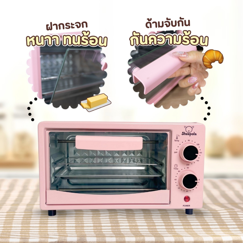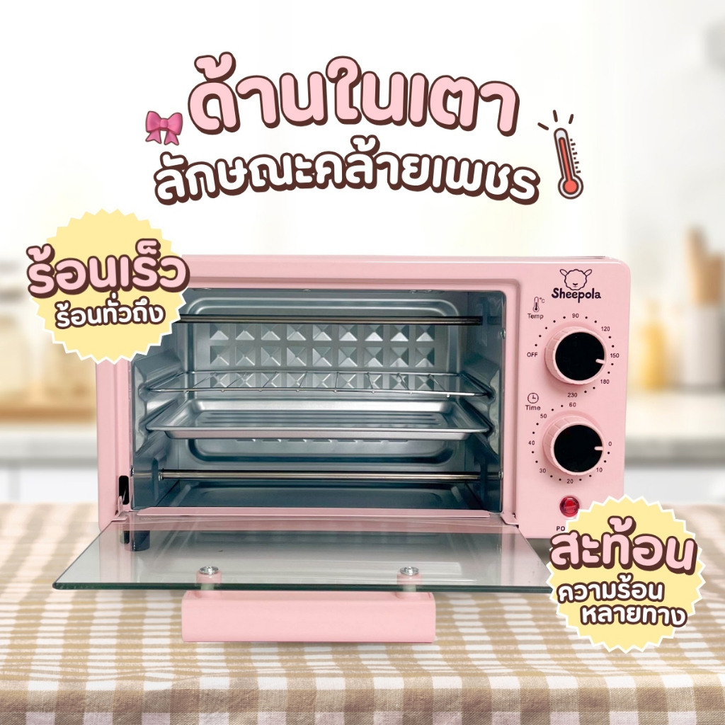 เตาอบไฟฟ้า สีเหลือง,ชมพู,ขาว อบขนม อบเบเกอรี่ แบบตั้งโต๊ะ ความจุ 12ลิตร ประกันสินค้า 1ปี Meka.trend