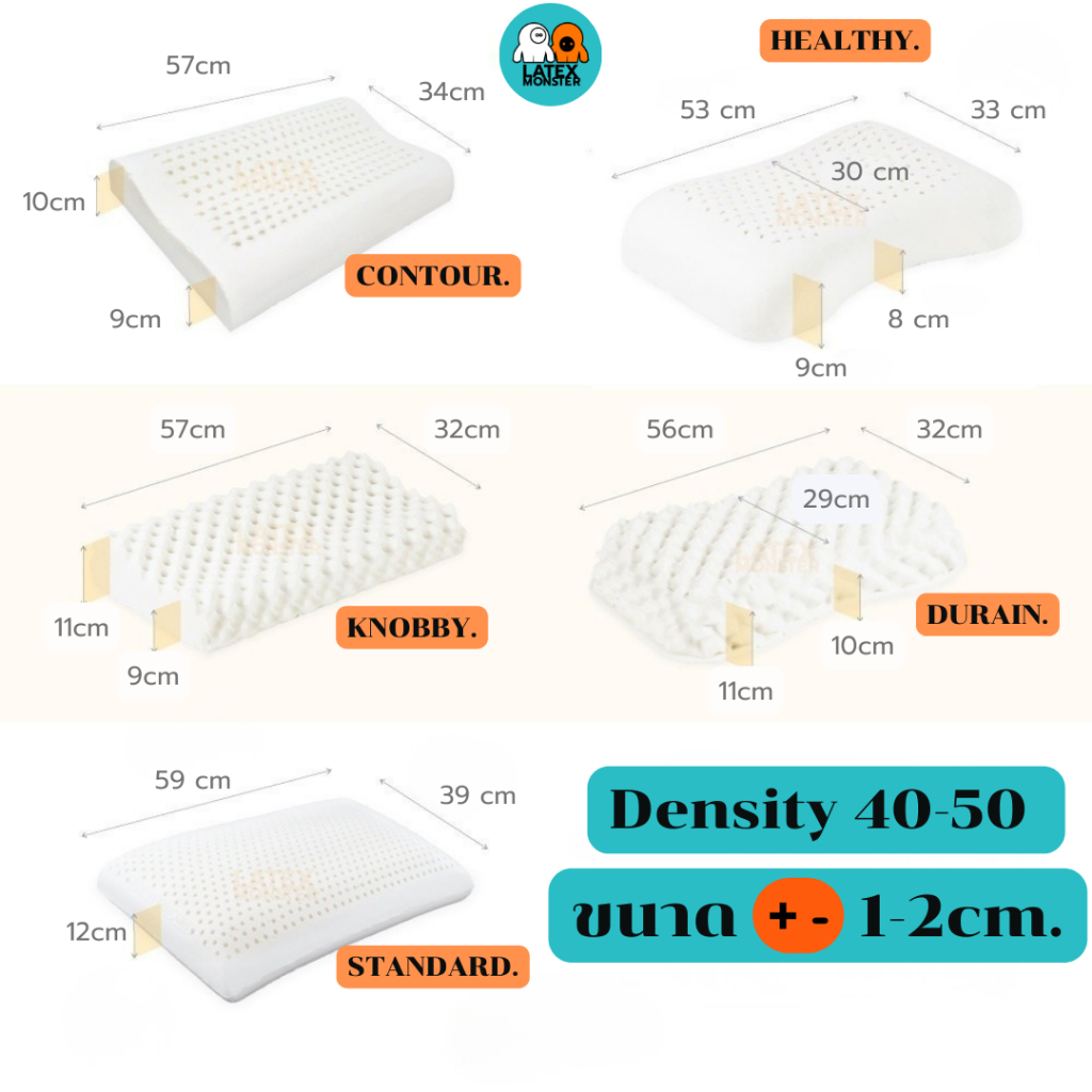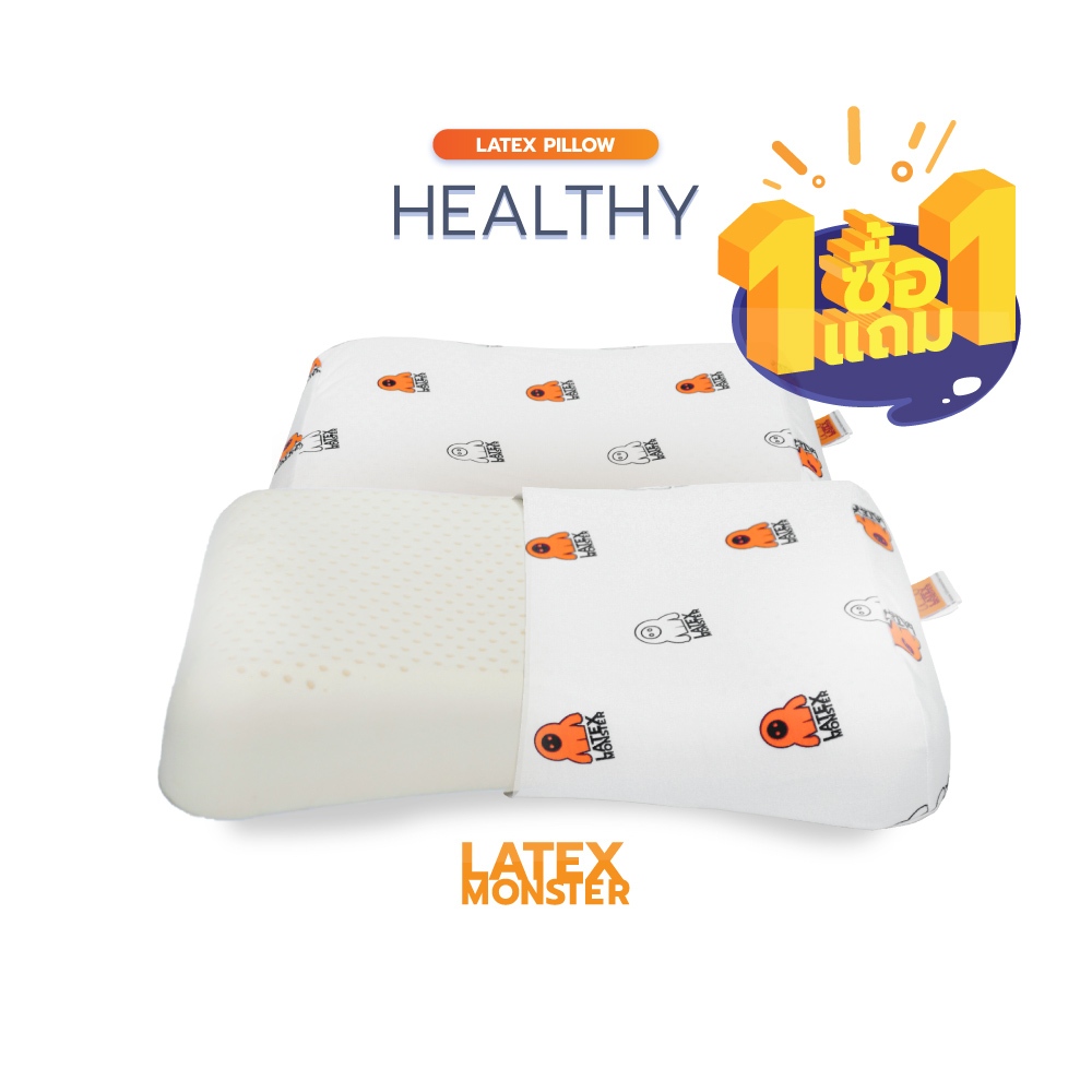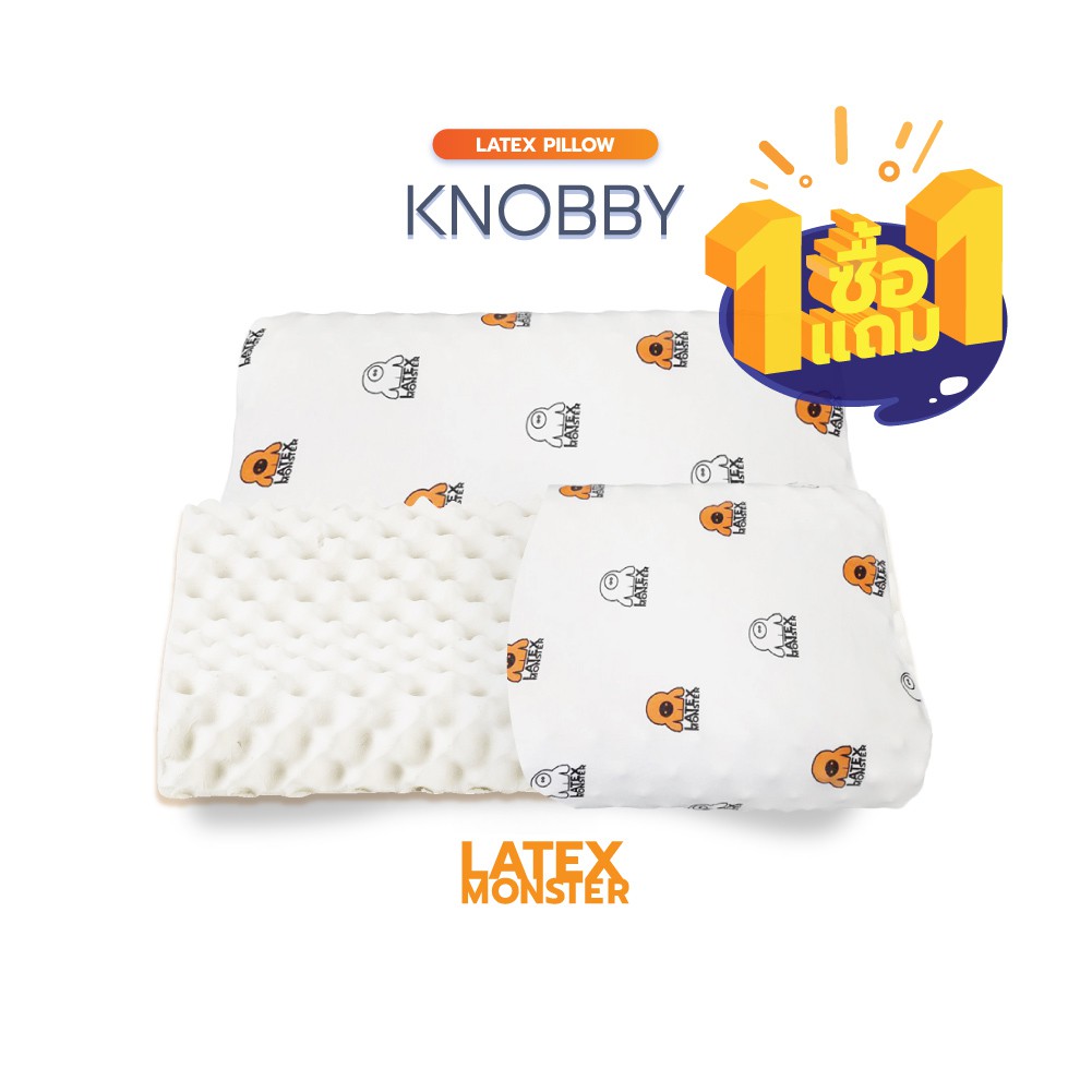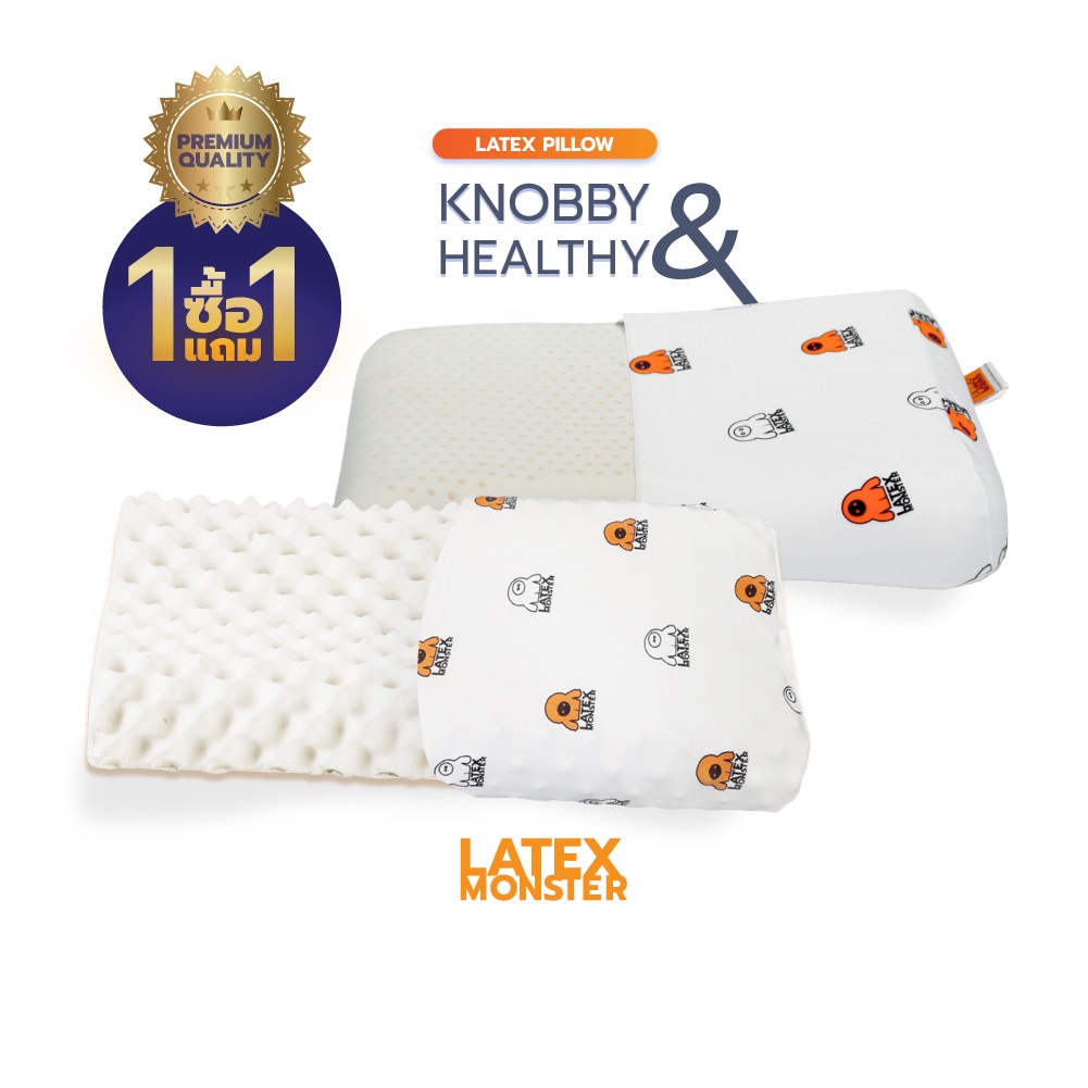 ((ซื้อ1 แถม1))หมอน หมอนยางพารา แท้ รุ่นKnobby,รุ่นHealthy Premium grade Latex Monster Pillow