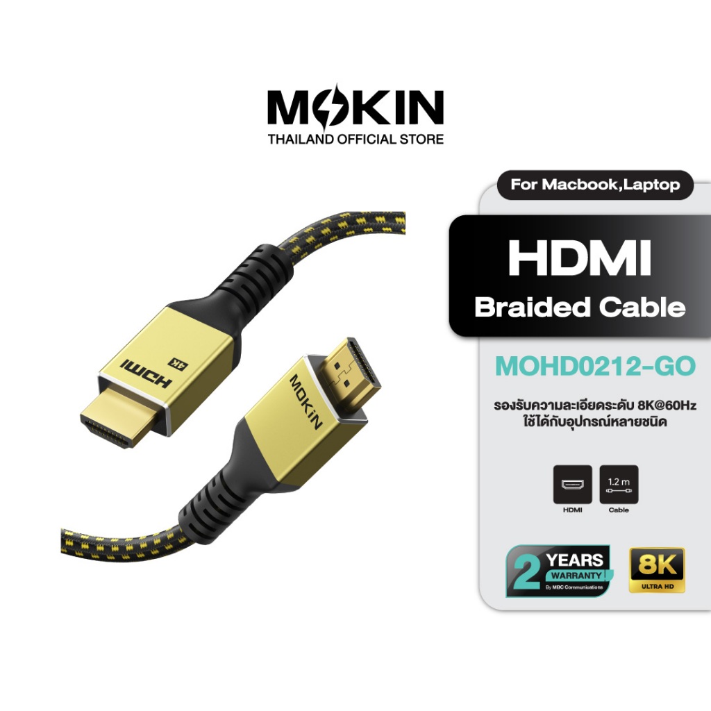 MOKiN สาย HDMI 2.1 Cable 8K60Hz 18Gbps ถักพรีเมียมสีทองดำ Gold-Plated สำหรับ Xbox/TV