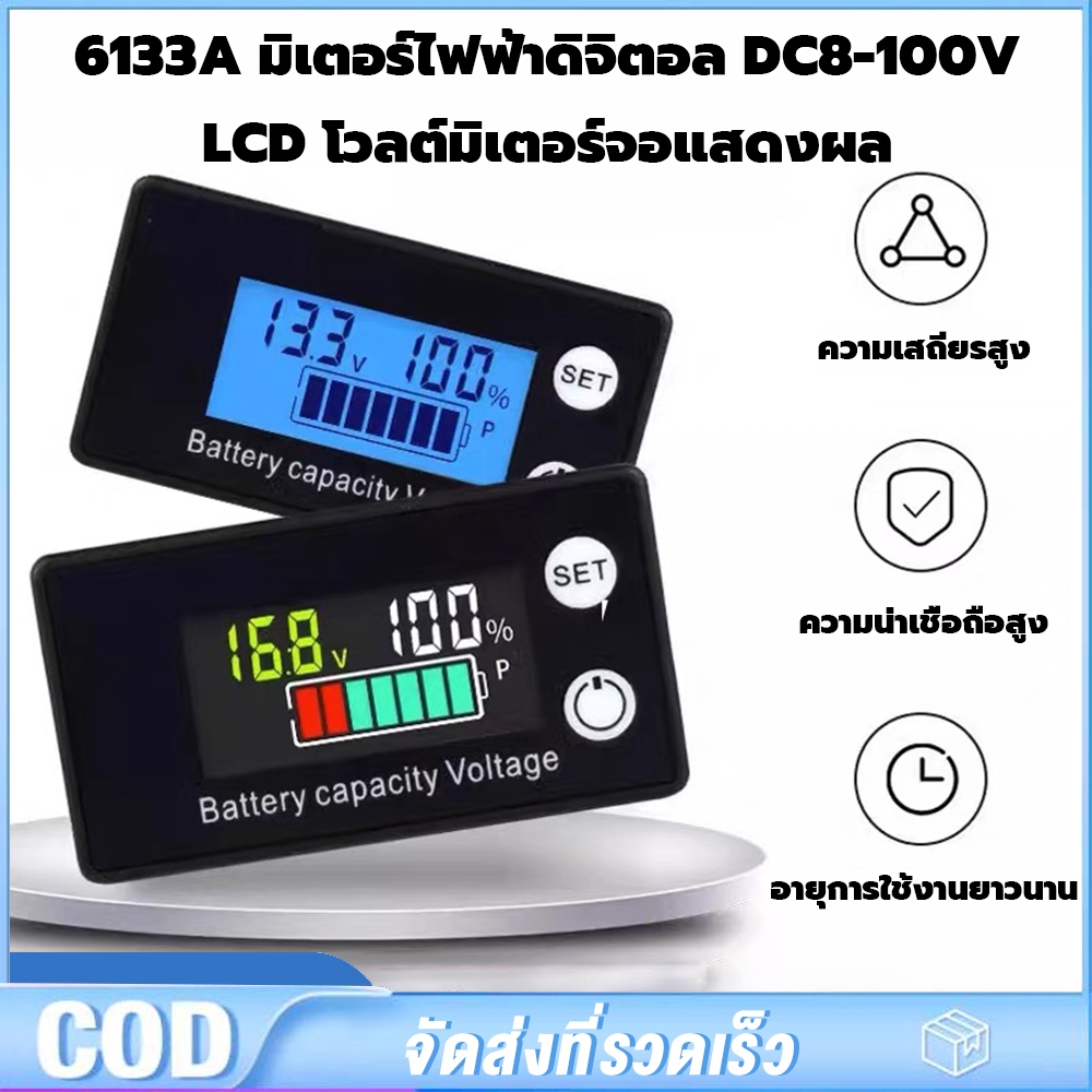 6133A มิเตอร์ไฟฟ้าดิจิตอล DC8-100V LCD โวลต์มิเตอร์จอแสดงผล LCD พร้อมสายเคเบิล