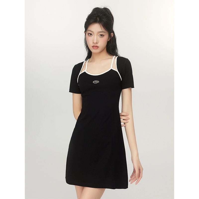 [ใหม่ ] M-4XL พรางหุ่น เก็บพุง เดรสสายปาดไหล่ เดรสสาวพลัสไซส์ เดรสกระโปรงสั้น ชุดเดรสเที่ยวคอเฟ่