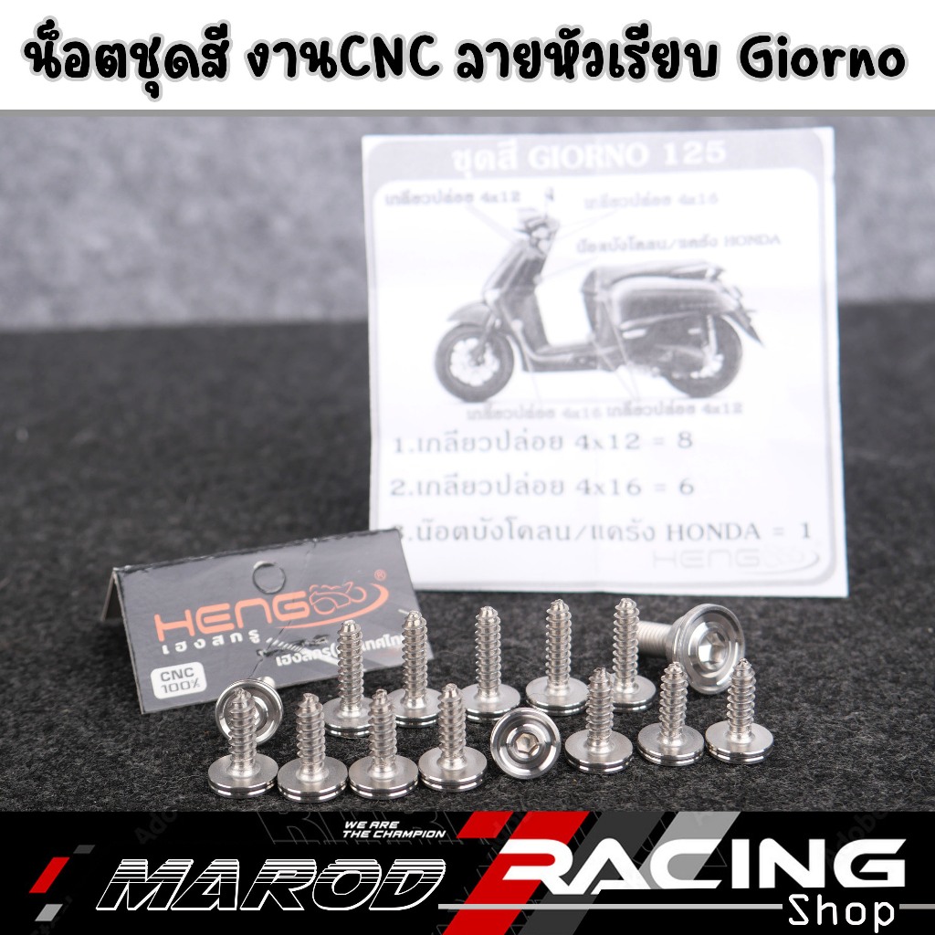 น็อตชุดสีGIORNO-125 (15ตัว) หัวAAบาง สแตนเลส น้อตชุดสีจีออโน่ น้อตชุดสีgiorno น้อตเฟรมgiorno ชิ้นส่วนทดแทน