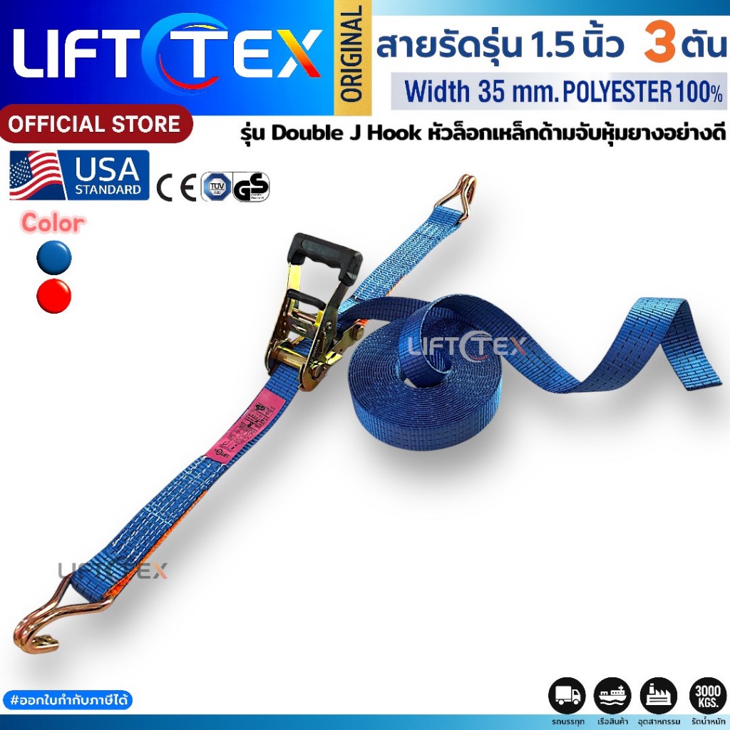 Lifttex (แท้) สายรัดก๊อกแก๊ก 1.5นิ้ว 3ตัน หัวล็อกเหล็ก ตะขอ j (สีนำเงิน, สีส้ม)