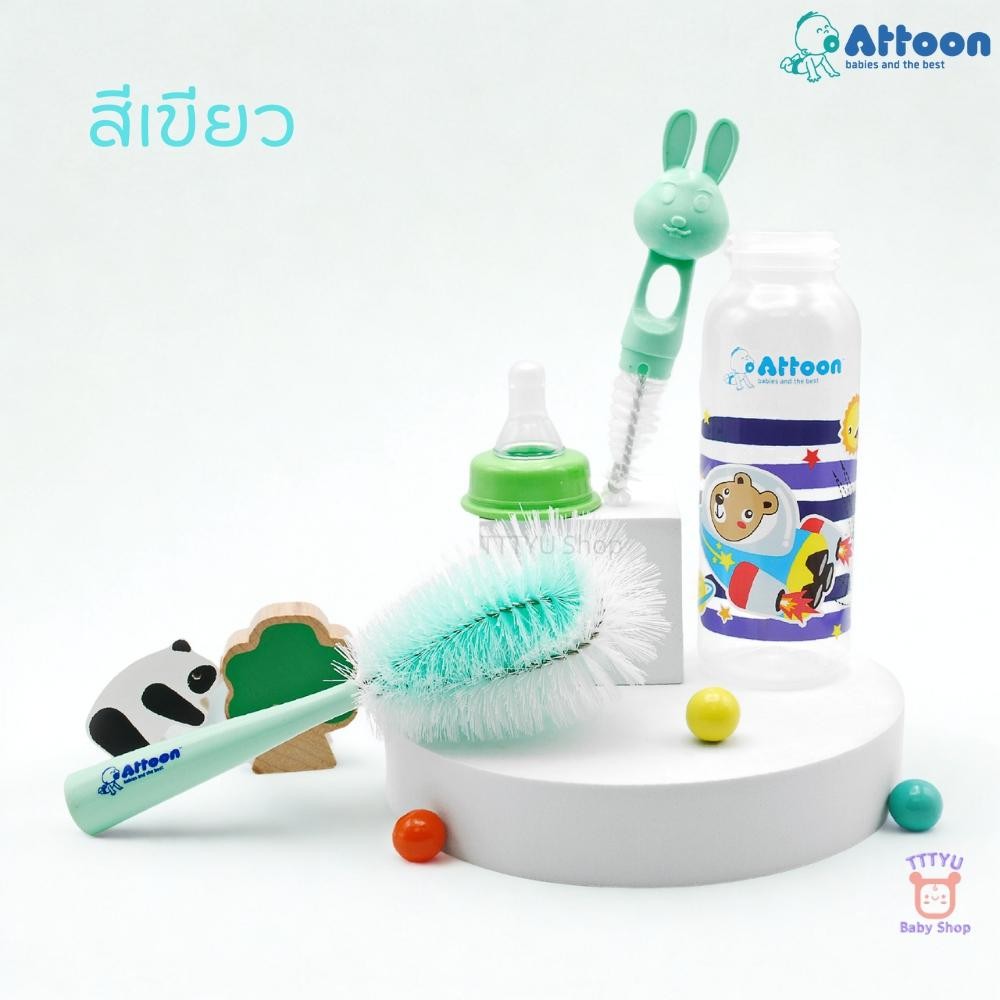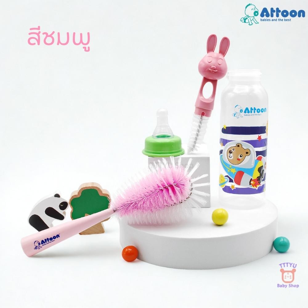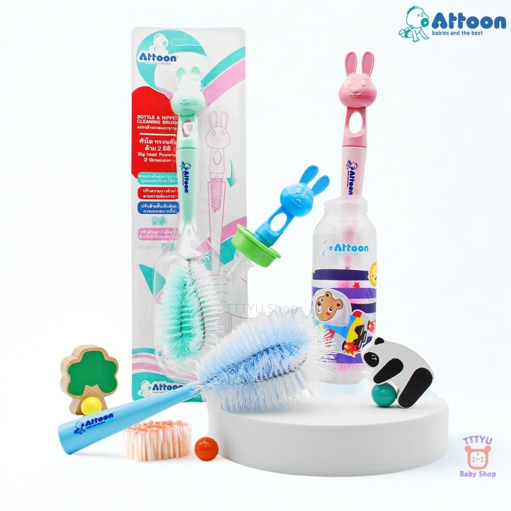 Attoon แปรงล้างขวดนม ขนแปรงไนล่อน หัวโต ทรงพลัง มี แปรงล้างจุกนม ในด้ามจับ YYYTU Baby Shop