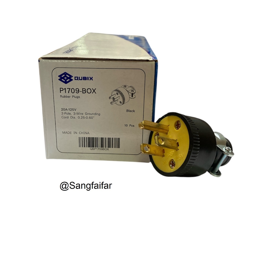 QUBIX P1709 ปลั๊กยางตัวผู้มีแคล้มรัด 2P 3W 20A 125VAC 3ขา