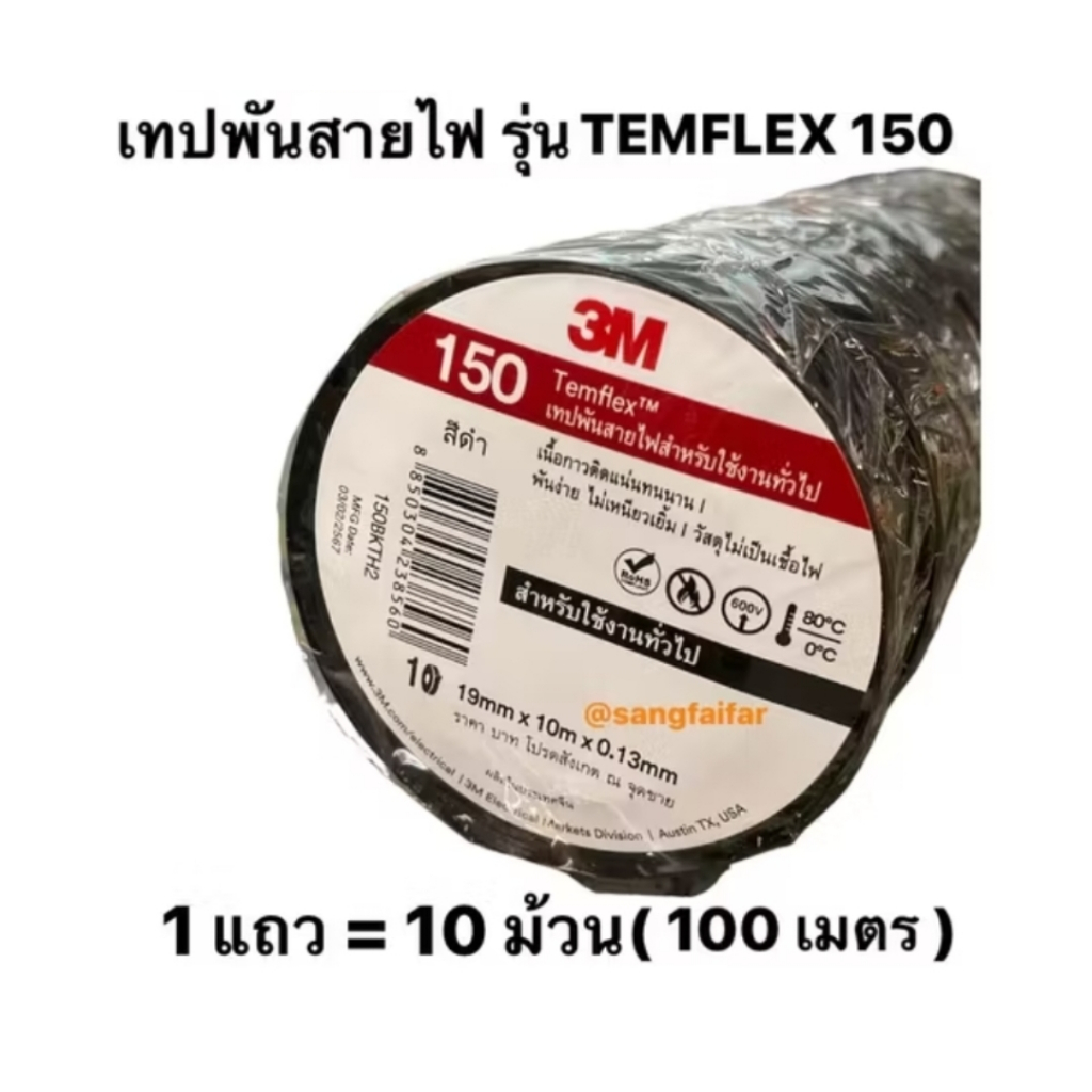 3M (แพ็ค 10 ม้วน) เทปพัน สายไฟ รุ่น Temflex ขนาด 10M สีดำ